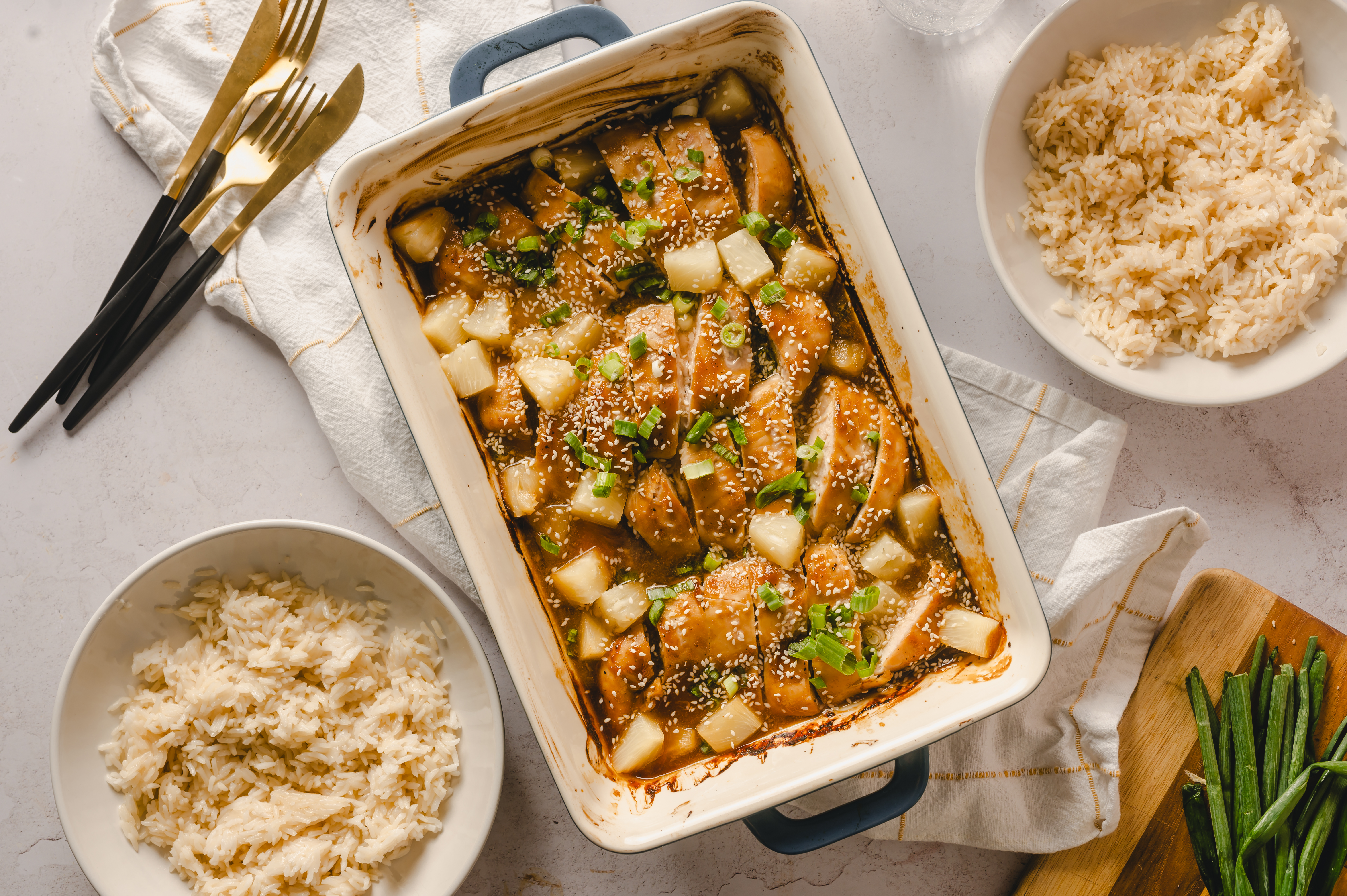 Baked Island Teriyaki is how you get classic sweet-and-savory teriyaki flavor on your plate, sitting on top of a bed of rice, in under an hour. Simply make up that classic tangy, umami-rich teriyaki sauce and pour it over chicken and tropical fresh pineapple, then bake. The chicken is savory and sticky in the delicious sauce, with the pineapple providing lovely tangy contrast! Baked Island Teriyaki shows that great Japanese flavors can come from inside your oven, as well as from your stovetop!