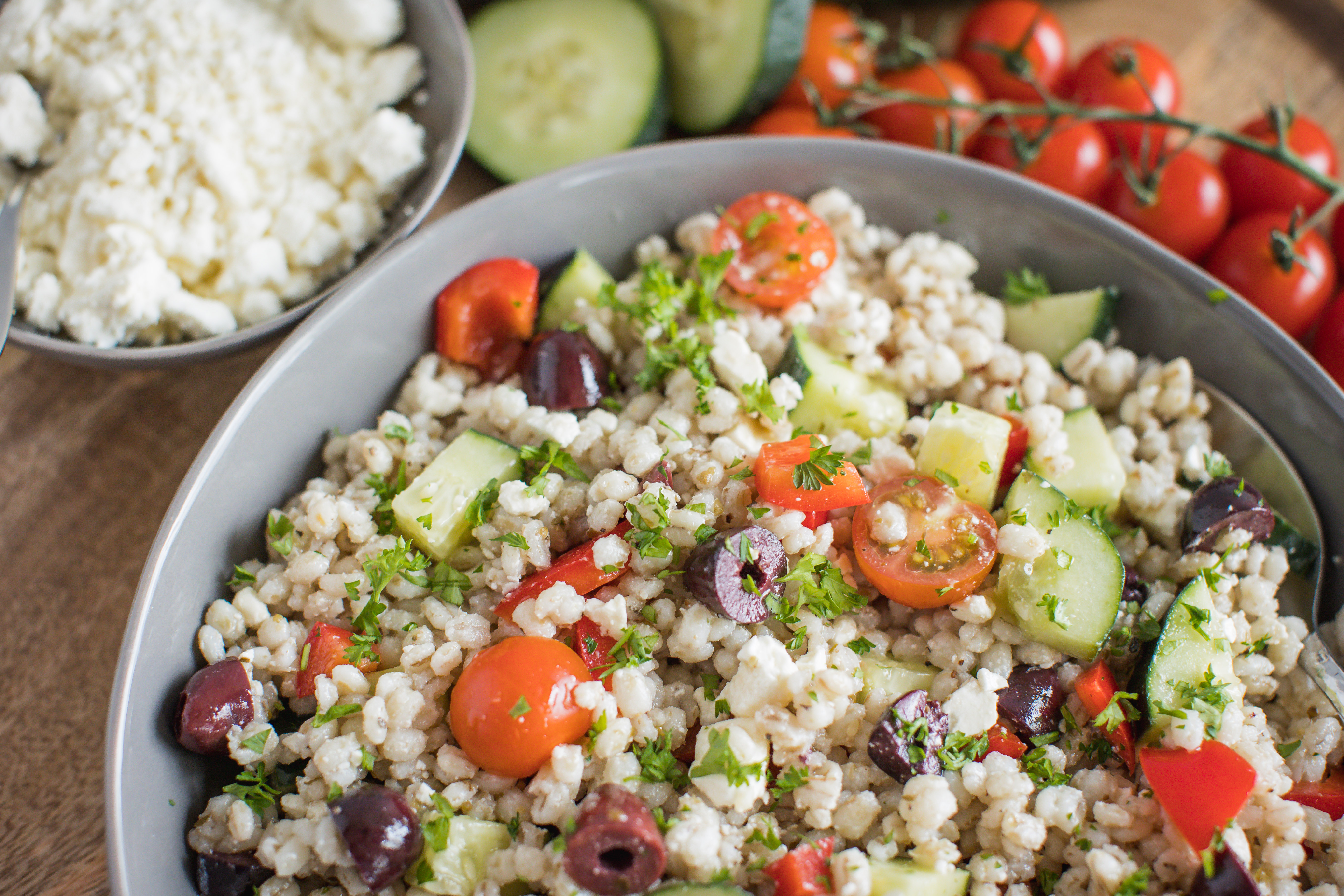 Summertime is for salads, and we just love everything about it! Any excuse to chow down on a refreshing, crunchy munch like this Barley Salad makes us all the more excited for the fun and freedom the season brings. Whether you're basking in the sun right now, or simply longing to, this big bowl of fluffy barley tossed with summer-fresh veggies, creamy feta cheese, and your favorite Greek dressing is sure to make all your winter blues melt away. Let the sunshine in (actually or metaphorically), grab a fork, and soak up every ounce of warm weather flavor Barley Salad has to offer!
