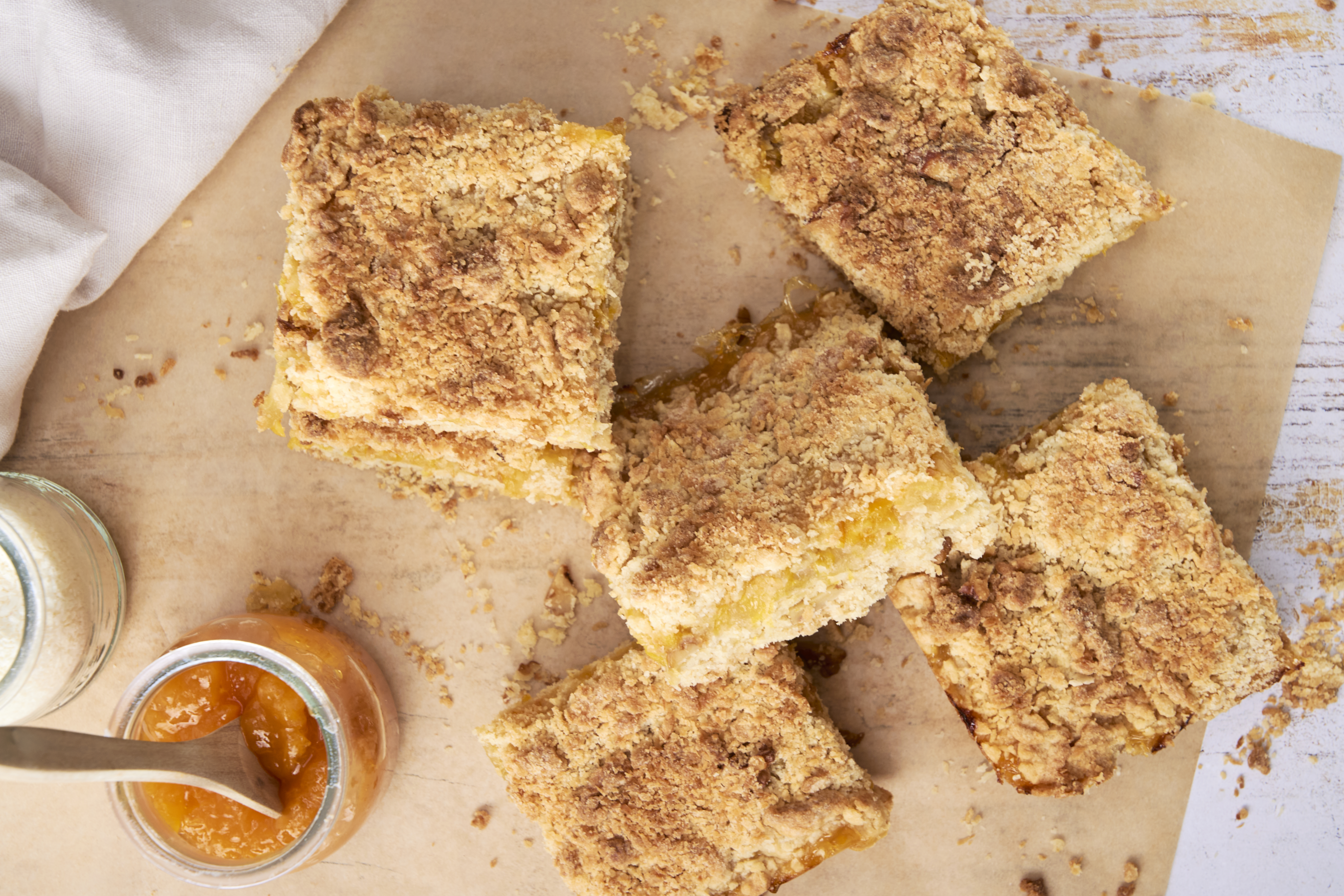 We have ourselves a winner, ladies and gentlemen! Blue-Ribbon Apricot Bars will take home the gold in any taste competition! A crunchy, golden, nut and coconut-packed crumble sandwich sweet and tart apricot filling is just what you need to impress your friends, loved ones, and even your own taste buds! Blue-Ribbon Apricot Bars are the treat that deserve a victory lap!
