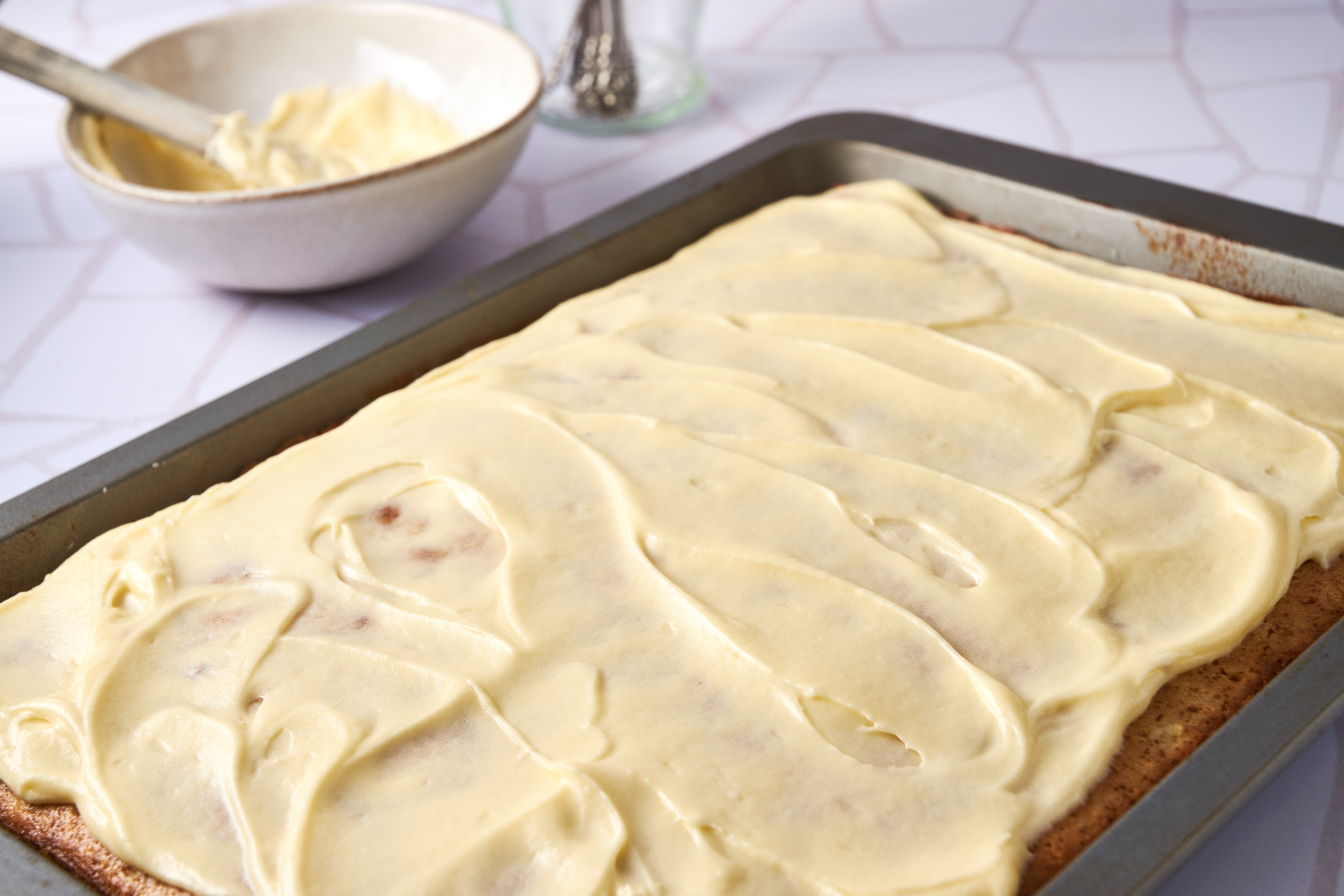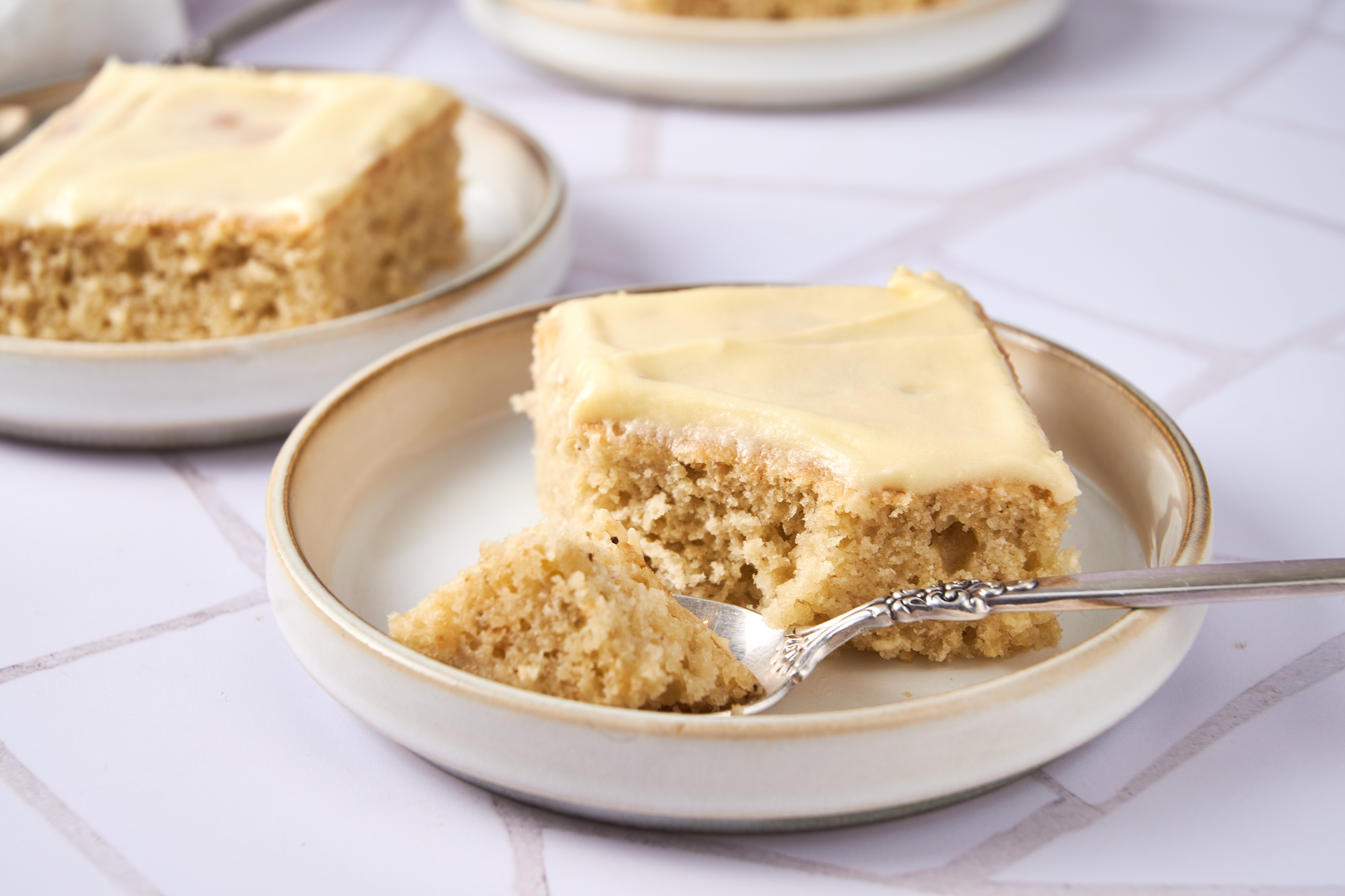 Game on! These Bounce-Pass Banana Bars are the game changer that you are going to fall for! Get in the game with this moist, banana goodness that's guarded closely by an amazingly rich and creamy cream cheese frosting. All eyes will be on these Bounce-Pass Banana Bars, so grab them and run to ramp up your potluck dessert satisfaction percentages. You know they will score big points for your team!