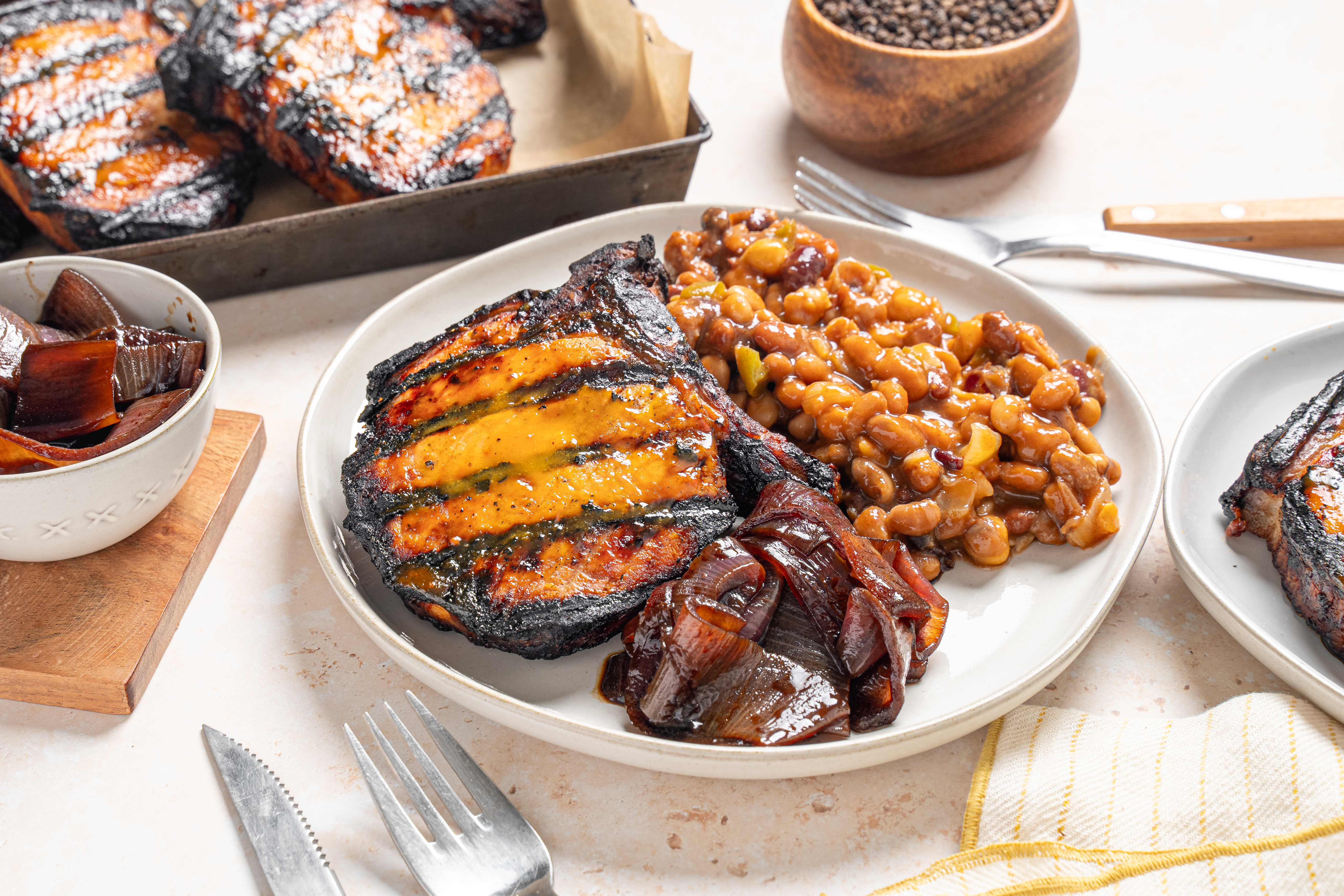 Carolina-Proud Chops certainly do the Carolinas proud. Each sweet-and-savory pork chop is marinated and coated in a classic Carolina-style barbecue sauce with its extra tangy vinegar flavor. It's a beautiful contrast that brings out the most from the succulent pork. Right alongside the pork are sweet, caramelized, and deeply umami braised onions, a welcome partner to this meaty magic. You'll be proud to serve up Carolina-Proud Chops at your next barbecue!