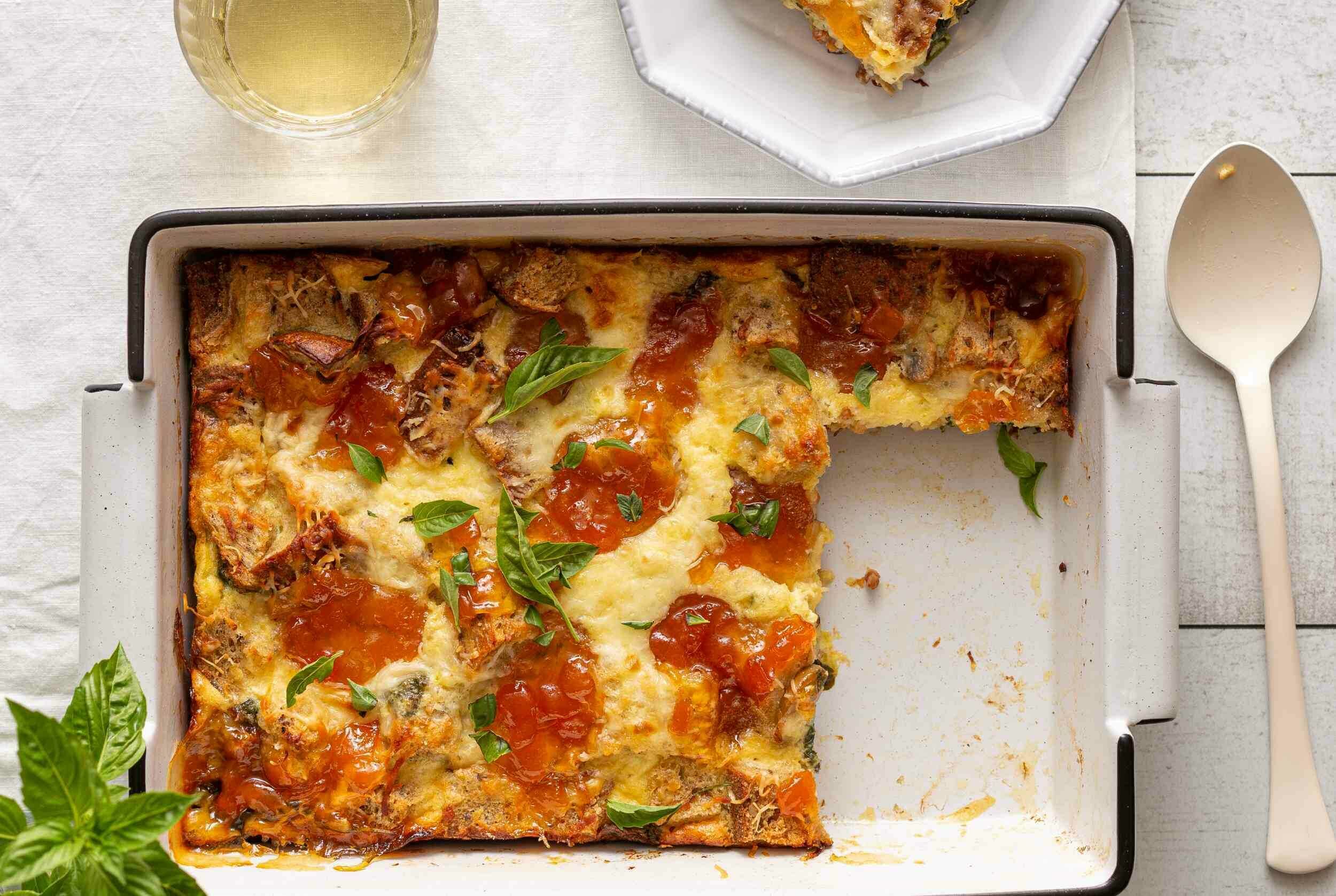 Step 22 -Sprinkle the strata with the basil.