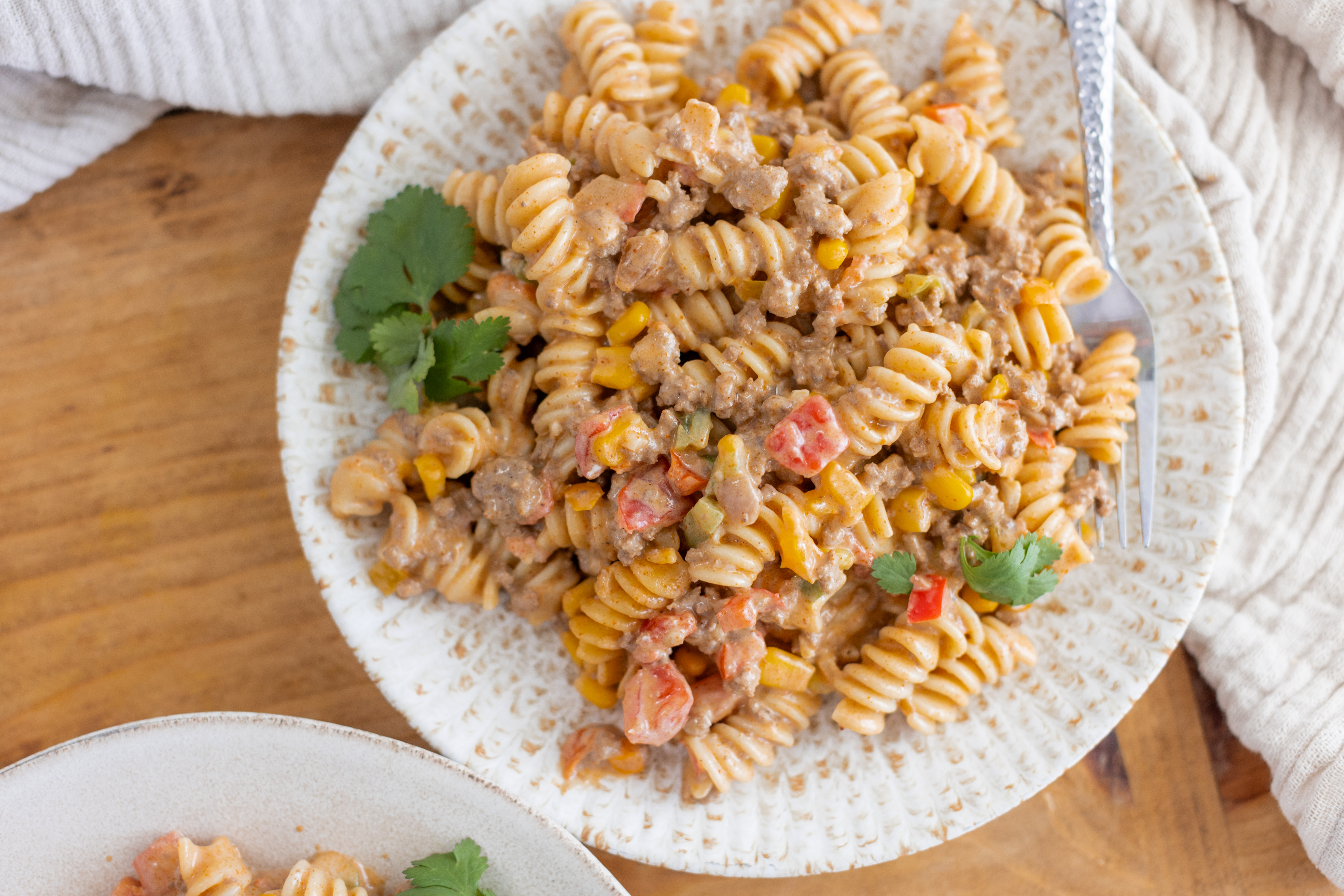Don't worry! We won't tell! When you need a break from all the salad and salmon, Cheat-Day Pasta is here to fix your food problems! You'll be drooling over your bowlful of springy rotini and juicy veggies tossed in a cheesy, beefy, Tex-Mex-inspired sauce. Everyone needs a break every now and then... but be warned, you're going to want Cheat-Day Pasta all the time!
