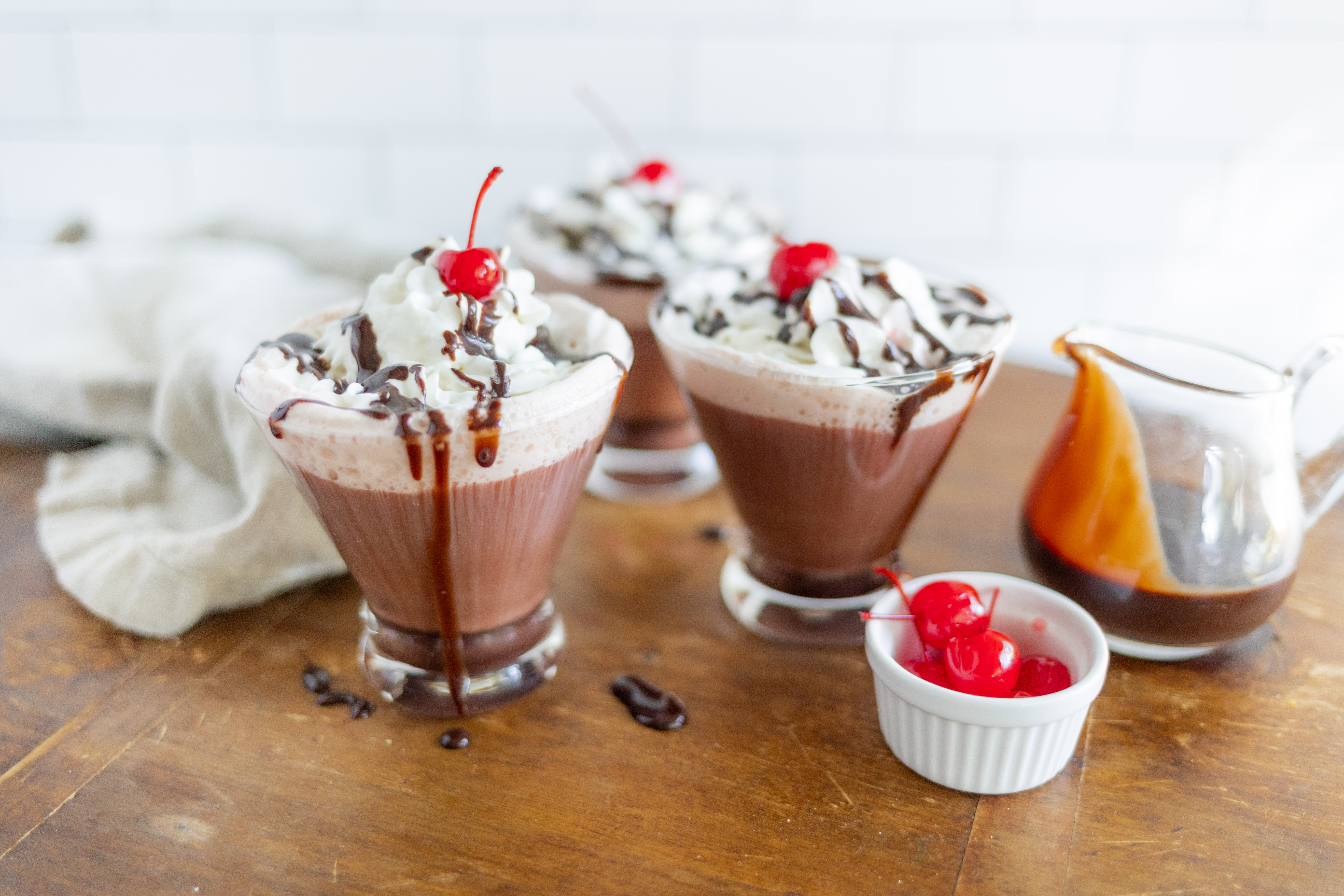 Step 4 -Serve garnished with the whipped cream, the remaining cherries, and the chocolate sauce.