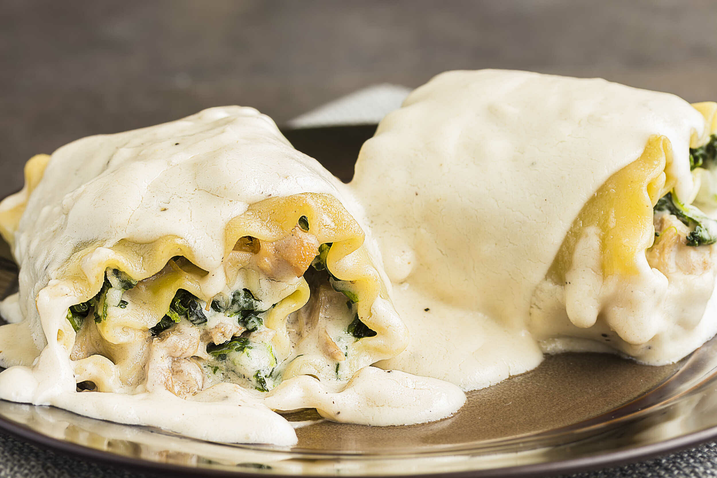 Traditional lasagnas are delicious, but can take hours to make. These Chicken Alfredo Lasagna Roll-Ups can be prepared in just one hour making them a little less time intensive, but just as yummy. Tomato sauce is swapped for creamy, cheesy alfredo sauce, and the noodles are rolled instead of layered. Adding spinach gives Chicken Alfredo Lasagna Roll-Ups a bit more balance and interest, so you’ll want to eat them even more.