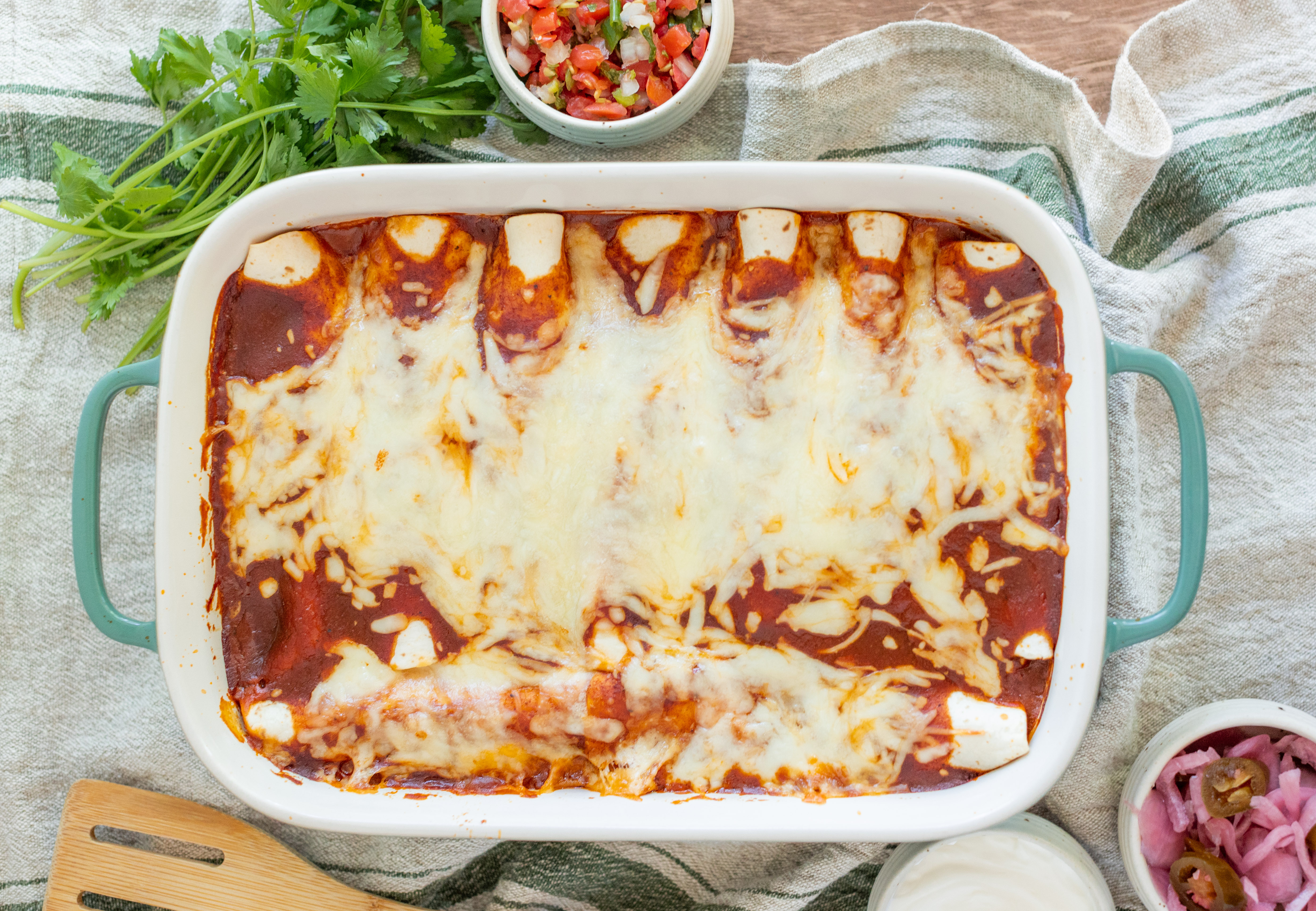 Step 10 -Pour the enchilada sauce over the enchiladas.