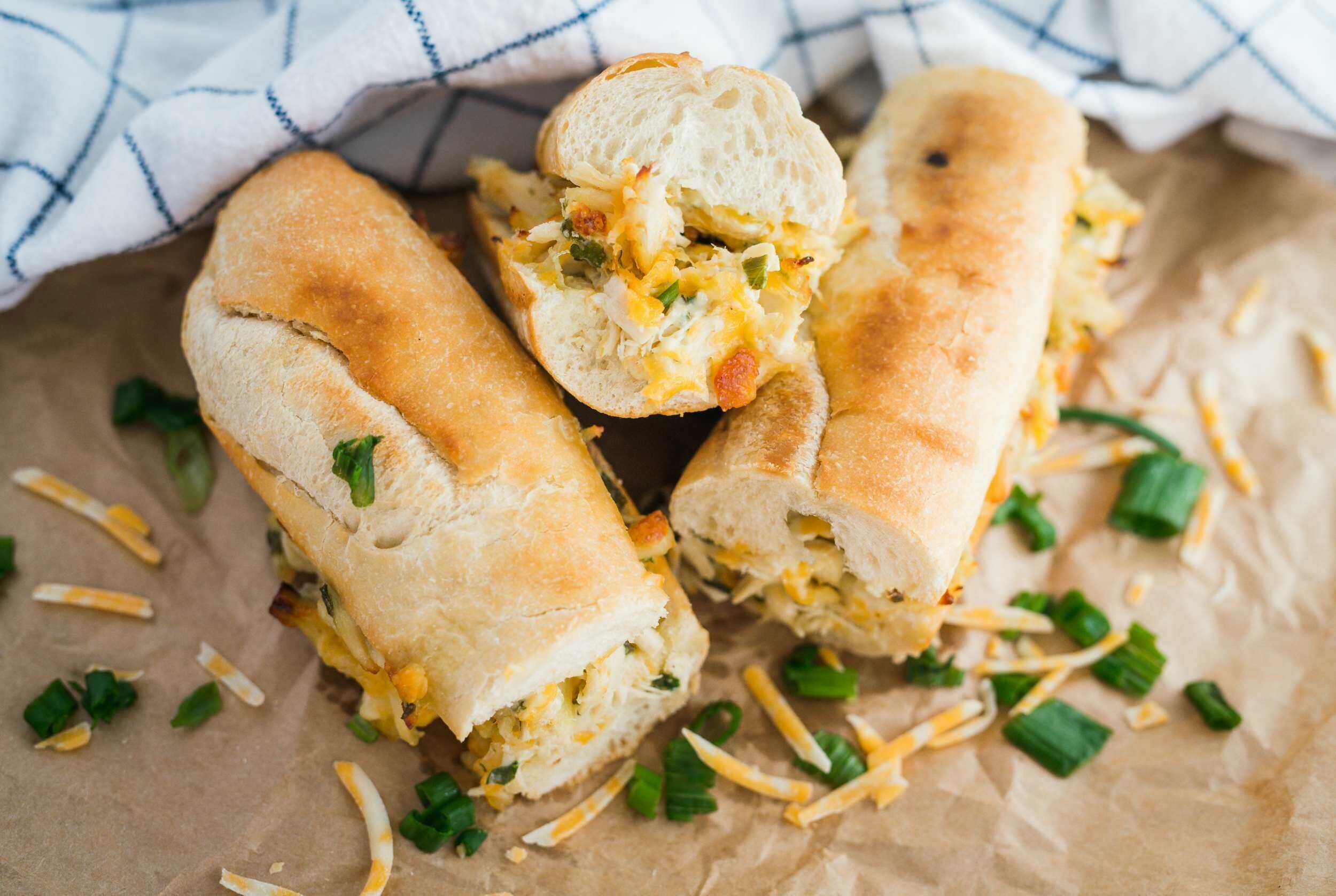 Chicken-Stuffed French Bread sounds like an amazing idea right off the bat, and it only gets better when you learn more about this decadent sandwich! The juicy chicken is mixed with tangy and creamy ranch dressing, crunchy green onions, and melty Colby-Jack cheese, and then toasted between two buttery halves of French bread. Chicken-Stuffed French Bread makes a sandwich that gets mouths watering and smiles brightening!