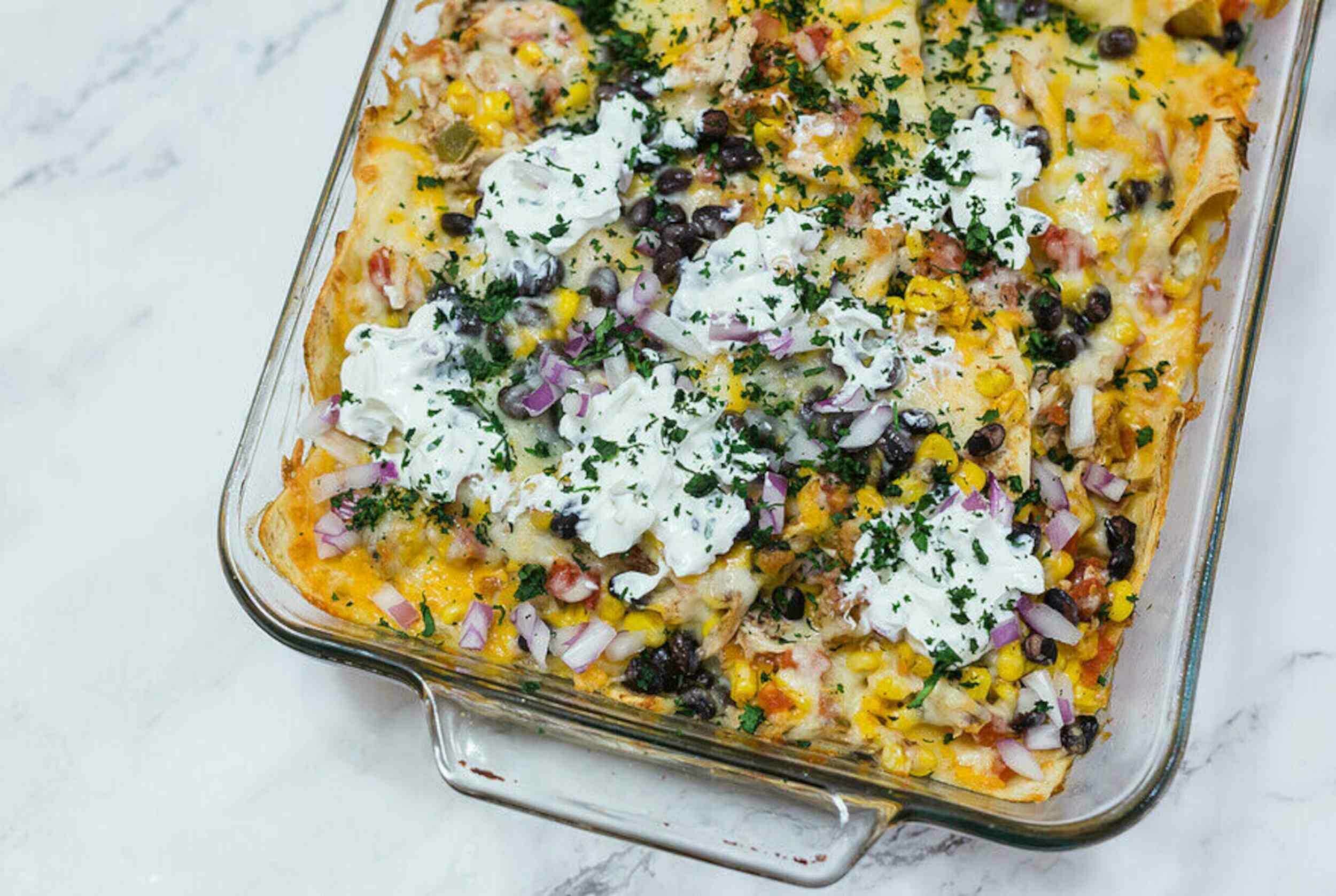 As the name implies, Chicken Tortilla Dump Dinner involves seemingly throwing ingredients together on a whim. But Chicken Tortilla Dump Dinner doesn’t feel thrown together; instead, it tastes like the best Mexican flavors mixed together into a savory, cheesy, spicy blend. Loaded with tortilla triangles and tender chicken, this dish is filling and simple to toss together in under an hour. You’ll find yourself sinking deep into these flavors.