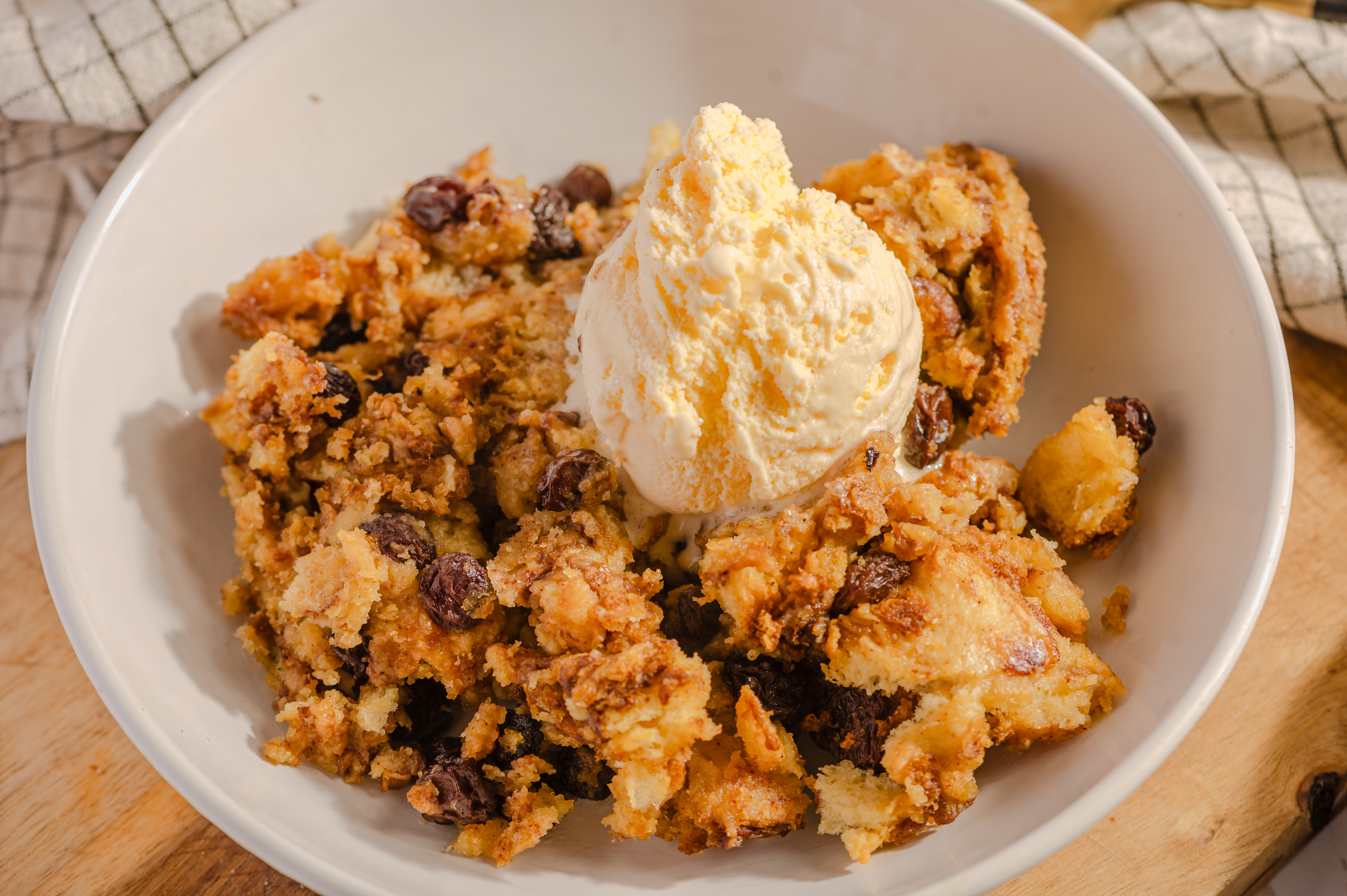 Bread pudding is making a comeback in the dessert world, but the secret to making a brilliant bread pudding is choosing something unique for the bread. Cinnamon Roll Pudding, as the name suggests, uses cinnamon rolls. Is there anything more perfect? Baked in a custard and with a few raisins added for fruity flavor, Cinnamon Roll Pudding is best enjoyed warm with a scoop of ice cream... and a huge smile!