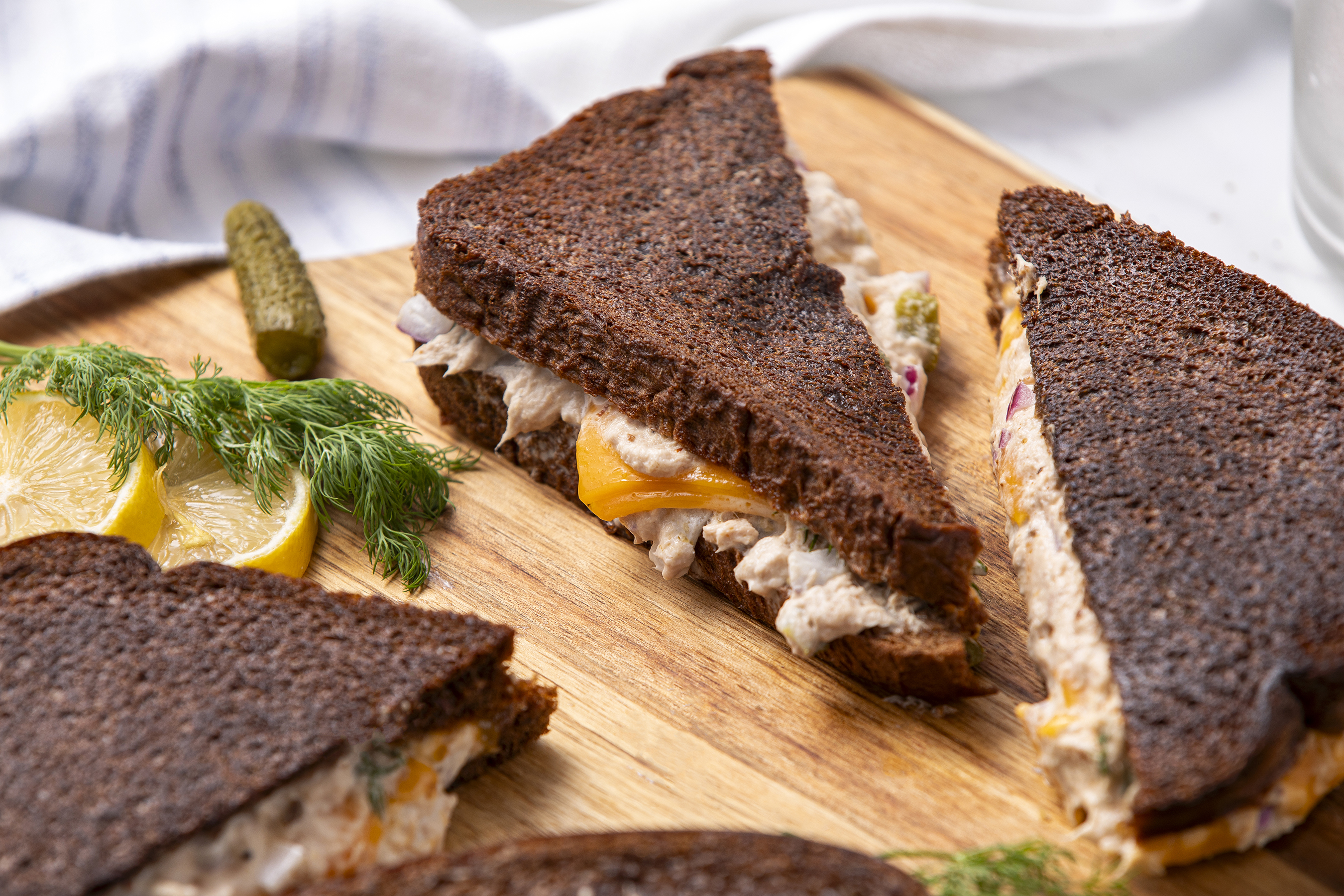Whether you're at the new bistro, your favorite diner, or making lunch at home, there's just something magical about the Classic Tuna Melt! The tuna is sweet and savory, elevated with tangy mayo and sour pickles, brightened with lemon juice and red onion, and all stacked on flavorful rye bread! Then it's toasted in butter so the bread is crisp and golden-brown and the cheese inside is melted... and voila! Lunchtime perfection! There's a reason the Classic Tuna Melt became a classic!
