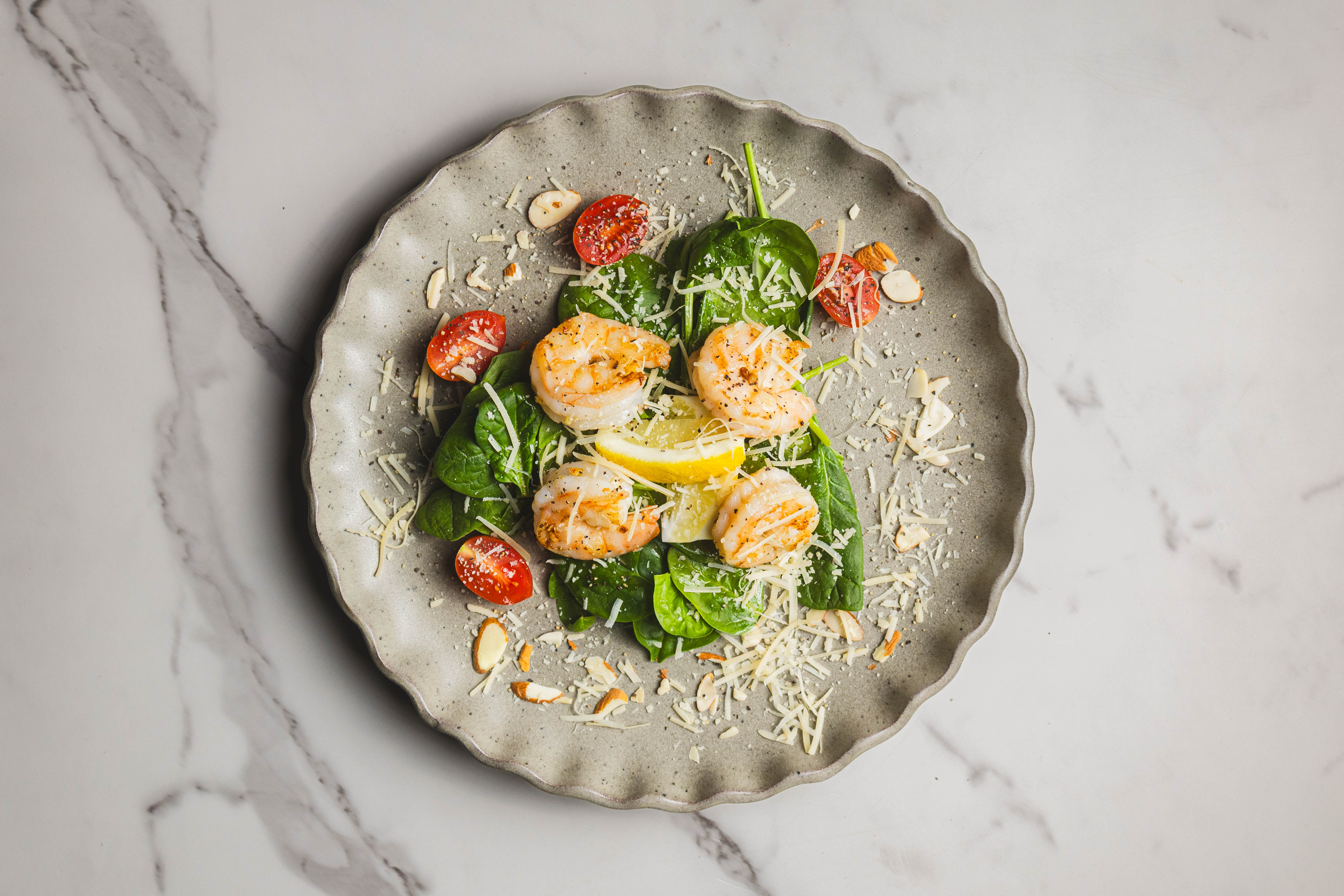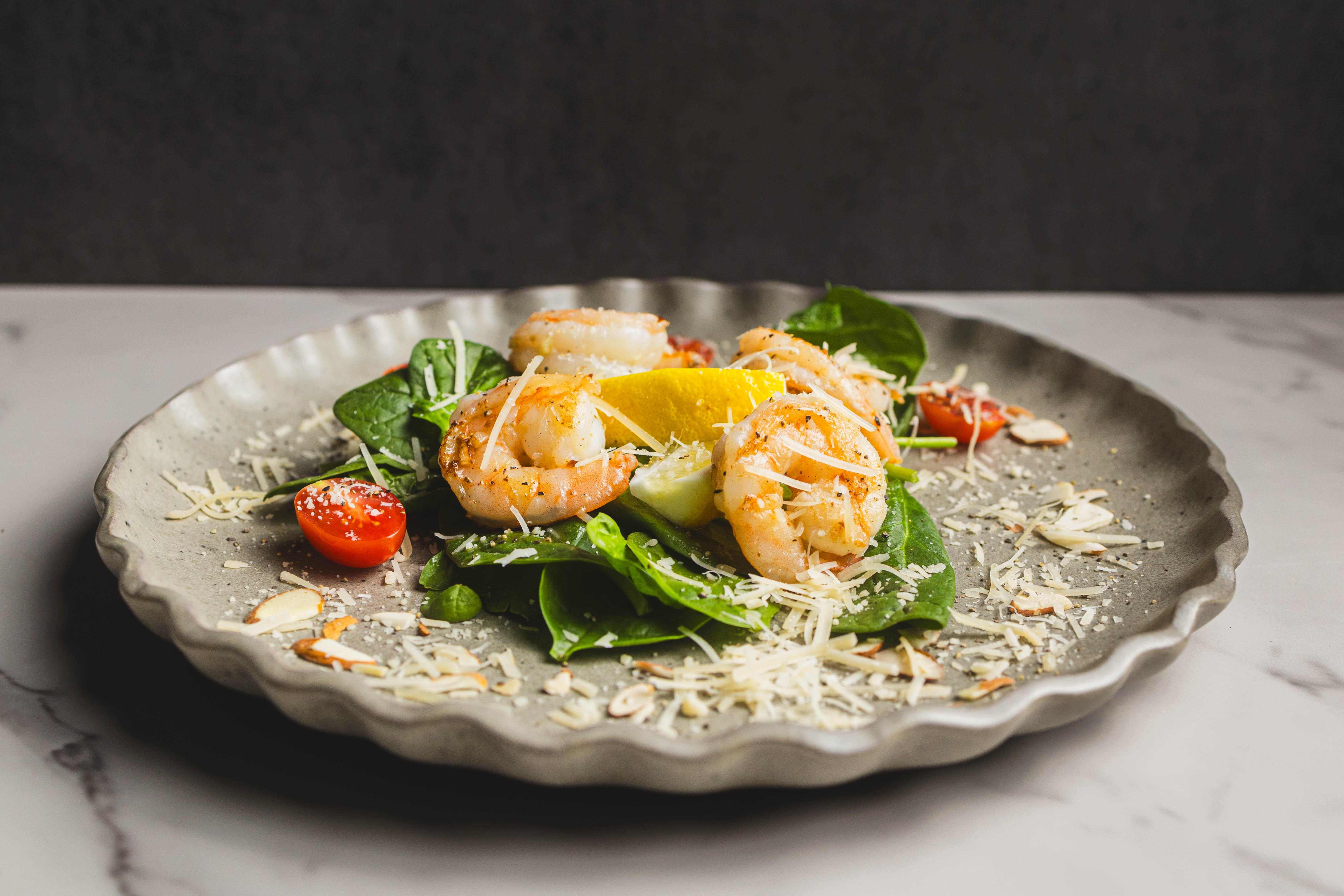 The Coral Reefer Shrimp Salad, much like the touring and recording band of the late Jimmy Buffett, might not always get the attention and adoration it deserves. How could you not love this refreshingly simple and delicious salad? The shrimp is sweet and savory, the spinach is fresh and leafy, the tomatoes are bright and juicy, and everything is coated in bright lemon juice! With sharp parmesan and crunchy almonds, Coral Reefer Shrimp Salad is ready to make your main meal a superstar!