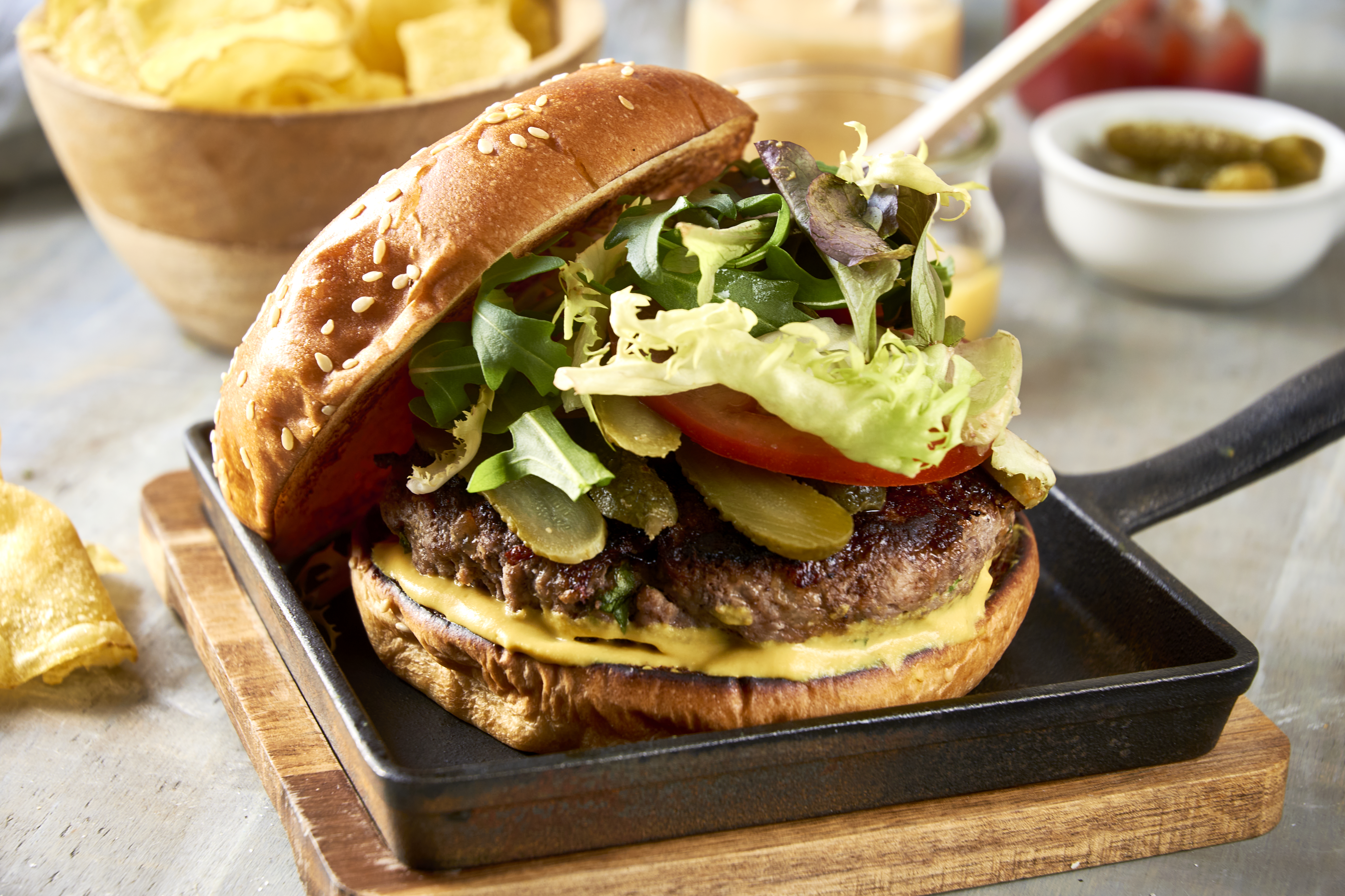 This is taking the ordinary and making it upscale. Corporate Burgers come out so, so juicy thanks to the pickle juice and Worcestershire sauce mixed into the meat, heightening the beefy flavor as they are grilled to perfection. Stacked high with all the fixings, Corporate Burgers are the kind of burger you make to impress your boss at dinner. Meanwhile, your taste buds might just give you a promotion!