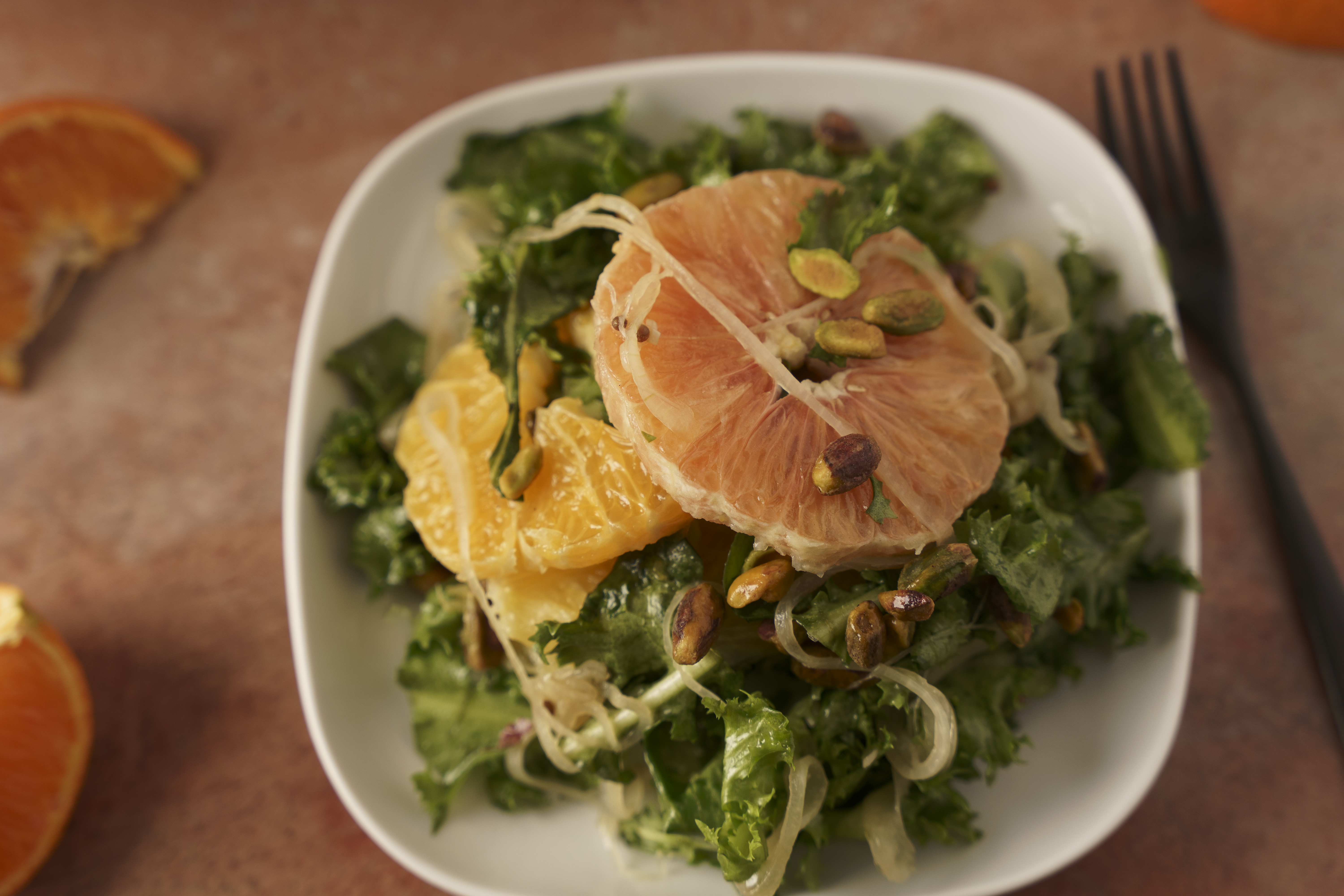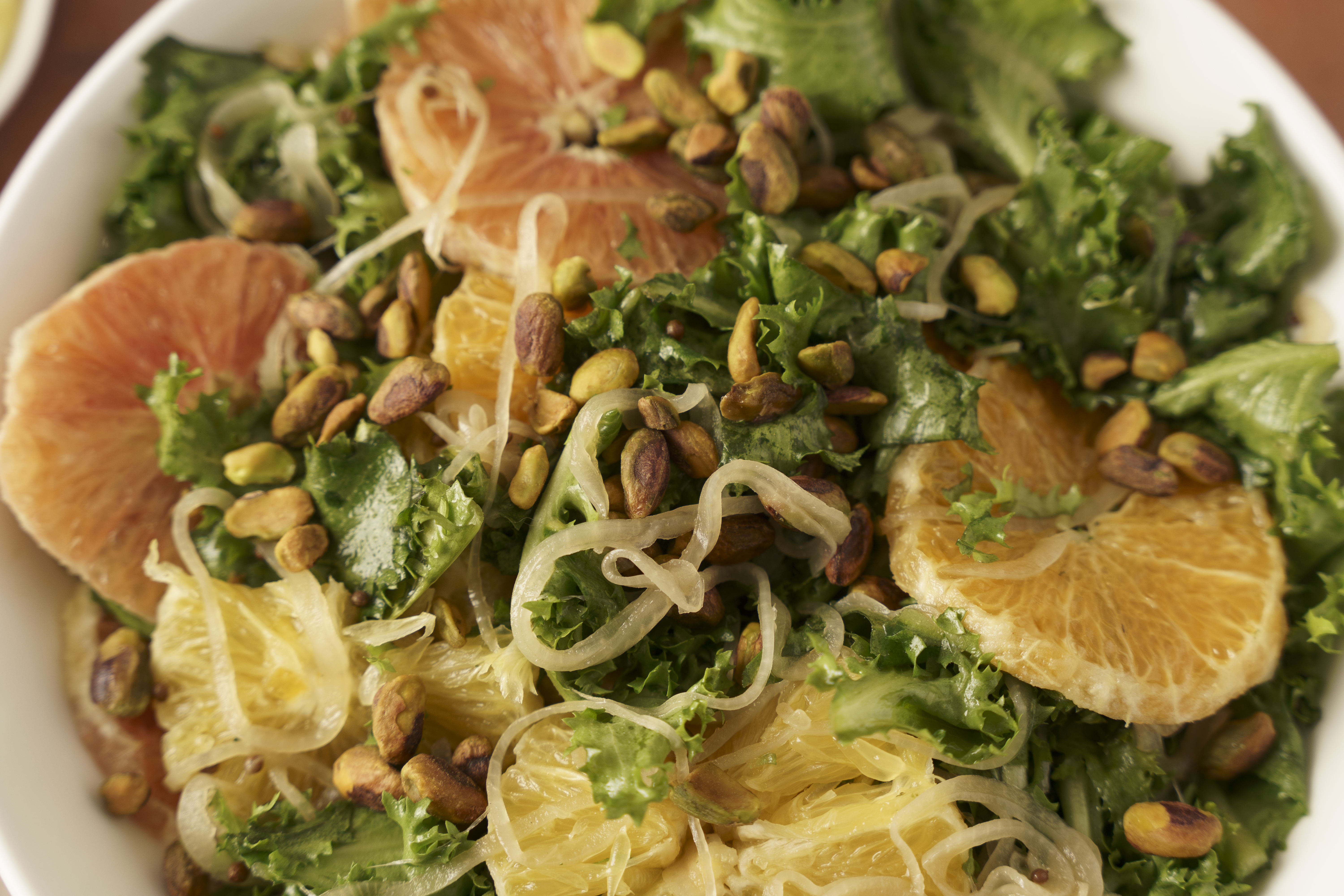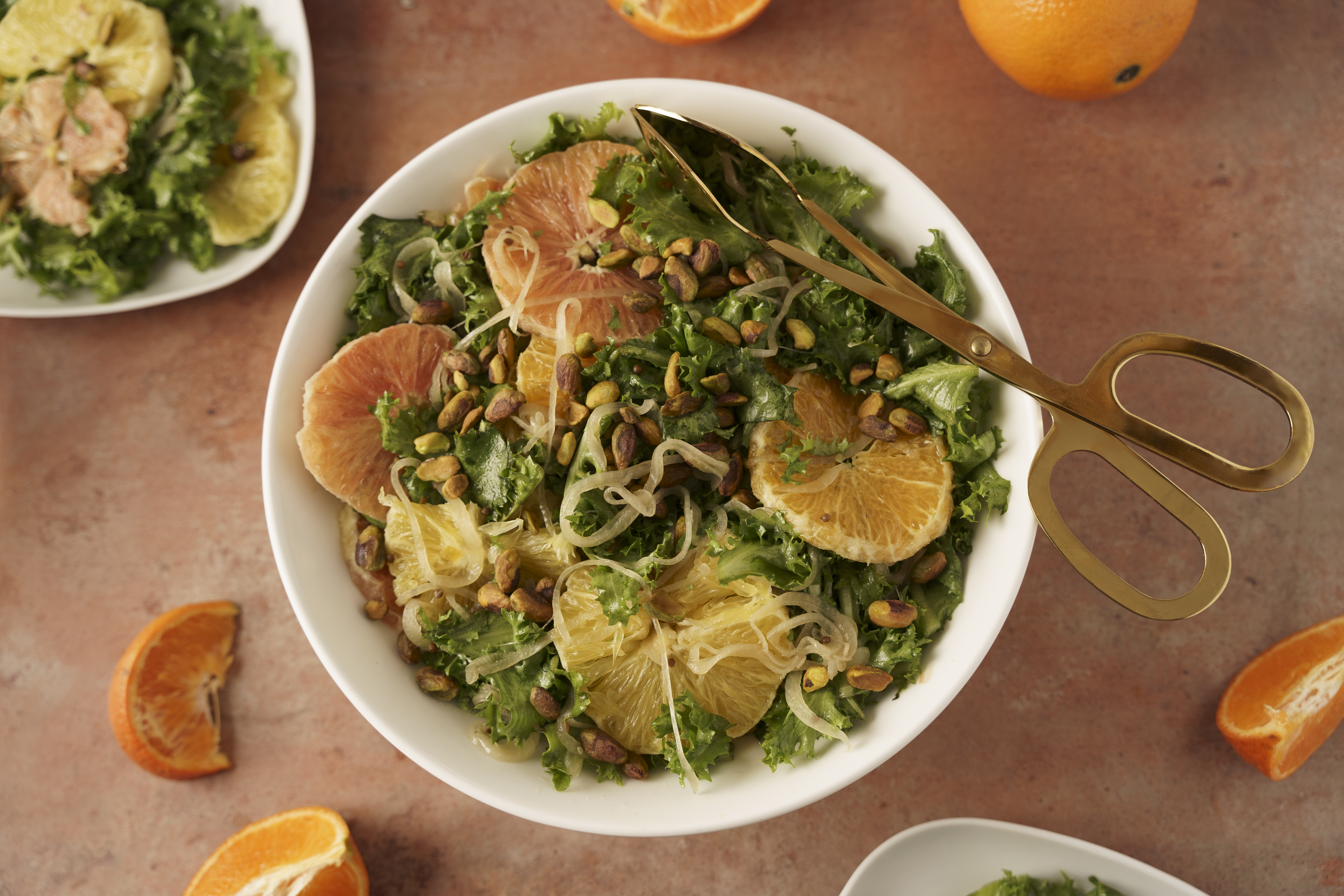This is rustic charm embodied in a fresh salad. Country Citrus Salad features a tangy orange dressing over homemade, sweet-and-sour pickled onions, complete with some emerald escarole. With juicy orange segments and crunchy nuts, this salad reaches new and tasty flavor dimensions! You're sure to find beauty in each bite of Country Citrus Salad!