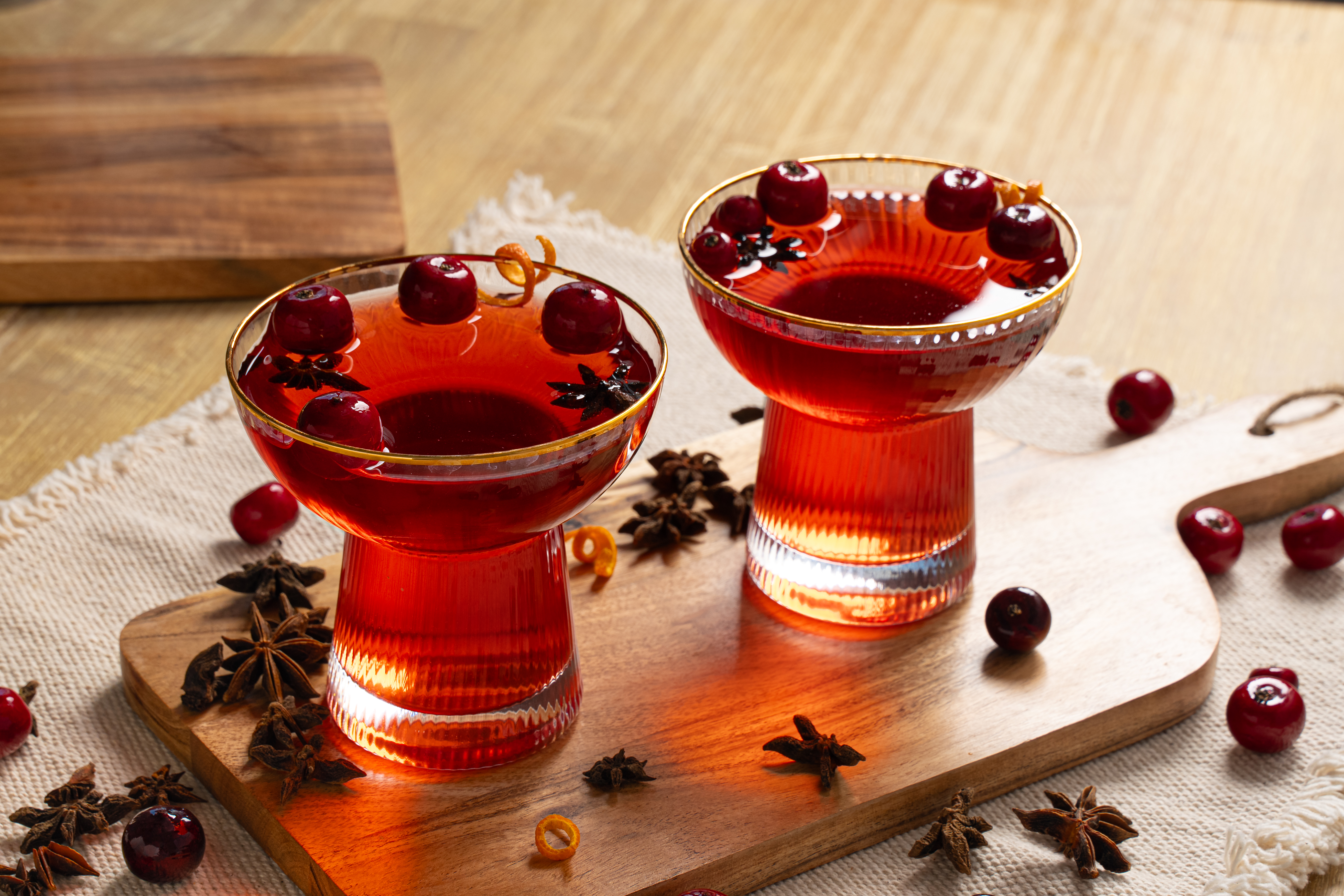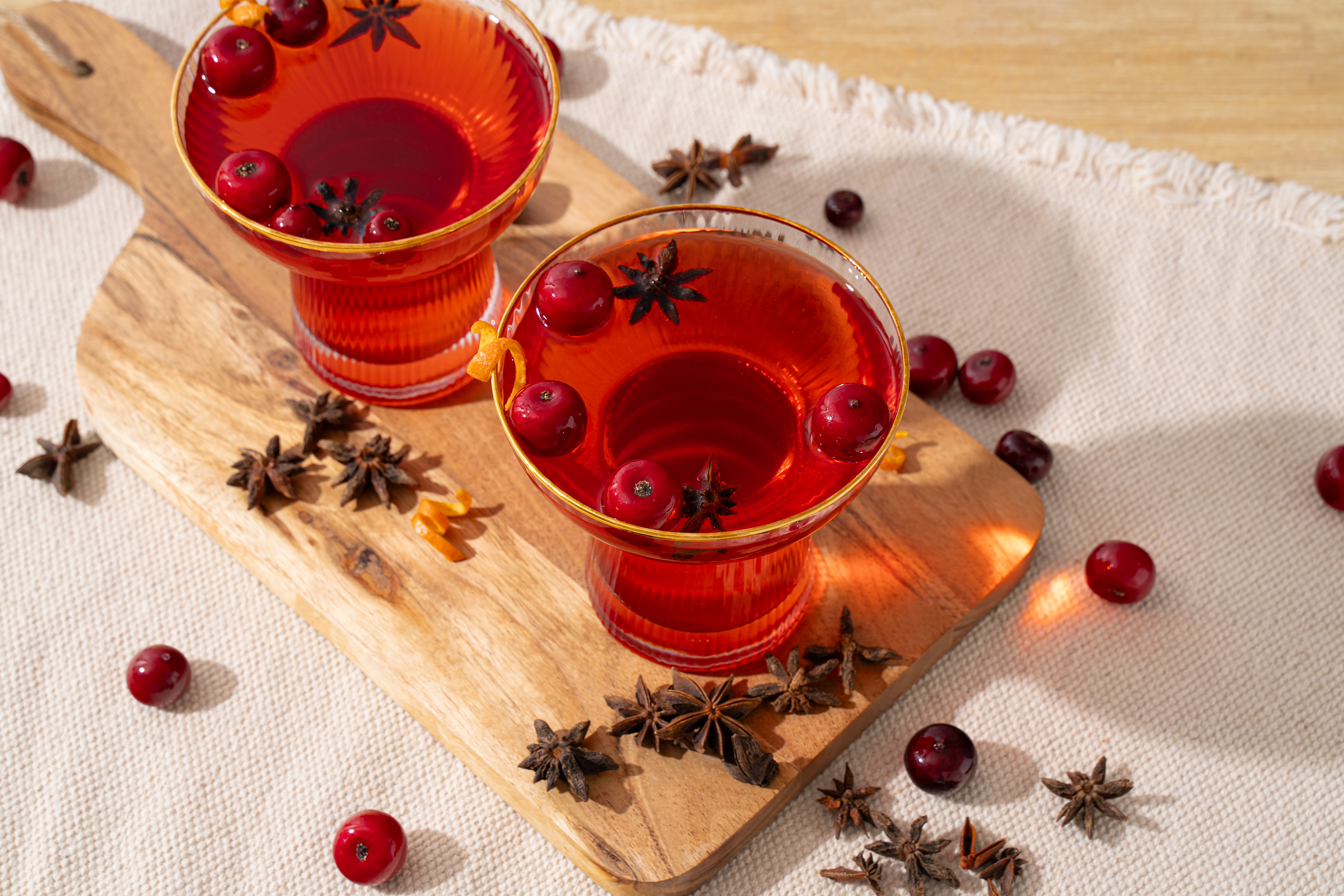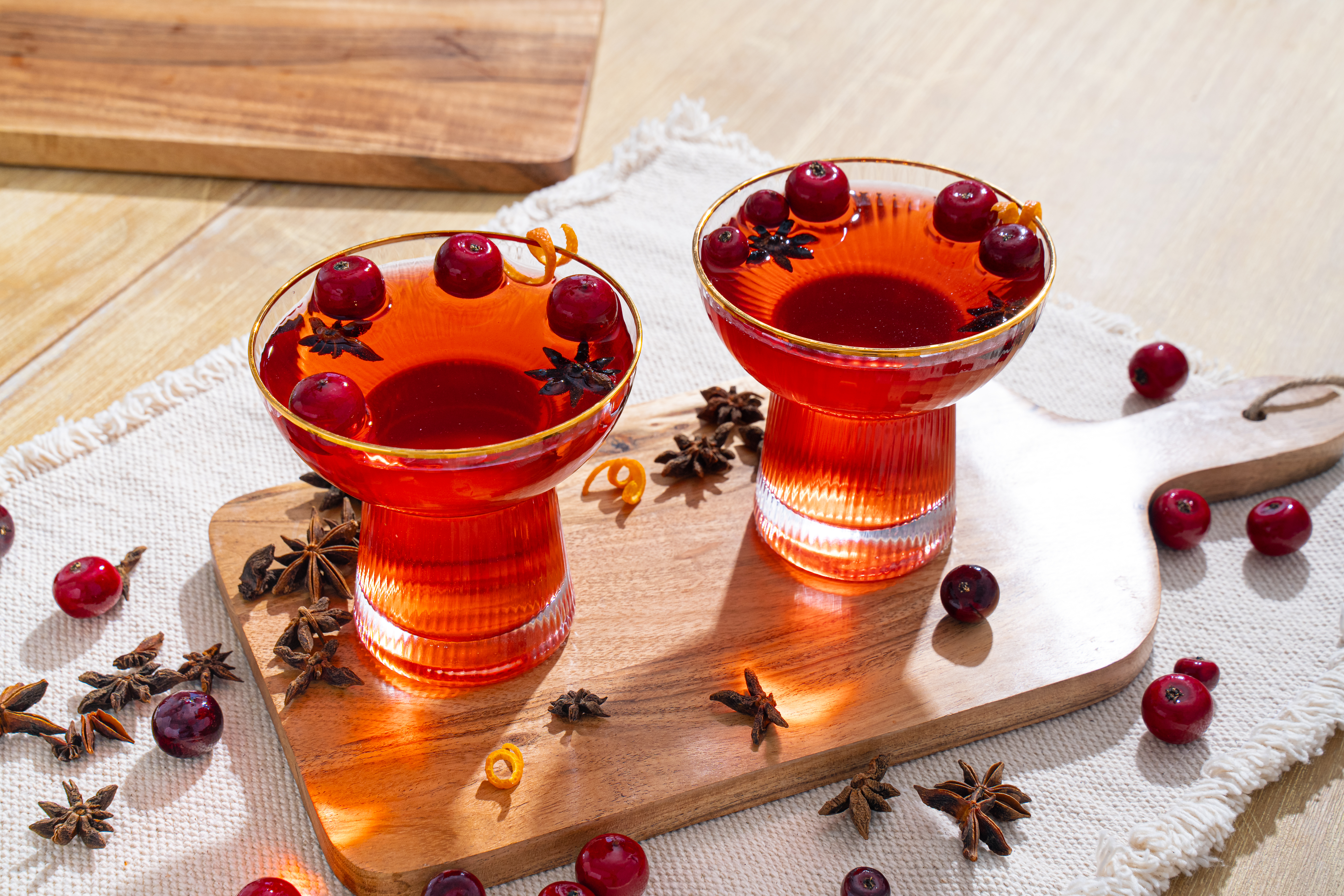 Step 11 -Serve the drinks garnished with the fresh cranberries, the extra star anise, and the shaved orange peel.