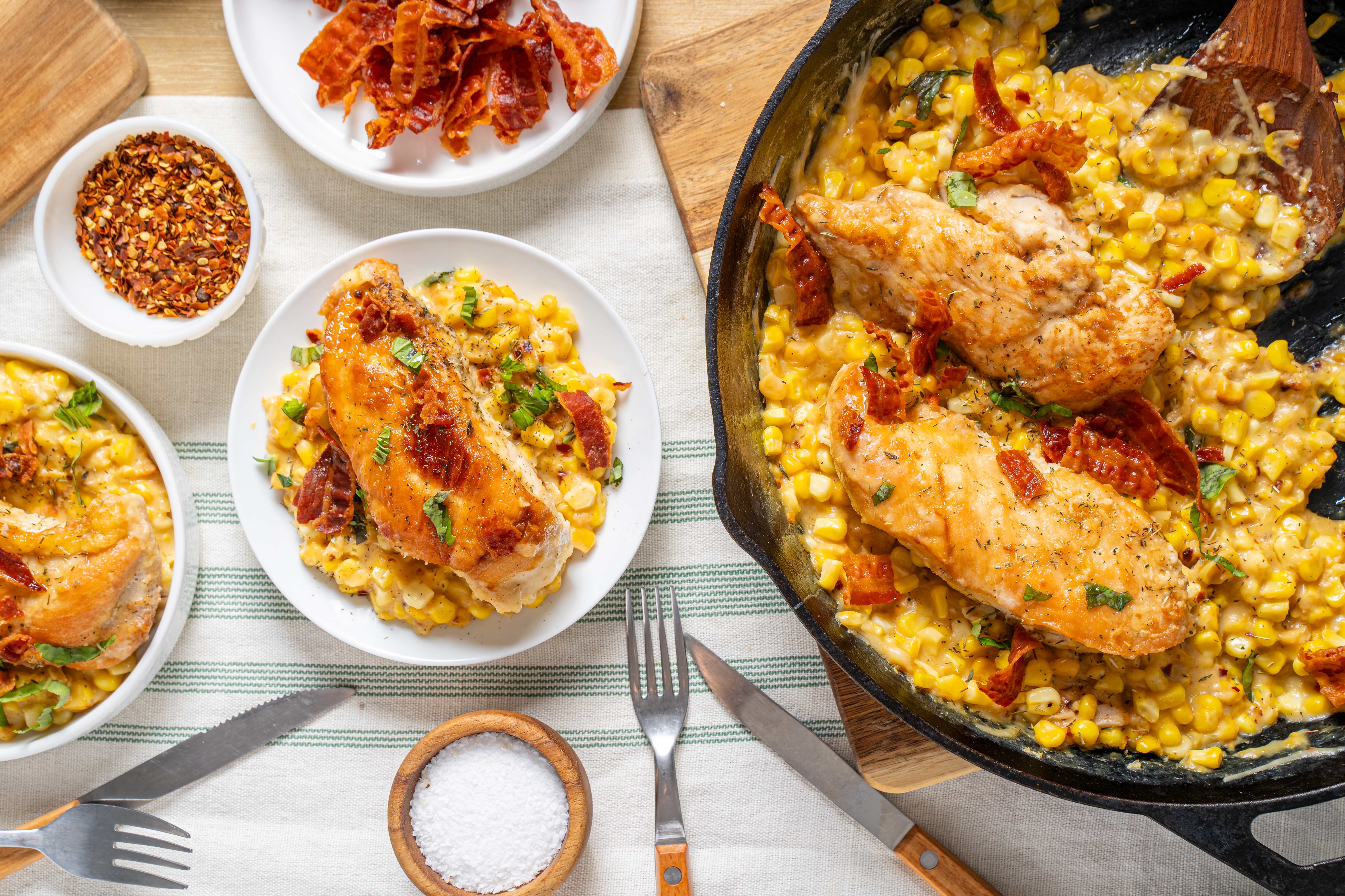 Seared chicken is savory and juicy, and just crying out for the right accompaniment. Thankfully, Creamed Corn Chicken provides that by default — the chicken is resting on a bed of creamy, cheesy, summery sweet corn, cooked until soft and golden. Mmmm, what a joy this is! Creamed Corn Chicken is surprisingly refined and elegant for its humble appearance, and it has a flavor that will blow you away!