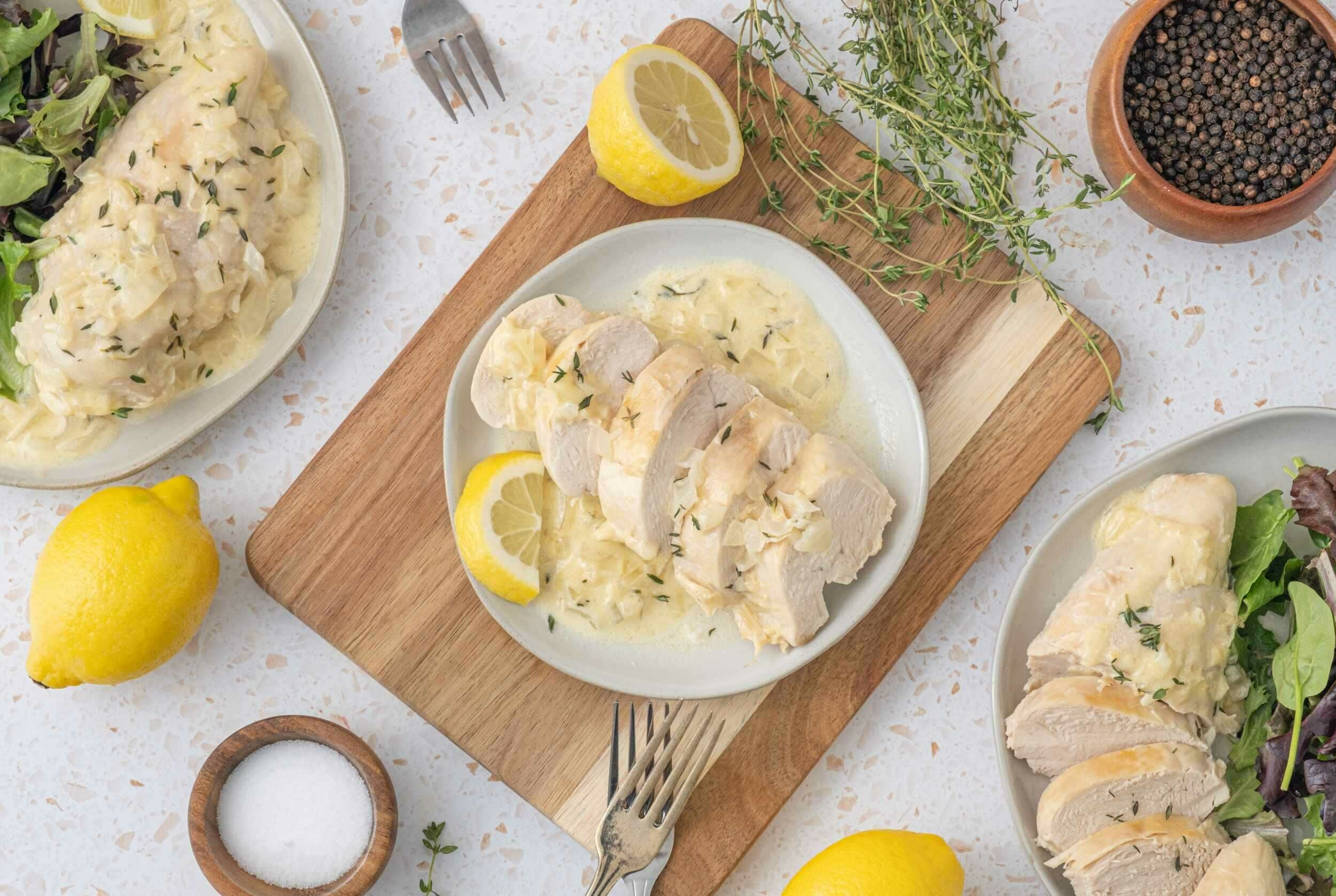 Sometimes, when a meal sounds this good, you don't need any explanations. Creamy Lemon Thyme Chicken simmers the savory, juicy chicken in a profoundly delicious and luscious sauce: creamy, zesty, fragrant, and of course rich and buttery. This is the kind of sauce that you'll want to serve with some crusty bread because you can't help but mop up every last bite. Plus it all cooks in a single pan for easy clean-up. Creamy Lemon Thyme Chicken takes weeknight dinners to whole new places, and they're places you'll want to visit again and again!
