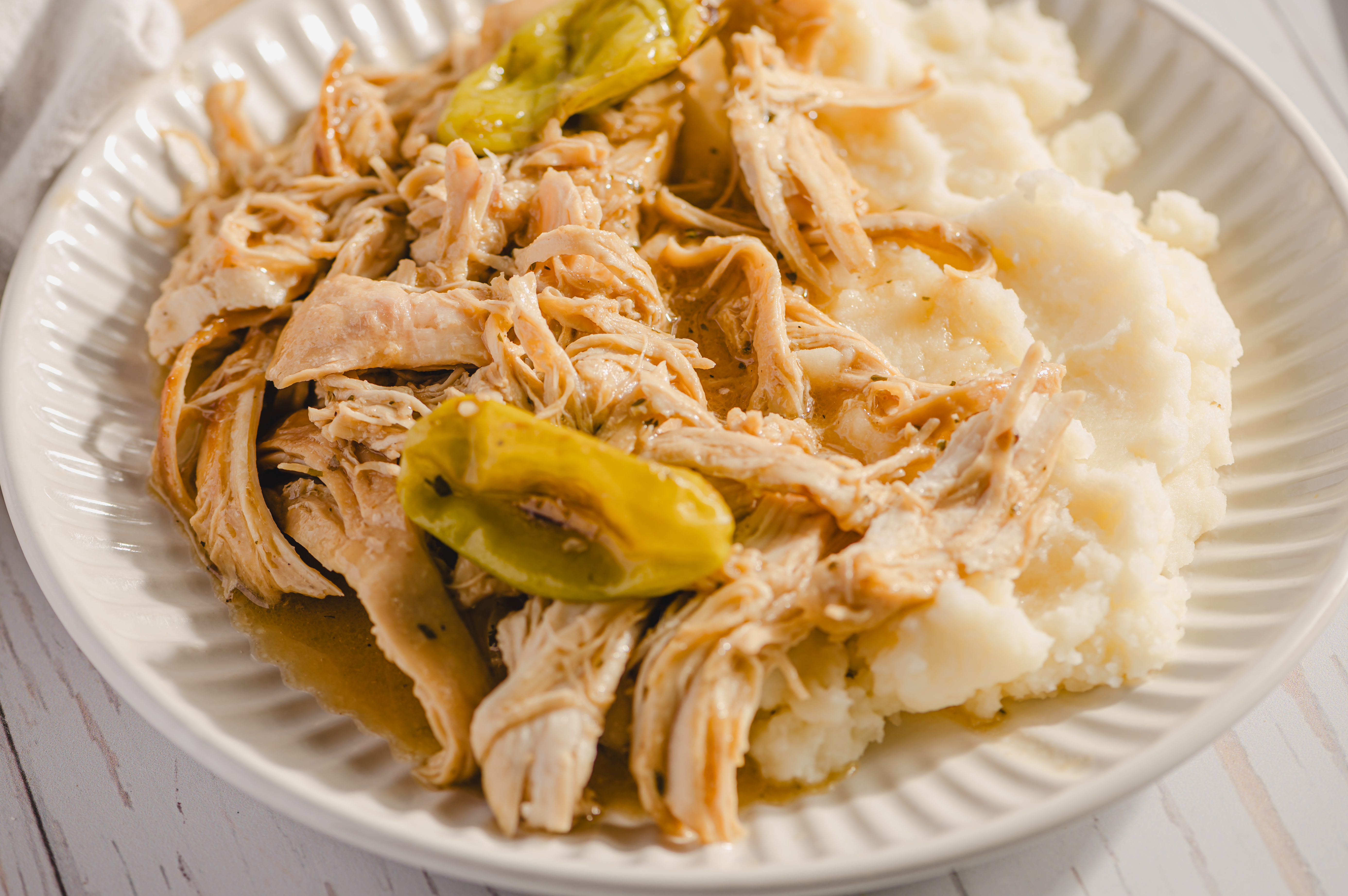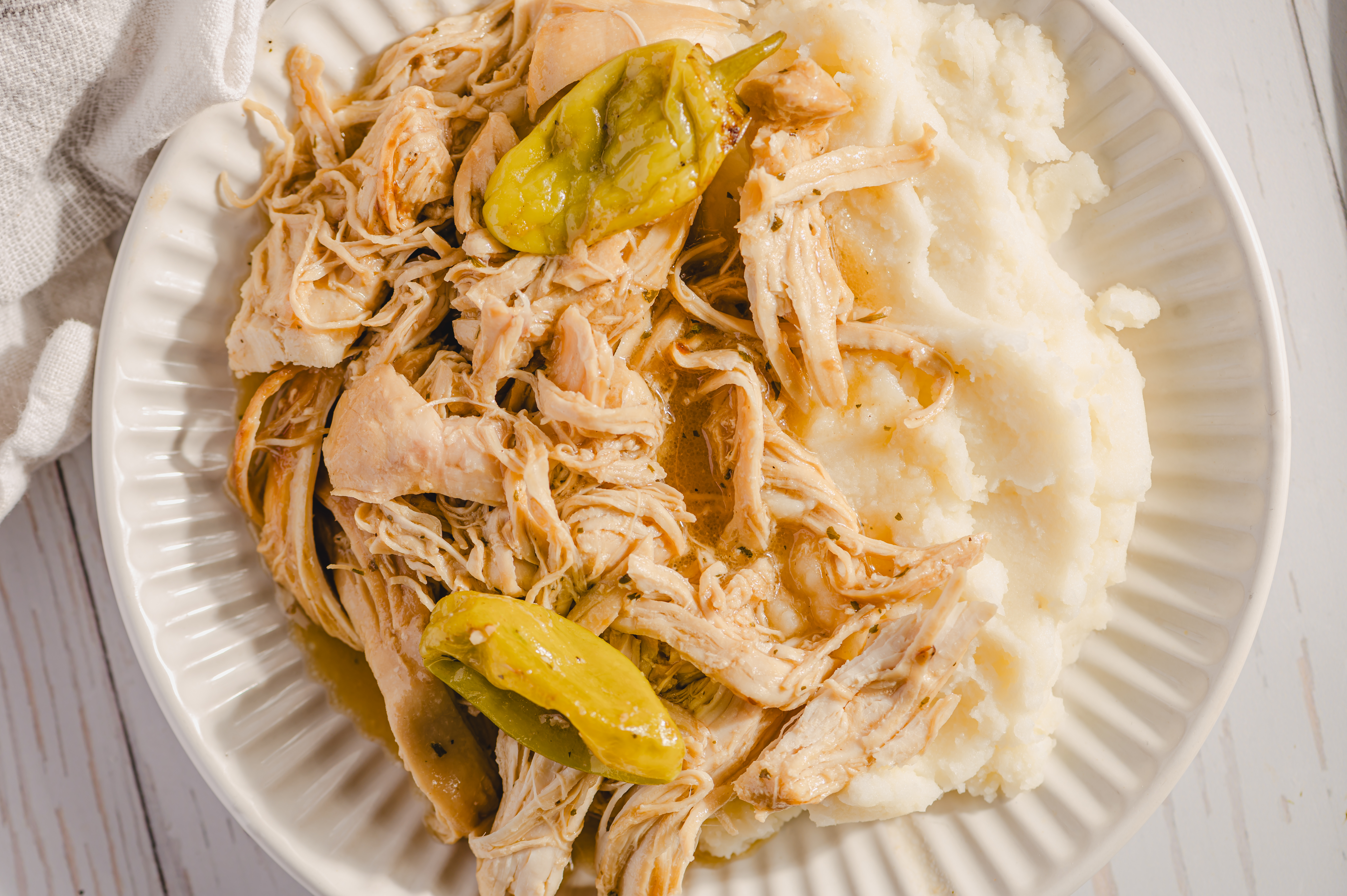 Down-Home Mississippi Chicken is a Southern-inspired dish that’s appropriately both tangy and savory, the way good Southern barbecue always tastes. Only this barbecue doesn't require a grill! Succulent chicken breasts are slow cooked to perfection in a blend of spicy pepperoncini juice, zesty ranch seasoning, and succulent au jus mix. As the chicken gently cooks, it absorbs all those delicious flavors, creating a melt-in-your-mouth flavor experience. Once shredded and stirred back into its flavorful juices, this Down-Home Mississippi Chicken pairs perfectly with hot mashed potatoes for a comforting meal that'll bring a taste of the South straight to your table.