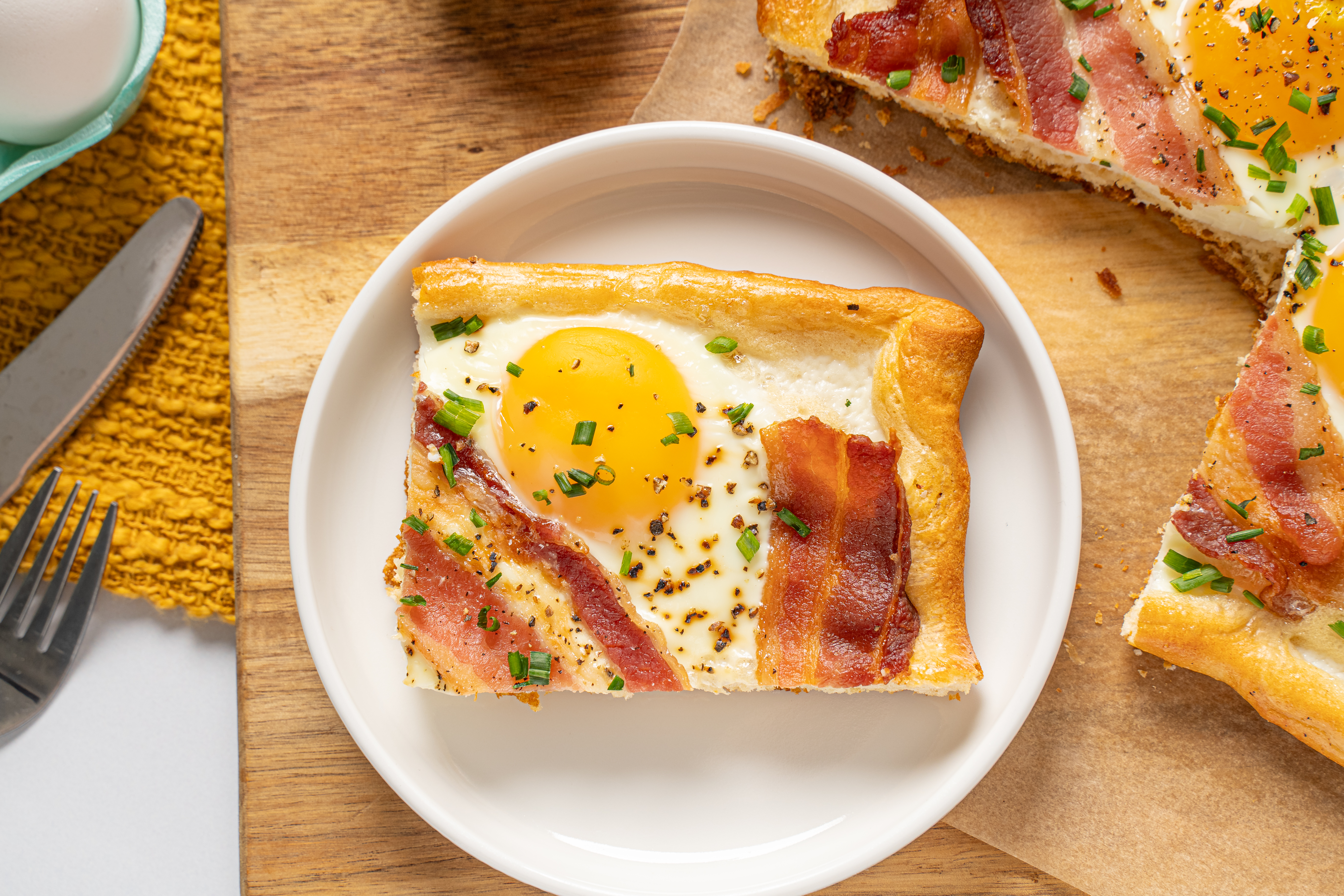 Make the morning bright and easy! With Easter Breakfast Tart, you can't go wrong! Starting with a crescent dough crust, some beloved eggs, shredded white cheddar cheese, and savory bacon become the breakfast masterpiece everyone will love! This easy, tasty Easter Breakfast Tart is the perfect answer to a hectic morning (no matter the day, really). Let's celebrate a new beginning!