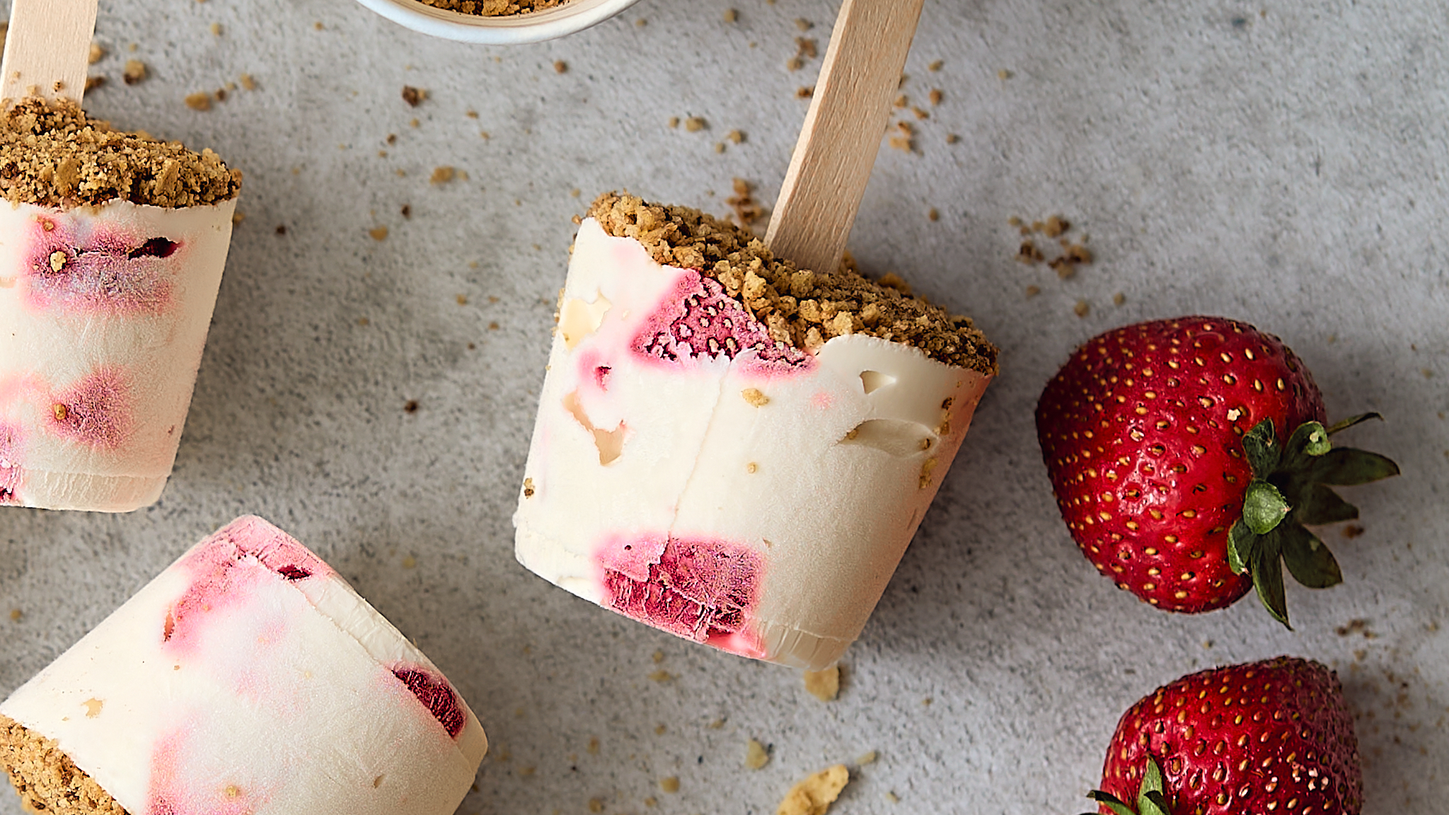 Ka-boom! These Easy Cheesecake Bombs are going to blow up your dessert routine in the best way! These creamy, frozen cheesecake pops are tangy and sweet, with a crunchy graham cracker topping and tart, juicy strawberries folded right in. It's a fun and whimsical way to enjoy a most elegant dessert! Easy Cheesecake Bombs are an explosion of sweet feelings!