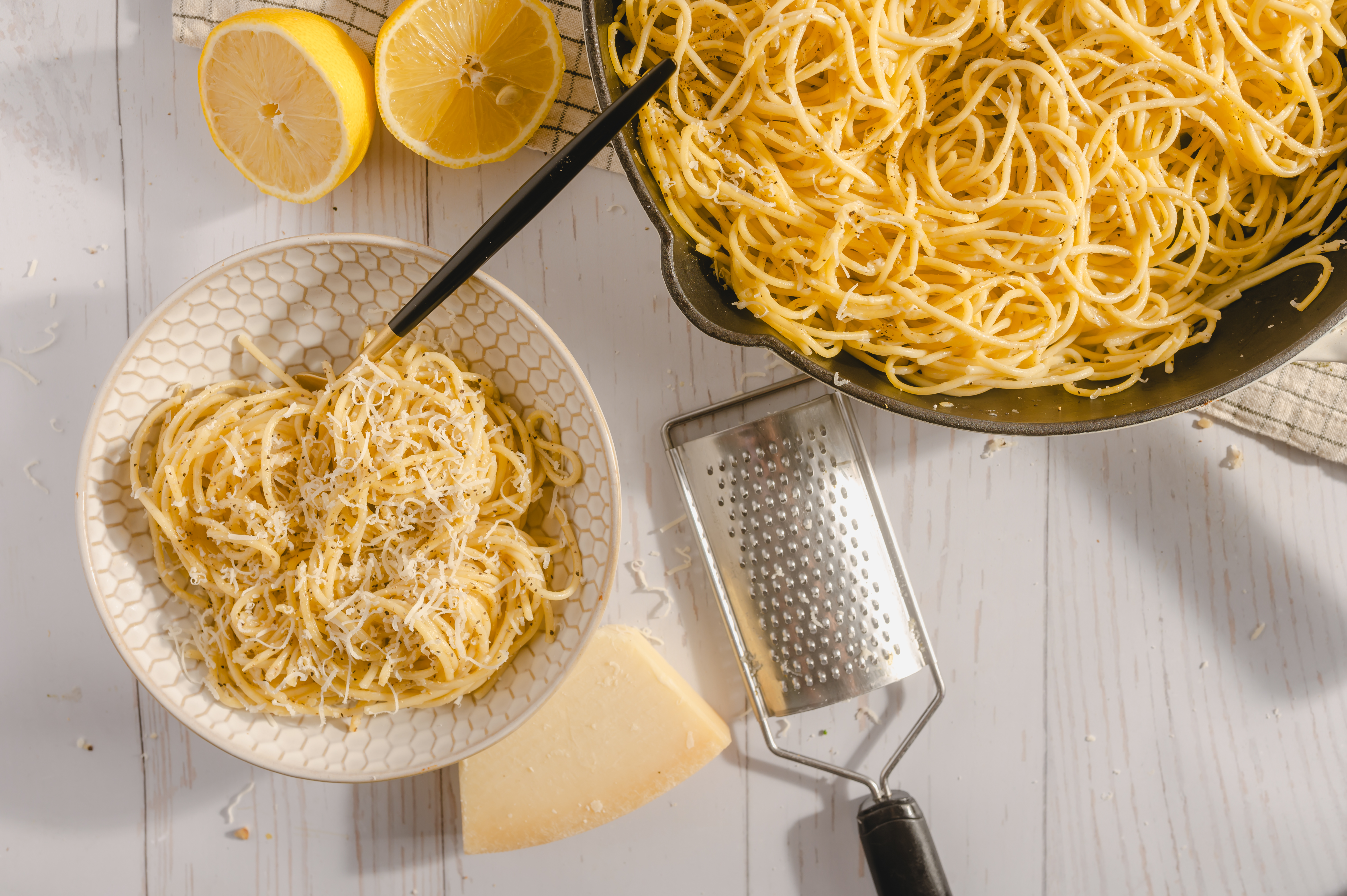 On the surface, Easy Cheesy Spaghetti might look like any ordinary "pasta with cheese" dish. But it's much more than that! The pasta doesn't just have cheese on it; it's coated in a simple yet creamy and sharp cheese-and-lemon-infused sauce that clings to every bite! There's a perfume of toasted black pepper pervading the entire dish, which makes each bite luxurious and deeply flavorful! Easy Cheesy Spaghetti might be speedy and a breeze to make, but you'll be hard-pressed to find a more beloved pasta meal!