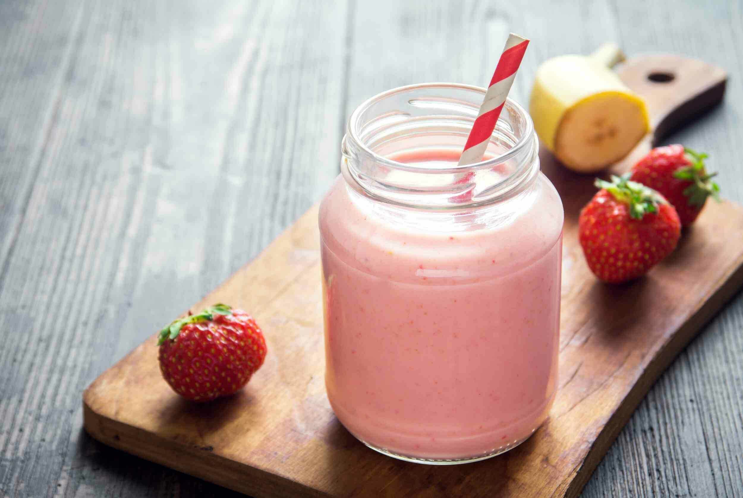 Step 1 -Combine the strawberries, the banana, the milk, and the ice in a blender.
