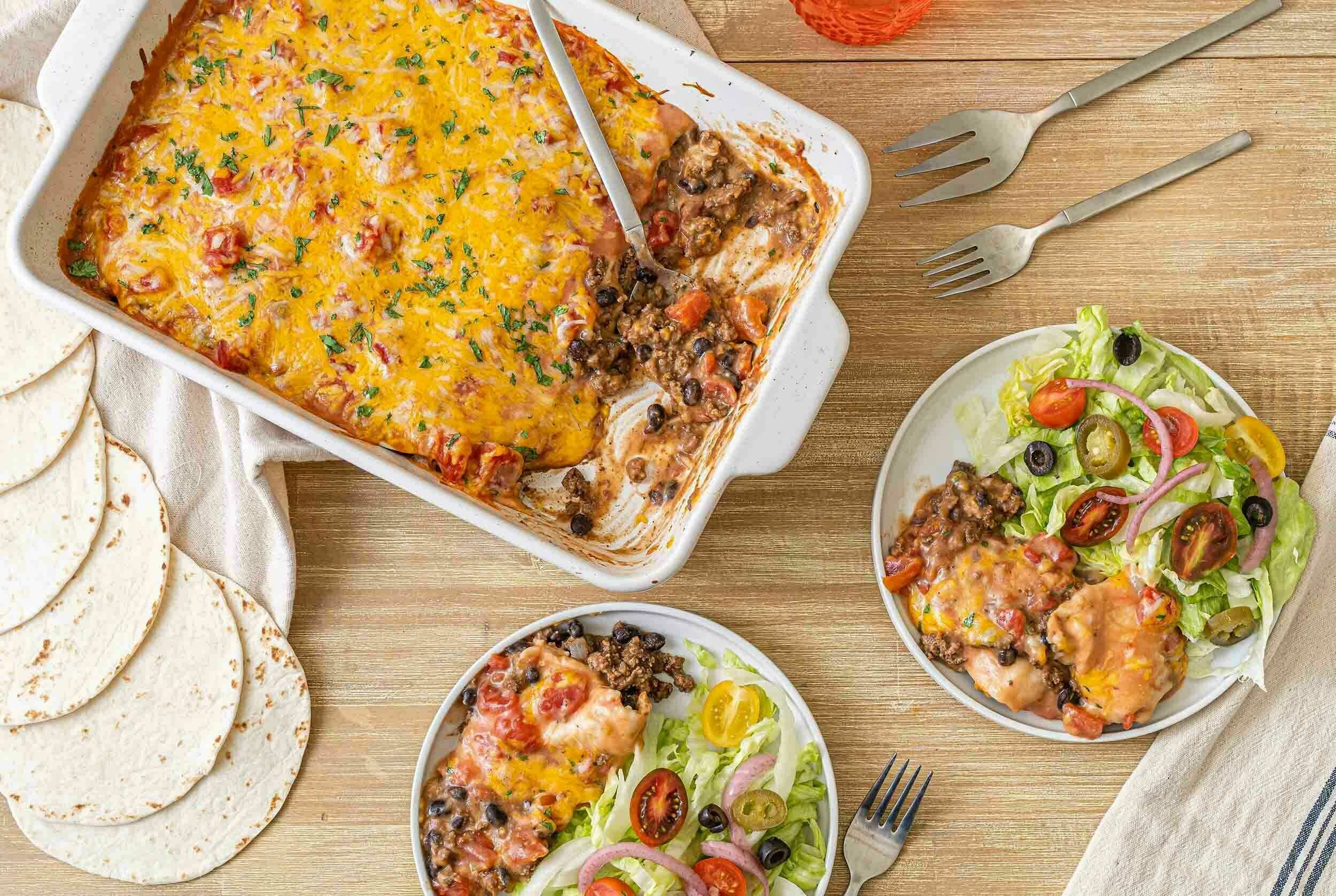 Usually, fireworks are visual entertainment, but not in this case! This golden, savory Firecracker Bake will make your tastebud sparks fly! It's exploding with spicy chili powder and rich ground cumin flavors. The meaty ground beef, sweet chopped onions, soft flour tortillas, hearty cream of mushroom soup, and flavorful tomatoes and green chiles all mixed together make this dish an absolute banger! Topped with melty cheddar cheese, Firecracker Bake is a bright and spectacular dining event!