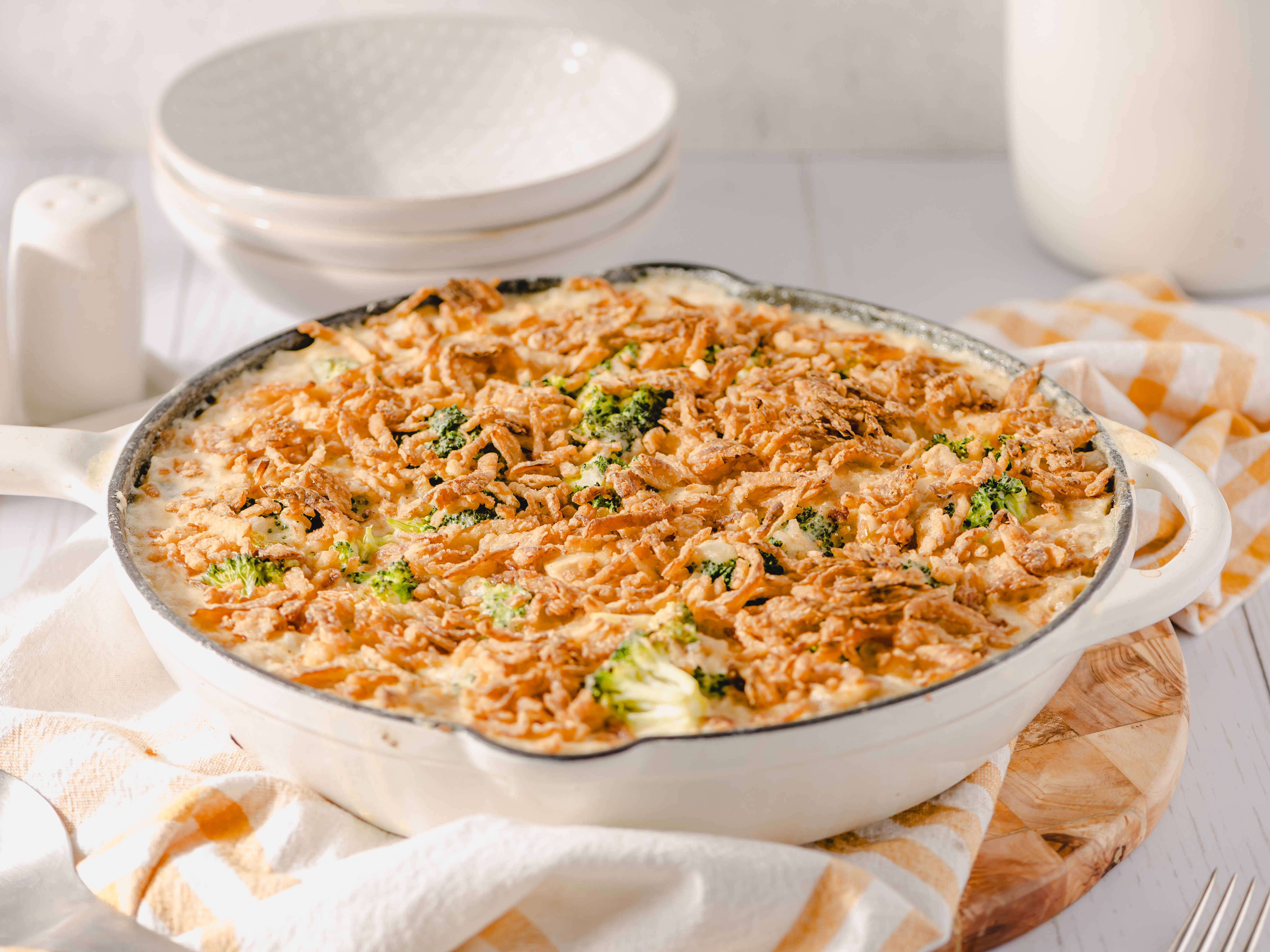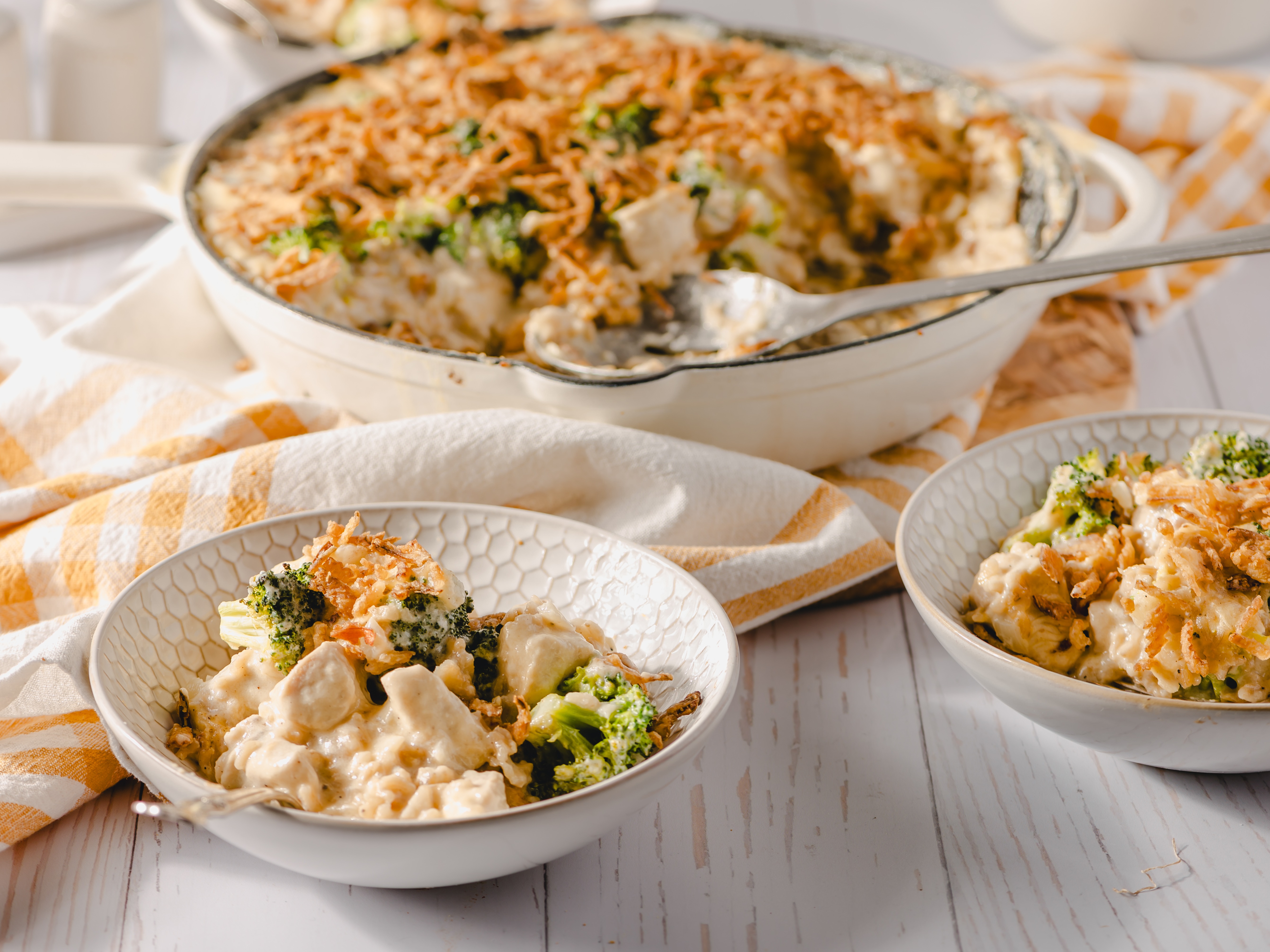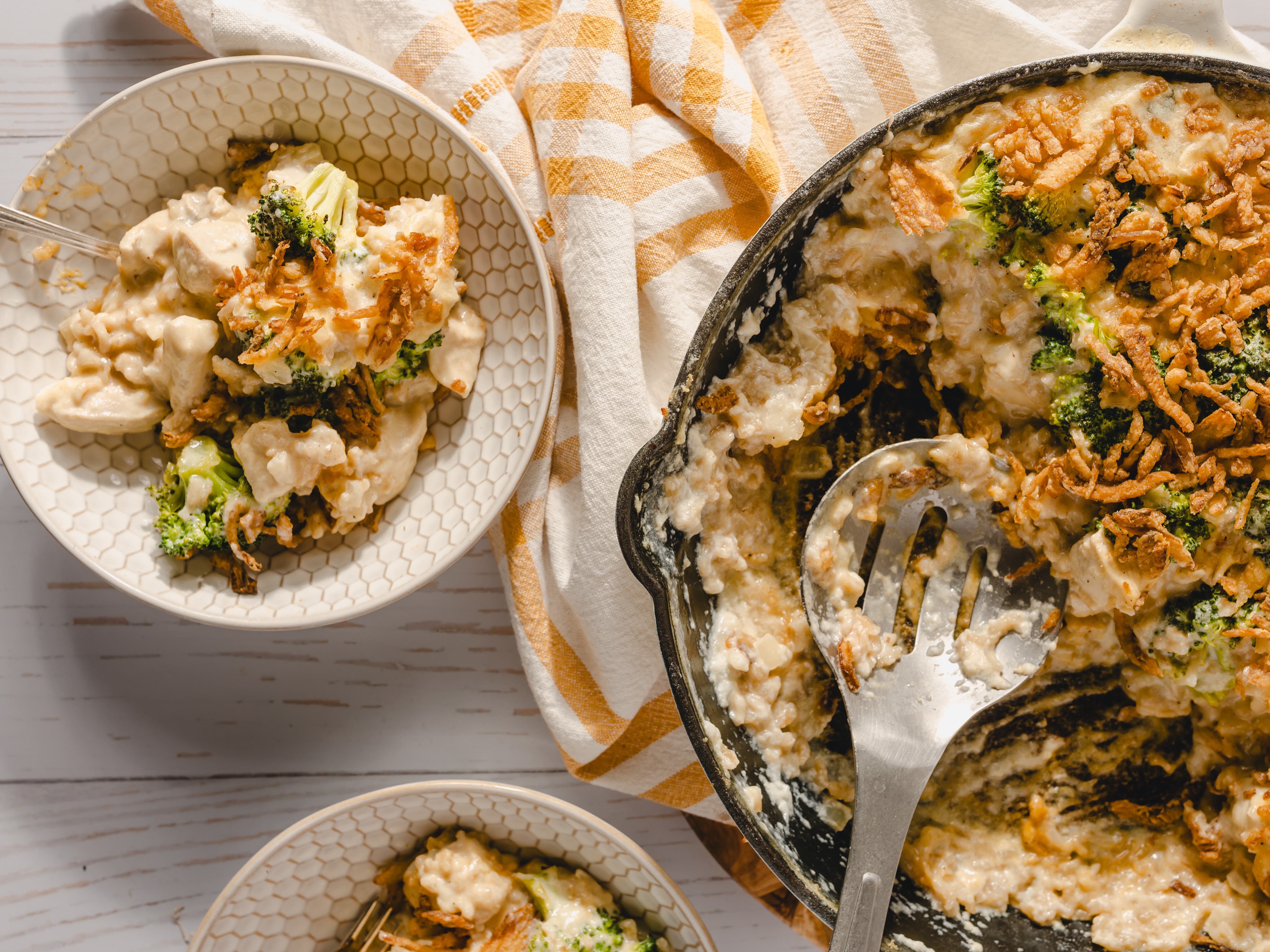 Uh-oh! Feeling a little under the weather? Flu Season Casserole is here to make it all better! You'll be good as new after a bowl of this tender chicken and fluffy rice bubbling in a creamy, cheesy sauce. There are even nourishing pieces of broccoli mixed in to ensure you're getting everything you need to get back to feeling good. Crunchy, flavorful, and extremely comforting, Flu Season Casserole is the dinner cure for it all!