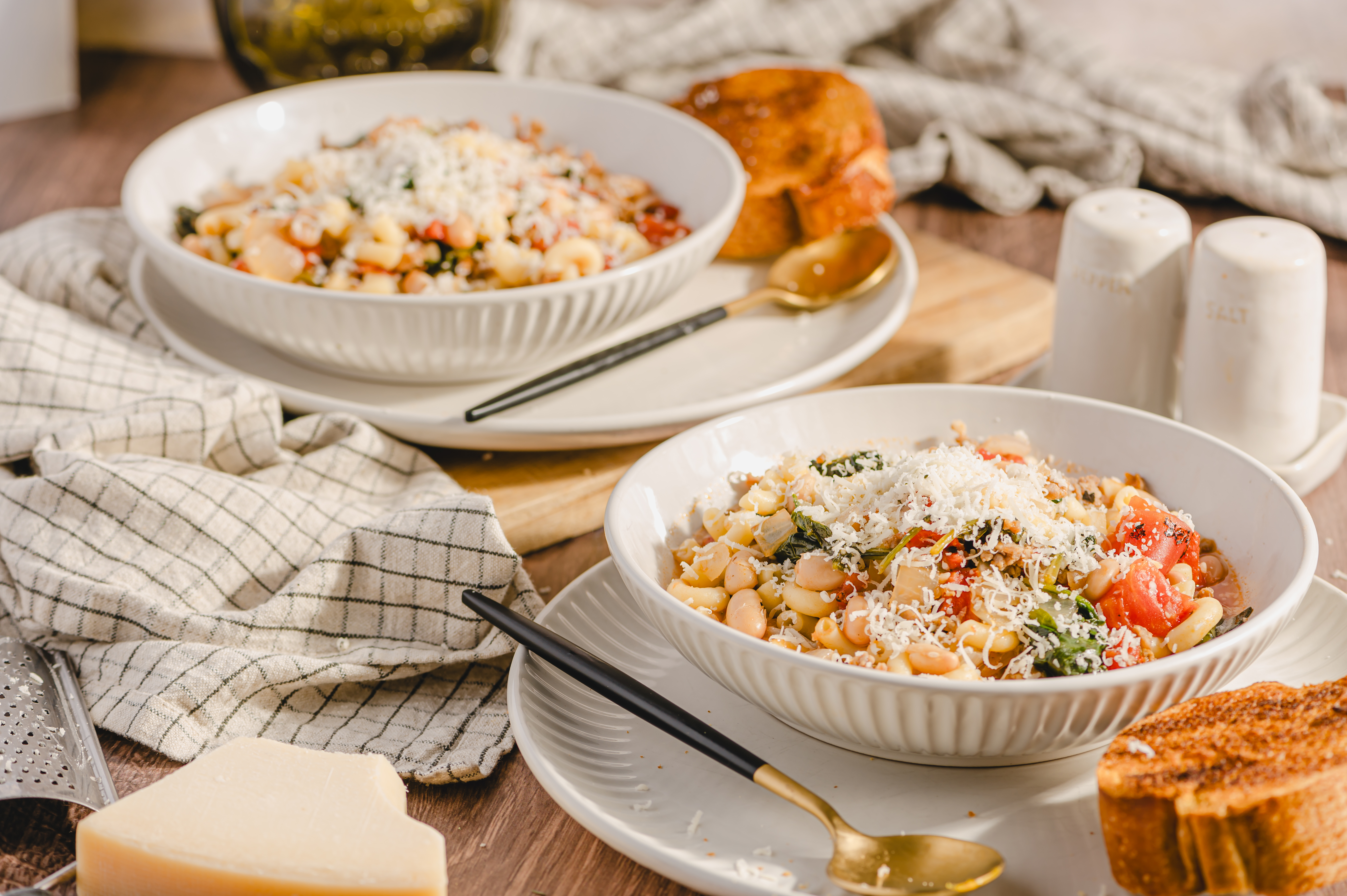 Football Fagioli Soup is a touchdown of taste! The succulent and spicy sausage, the tender spinach, the rich tomatoes, the creamy beans... they're all here in a savory broth that's warm and inviting. Ready in a flash so you have something to sip on between downs, Football Fagioli Soup is so easy to make you'll be celebrating a flavor victory in no time!