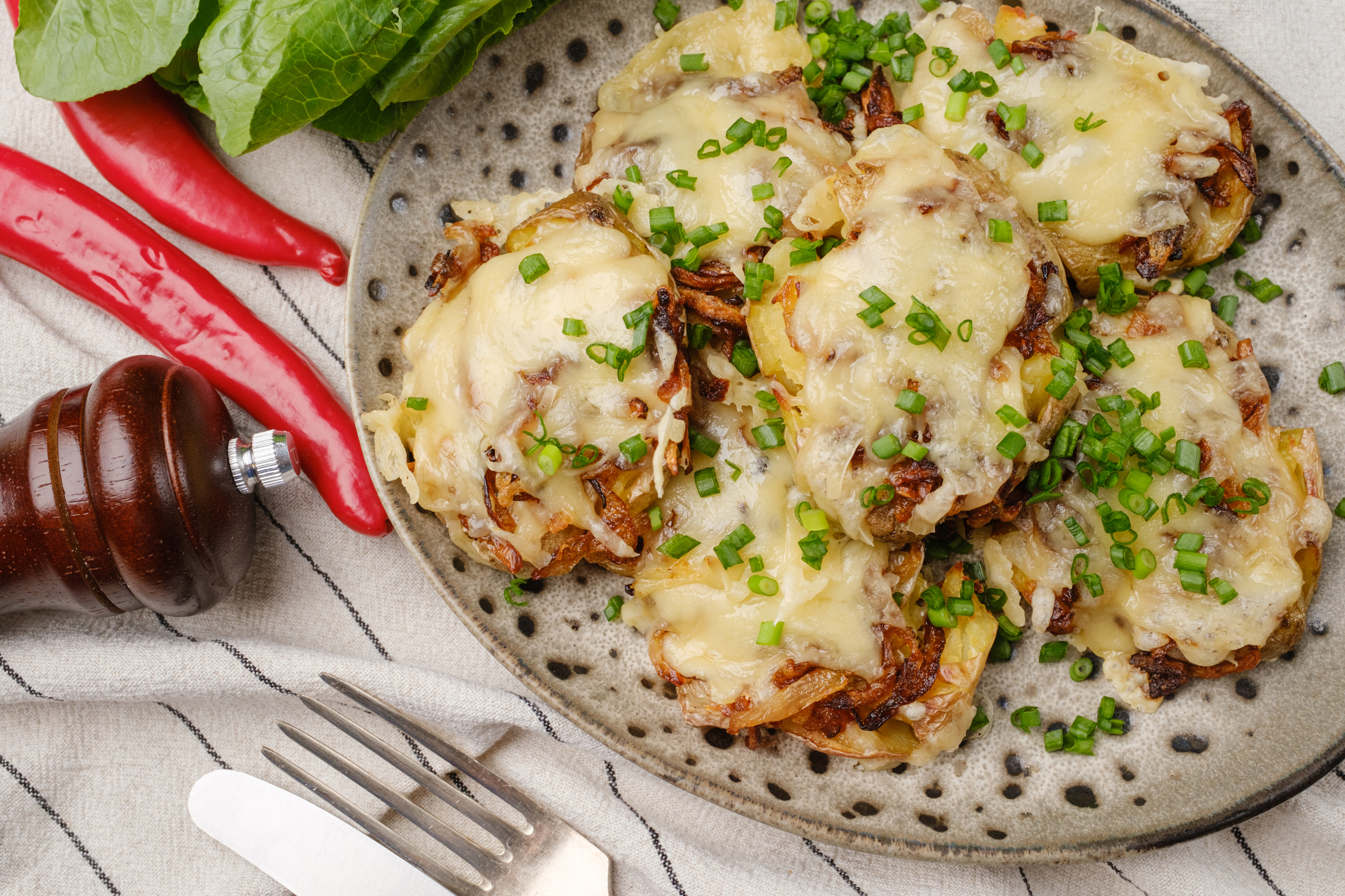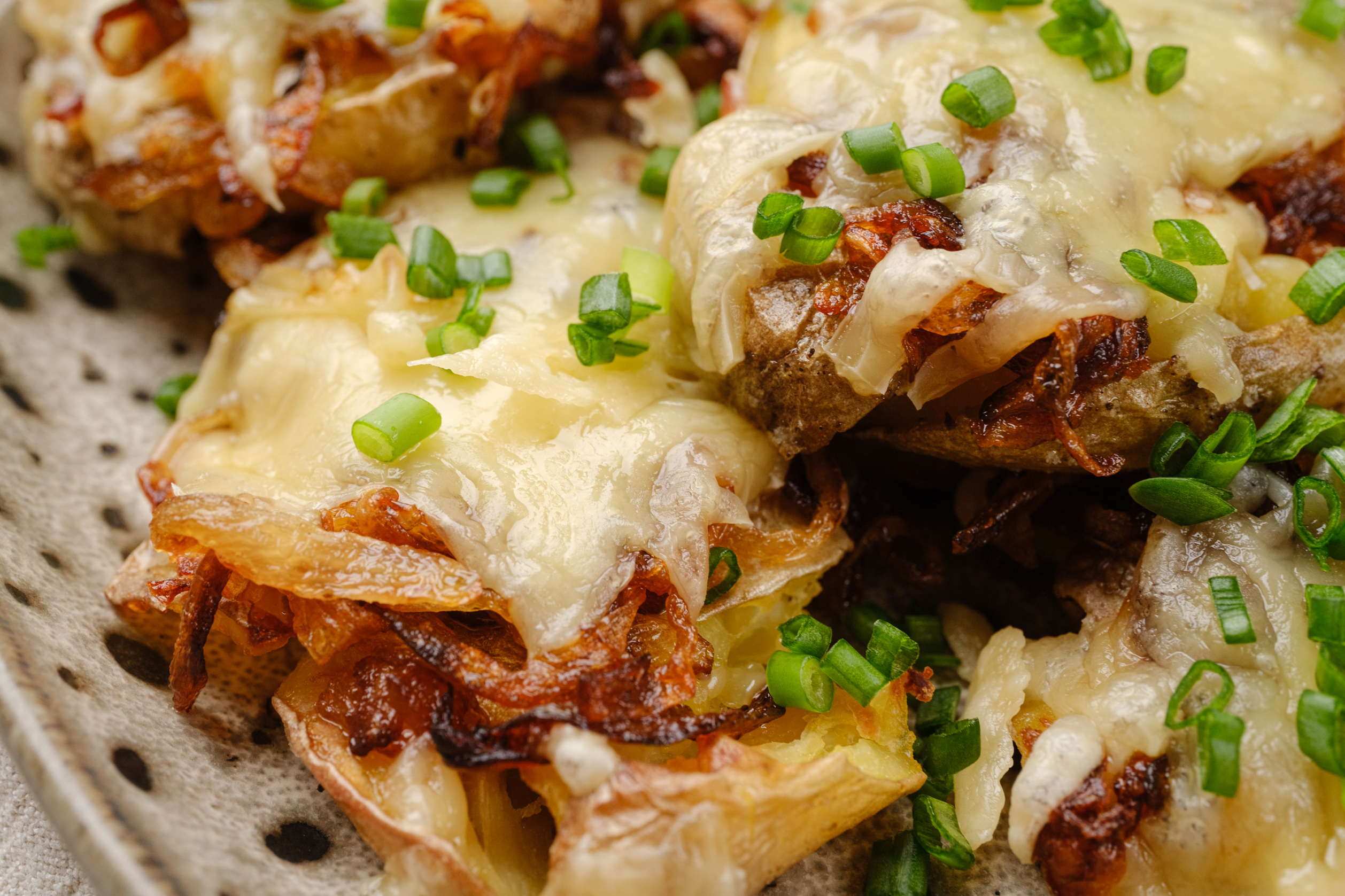 Take trendy potatoes and add a touch of the classics! French Smashed Potatoes are the crispy, fluffy-on-the-inside mouthful you've been hearing about, but don't just throw salt on them. Oh no, French Smashed Potatoes go the extra mile, all the way to Paris in fact! Instead, the potatoes are topped with sweet, golden-brown caramelized onions and smoky Gruyère cheese, sharing the delicious flavor of French onion soup in each bite. Bon appetite!