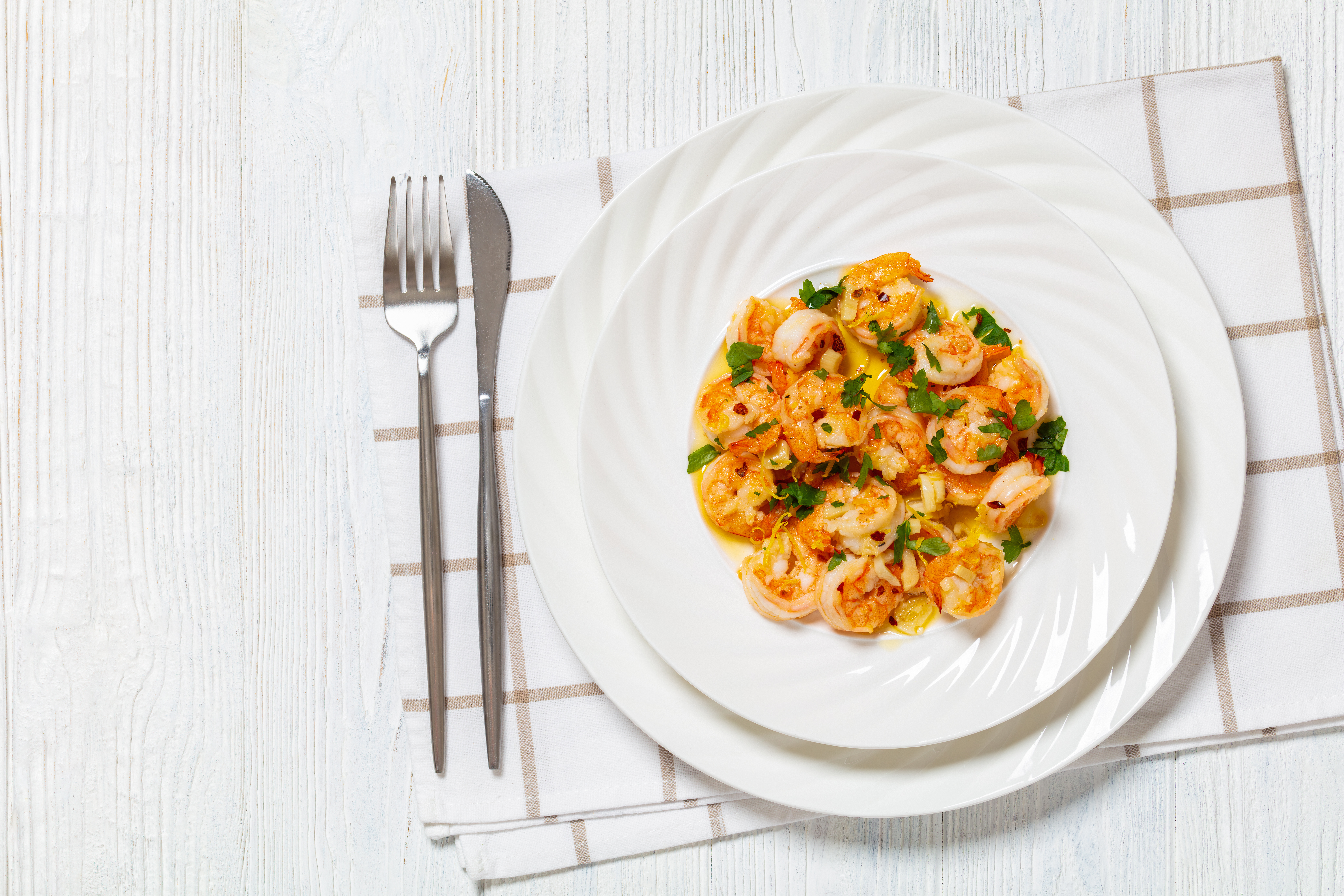 Step 6 -Add the shrimp to the garlic oil and cook, flipping once, until the shrimp are pink and they reach an internal temperature of 145 degrees F, about 3-4 minutes.