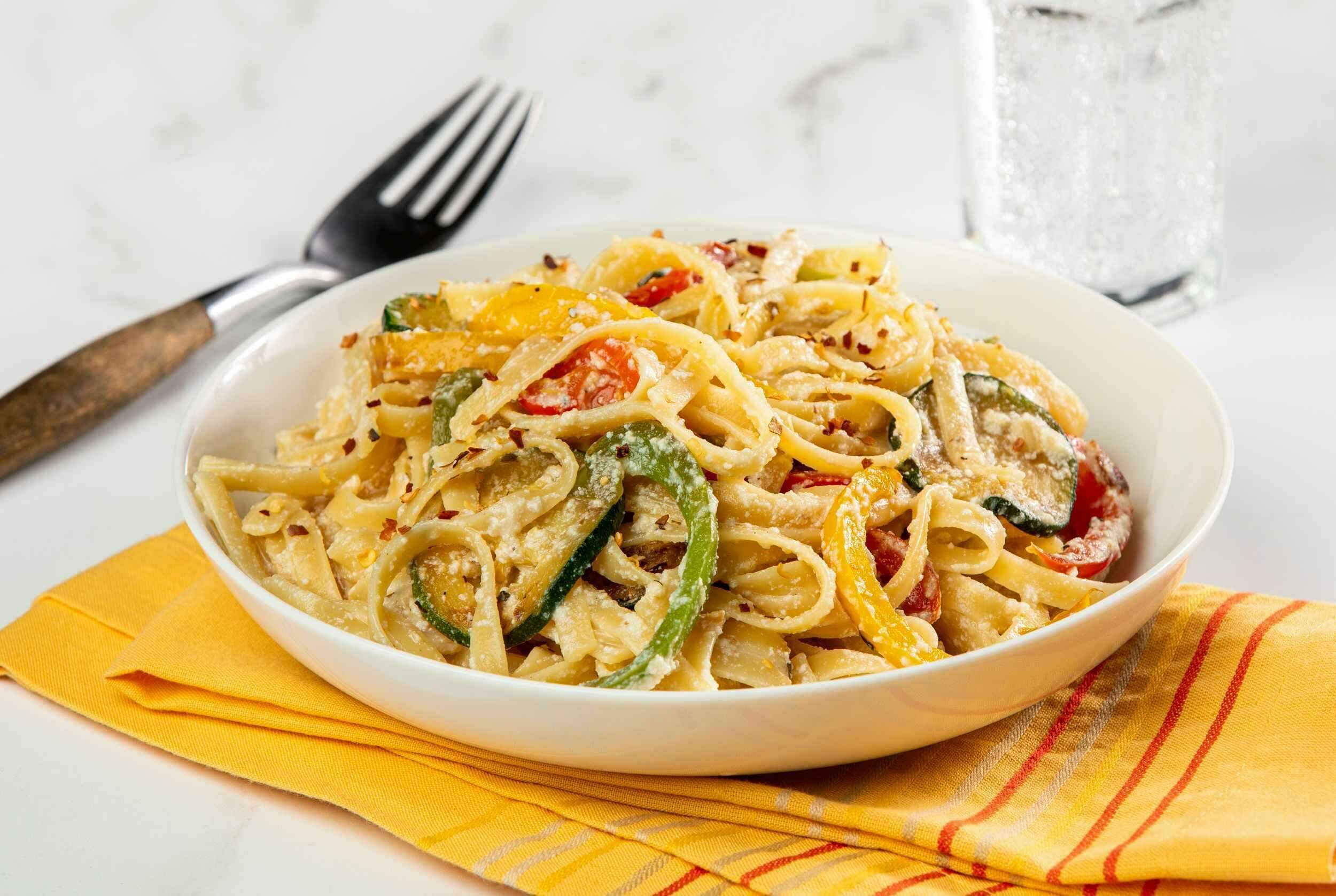 While pasta primavera is an American dish, the name itself is Italian for "Spring Pasta." Garden-Fresh Primavera embraces the springtime feeling with a cornucopia of fresh vegetables, from crisp bell peppers to juicy zucchinis to bright green peas. All of these fresh delights are mixed in a cheesy sauce with tender fettuccine for a pasta experience that is as refreshing as it is hearty. Garden-Fresh Primavera comes together without much fuss and in under half an hour, so you can always throw it together for a wonderful lunch or a light dinner that emphasizes flavor over fastidiousness. Spring truly has come!
