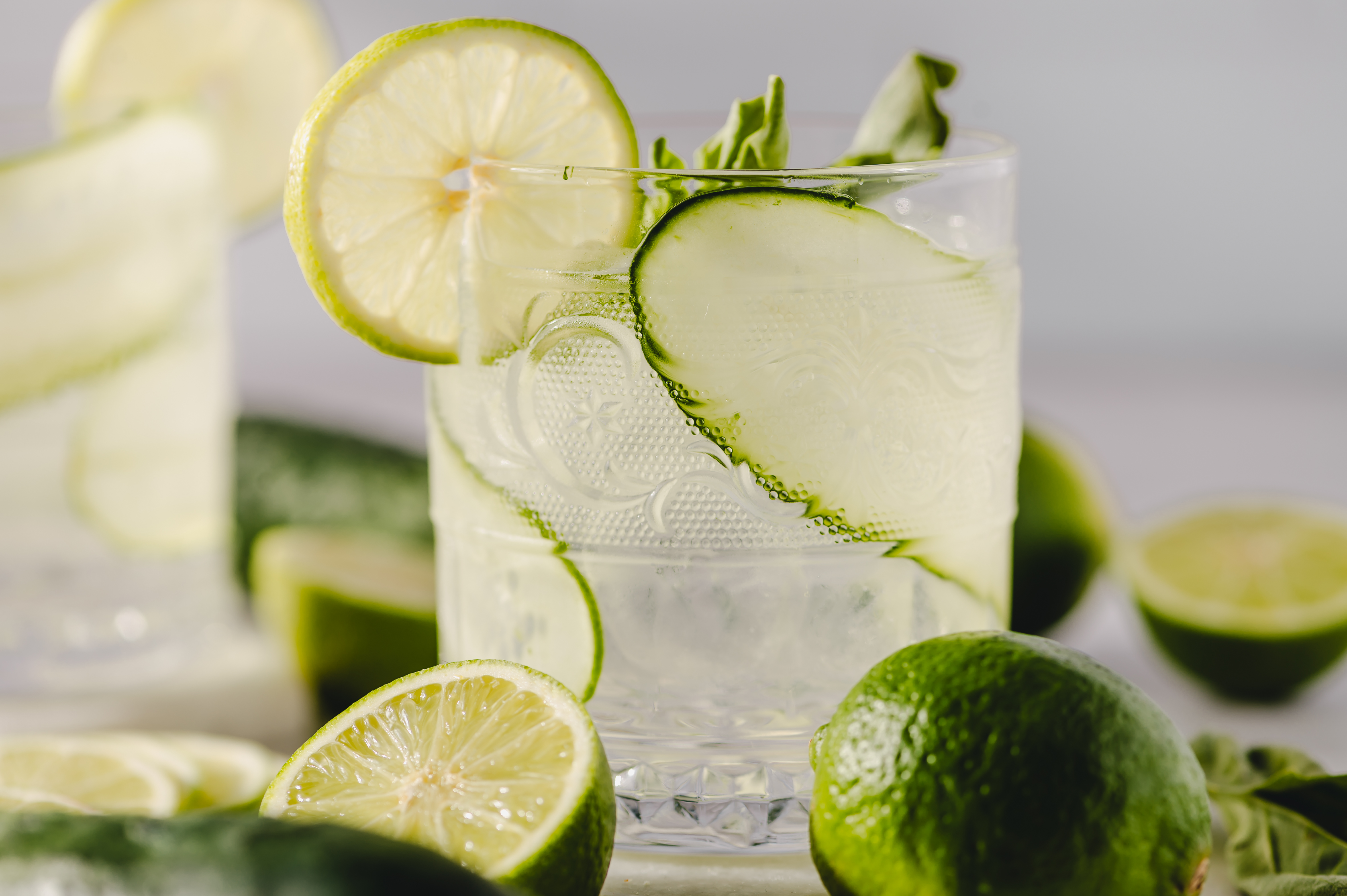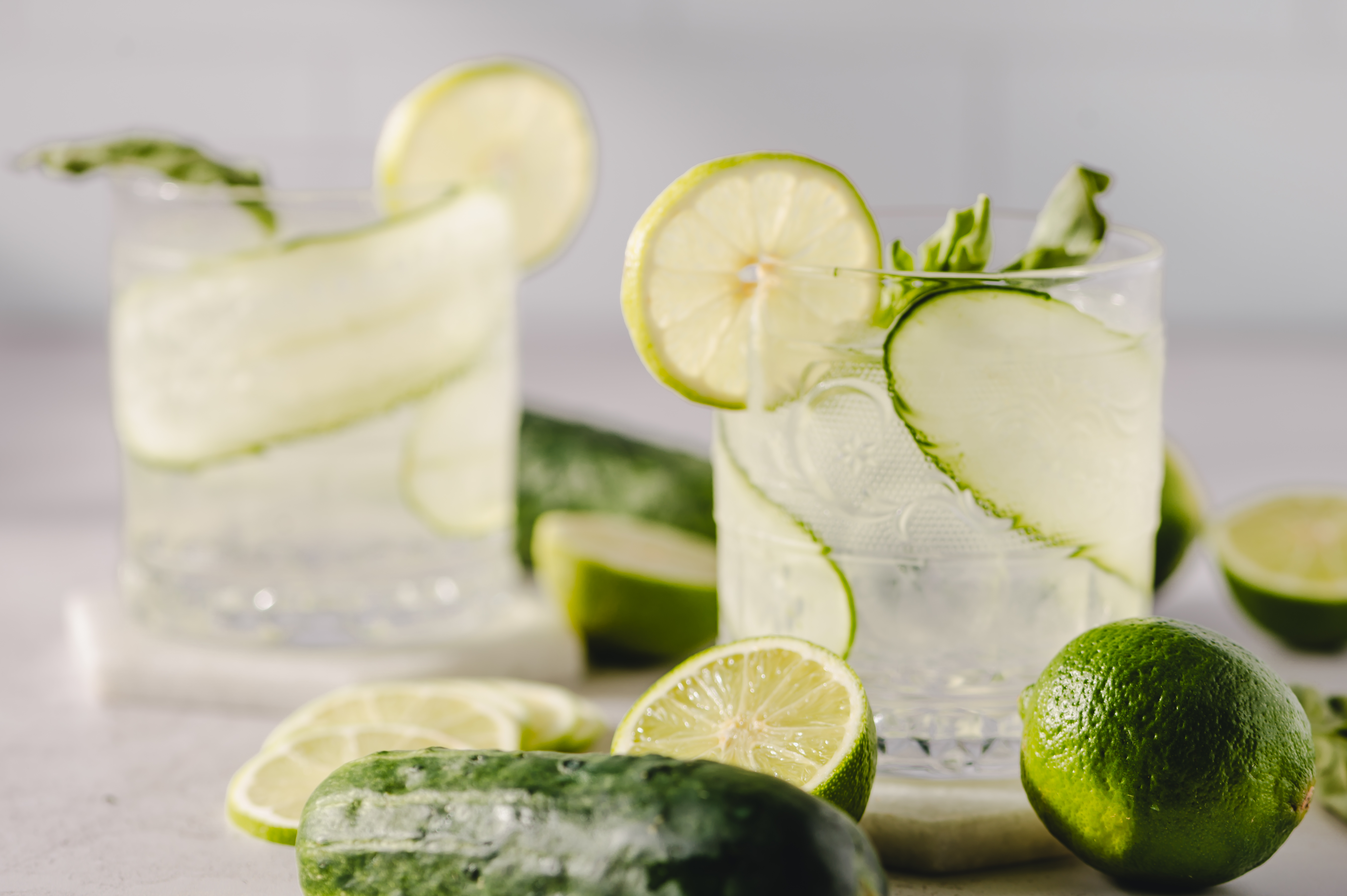 Step 10 -Garnish with the remaining basil leaf, the extra cucumber ribbons, and the lime wheel and serve.