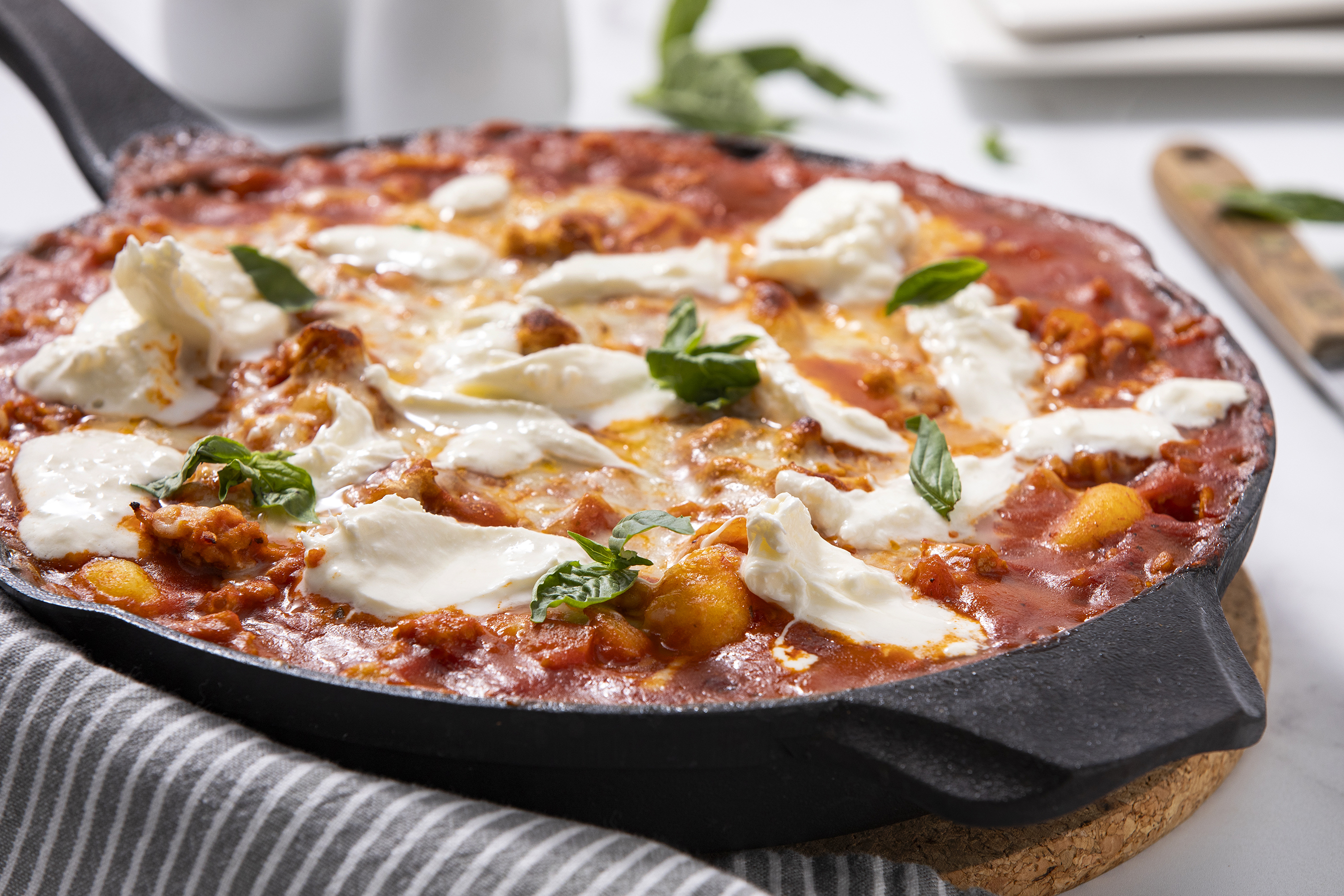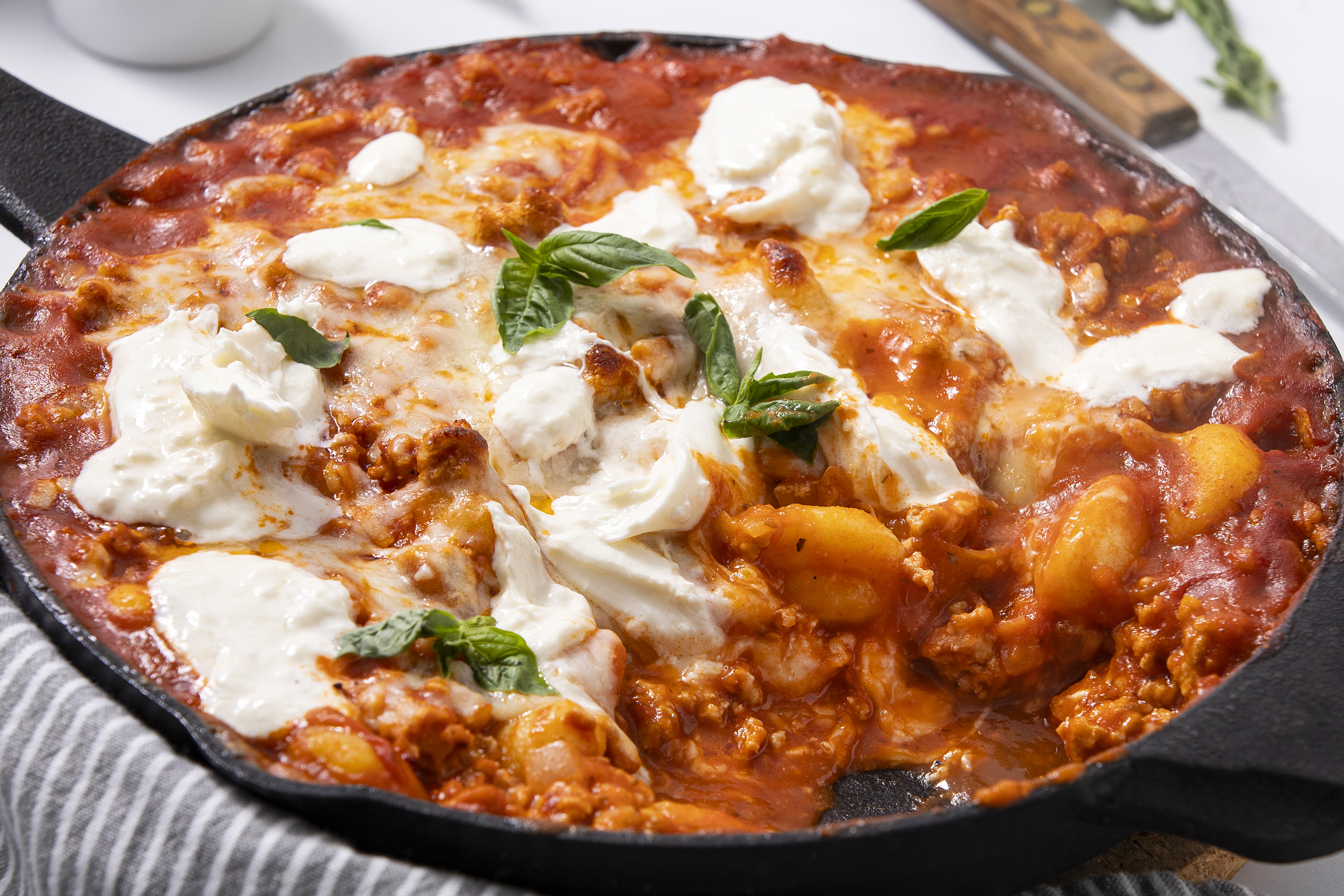 Ah the simple pleasure of Gnocchi Casserole! The gnocchi are pillowy, tender, adorable little bites of goodness when coated in a rich marinara sauce with notes of sharp parmesan and spicy red pepper. But then there's also bits of juicy ground chicken and a topping of multiple melty, creamy cheeses to make Gnocchi Casserole pure comfort food! Mmmm, make sure to save us some, too!