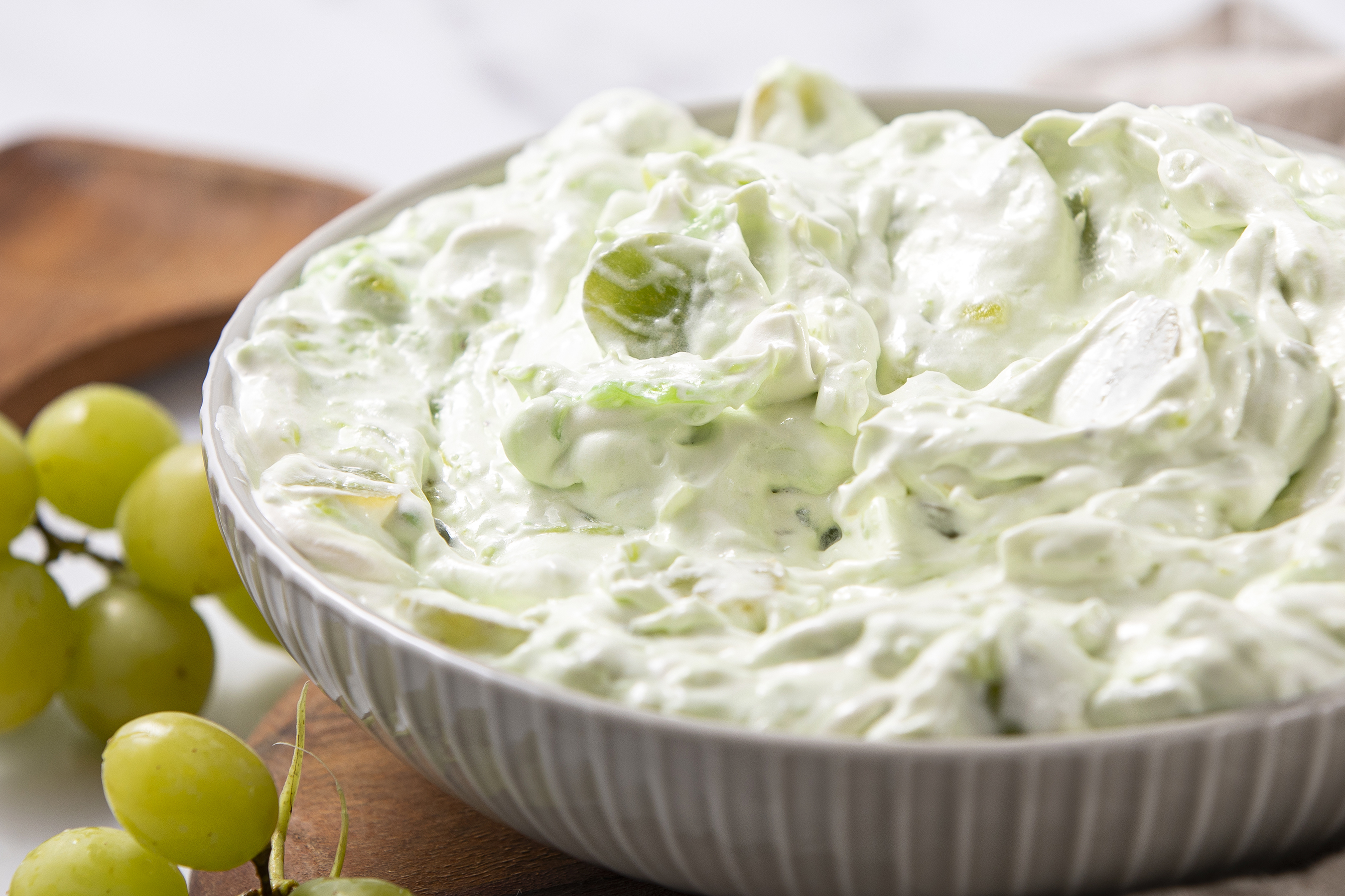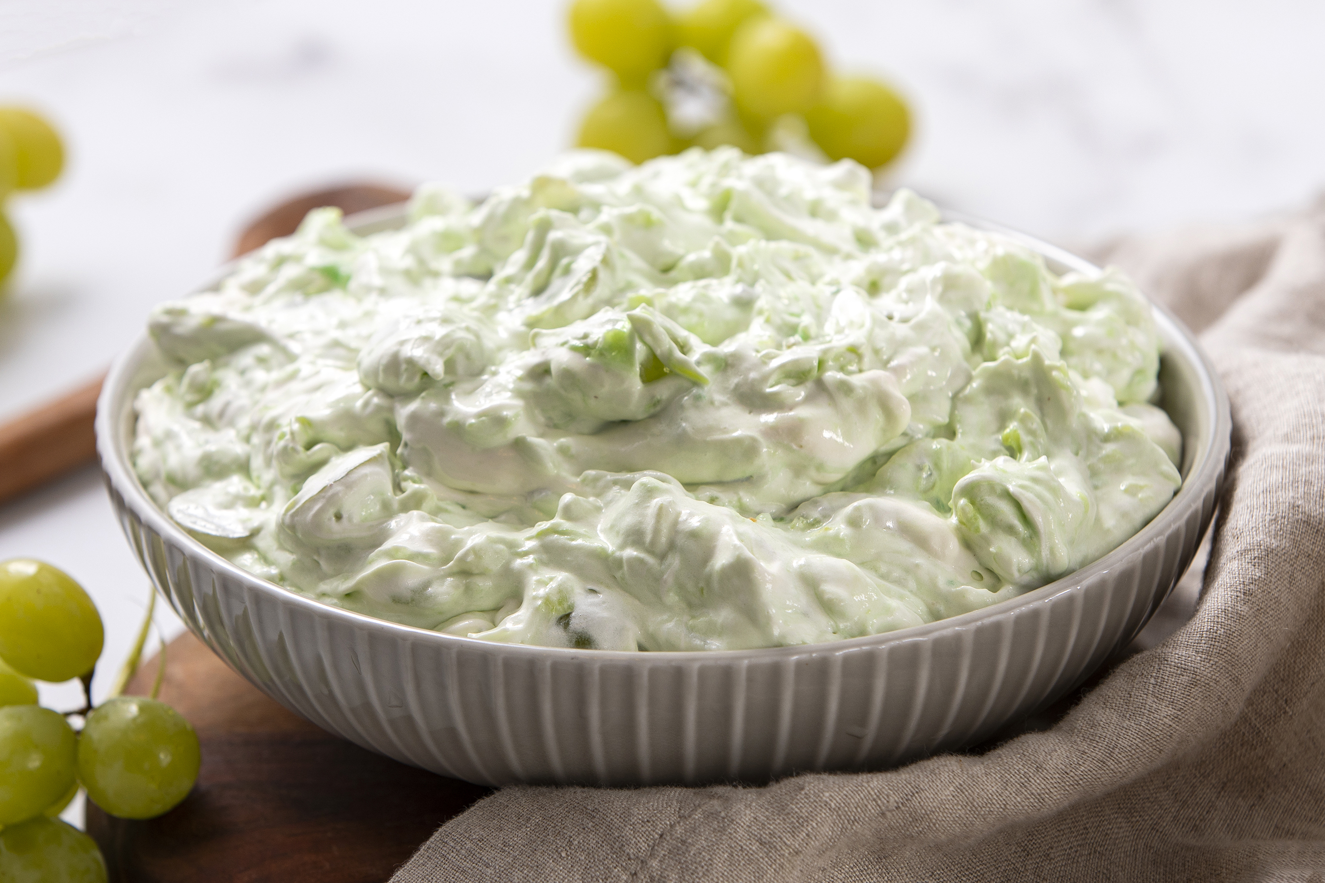 This dish really is quite the looker! Gorgeous Green Grape Salad is an emerald cloud of flavor, with the nutty sweetness of pistachio pudding elevated with fluffy whipped topping and notes of tropical, tangy pineapple! Of course, Gorgeous Green Grape Salad wouldn't be complete with gems of crunchy, juicy green grapes mixed right in. Think green when you need something sweet!