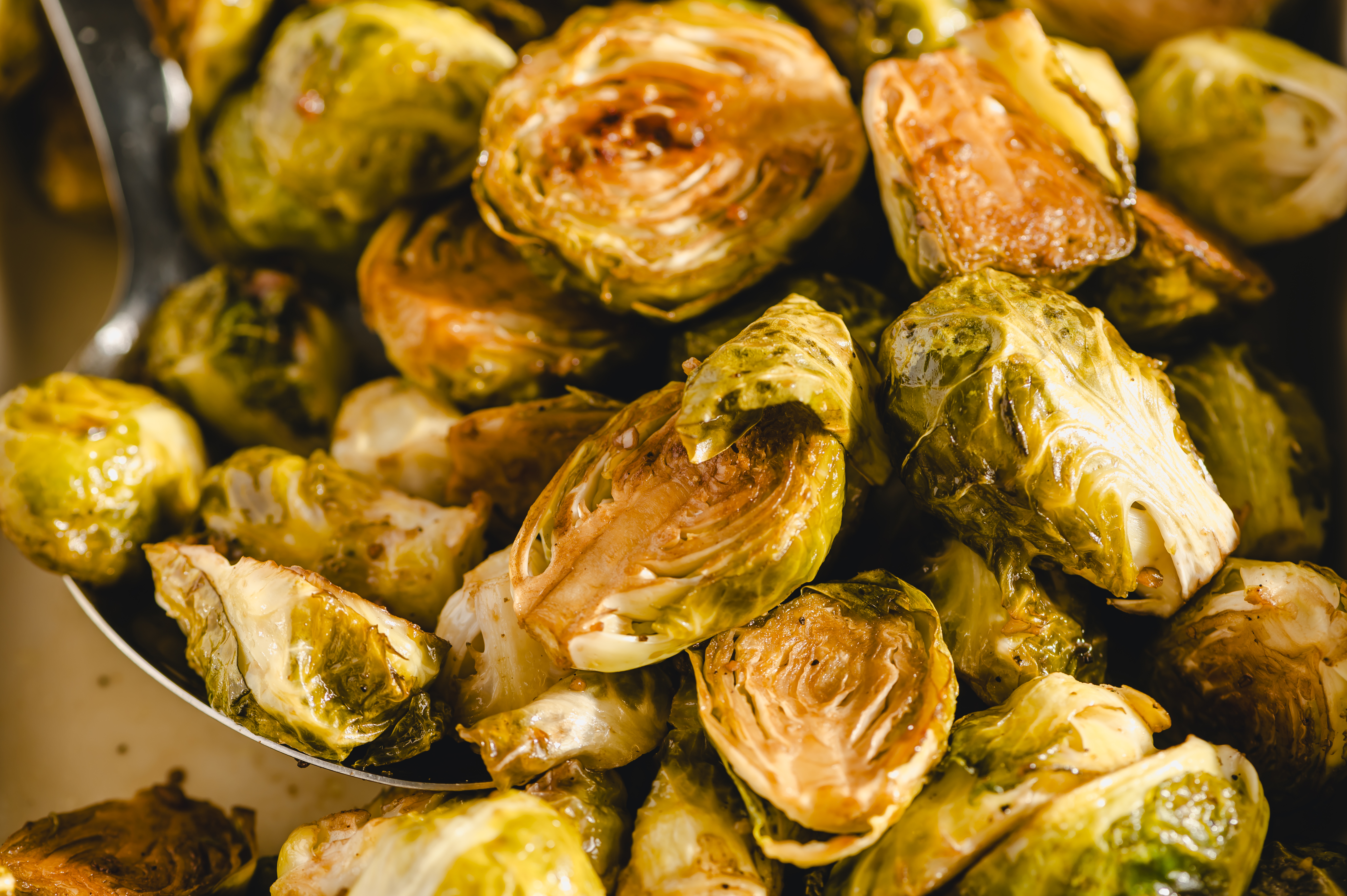 - 1 1/2 pounds Brussels sprouts, cleaned and trimmed, cut in half or quartered