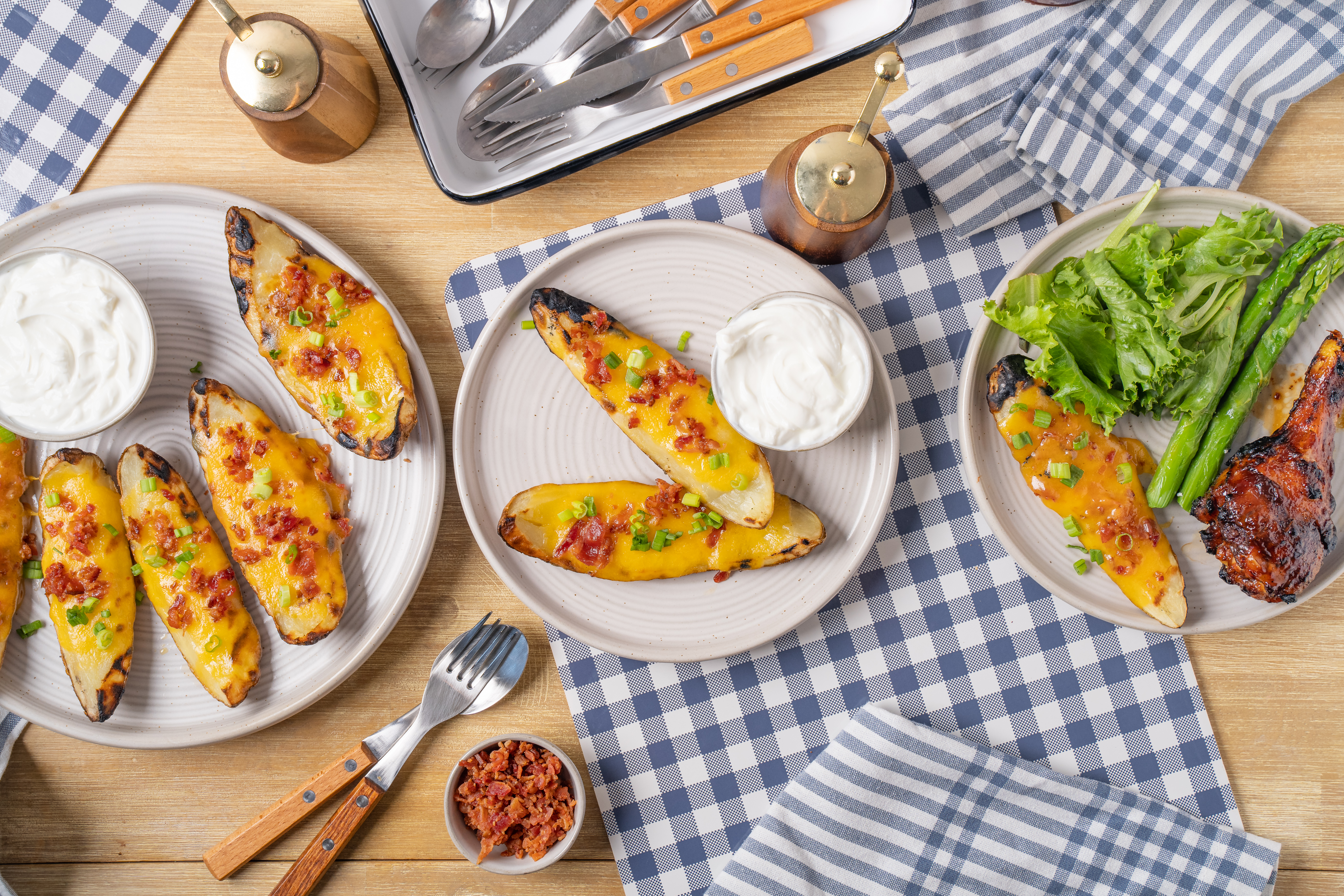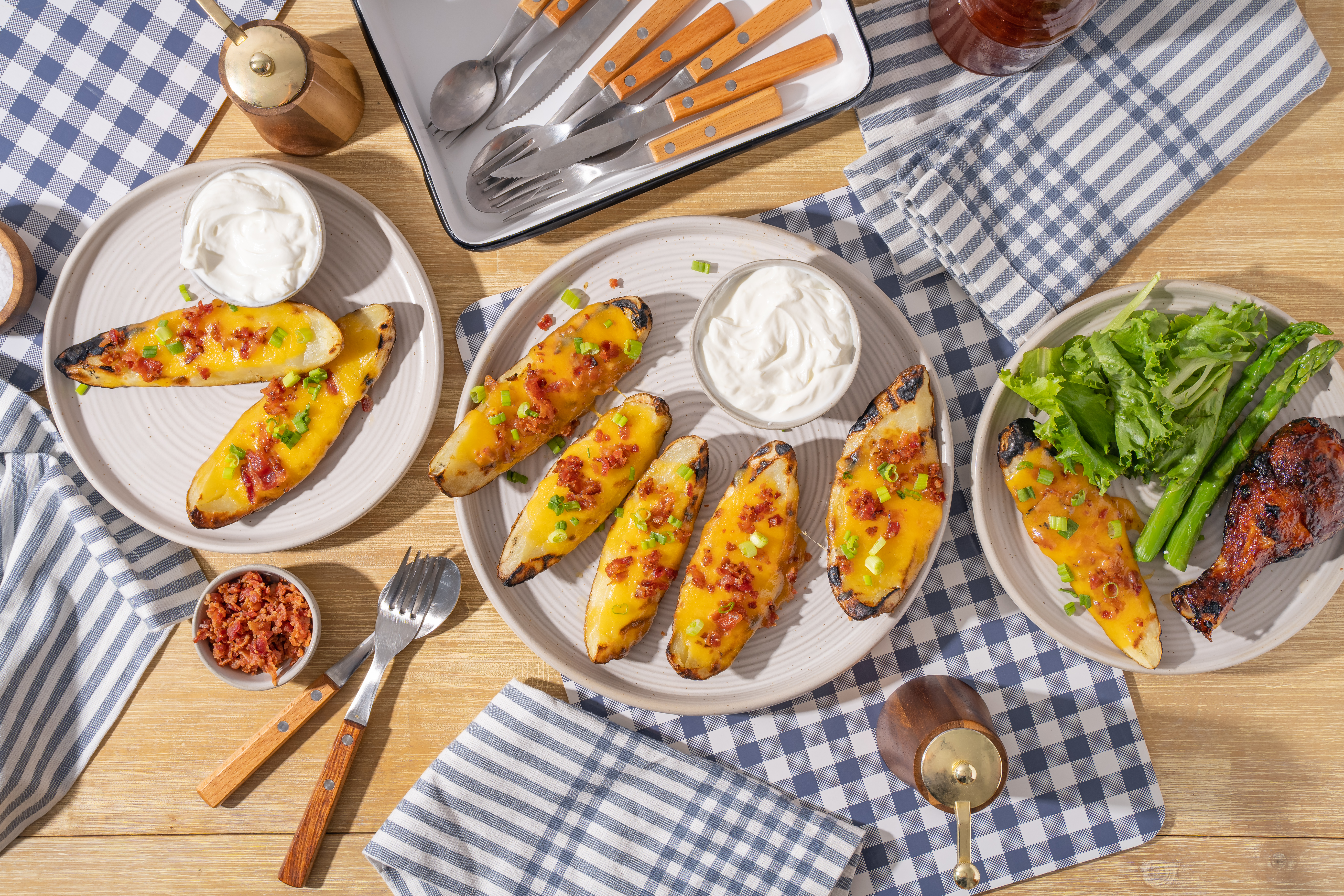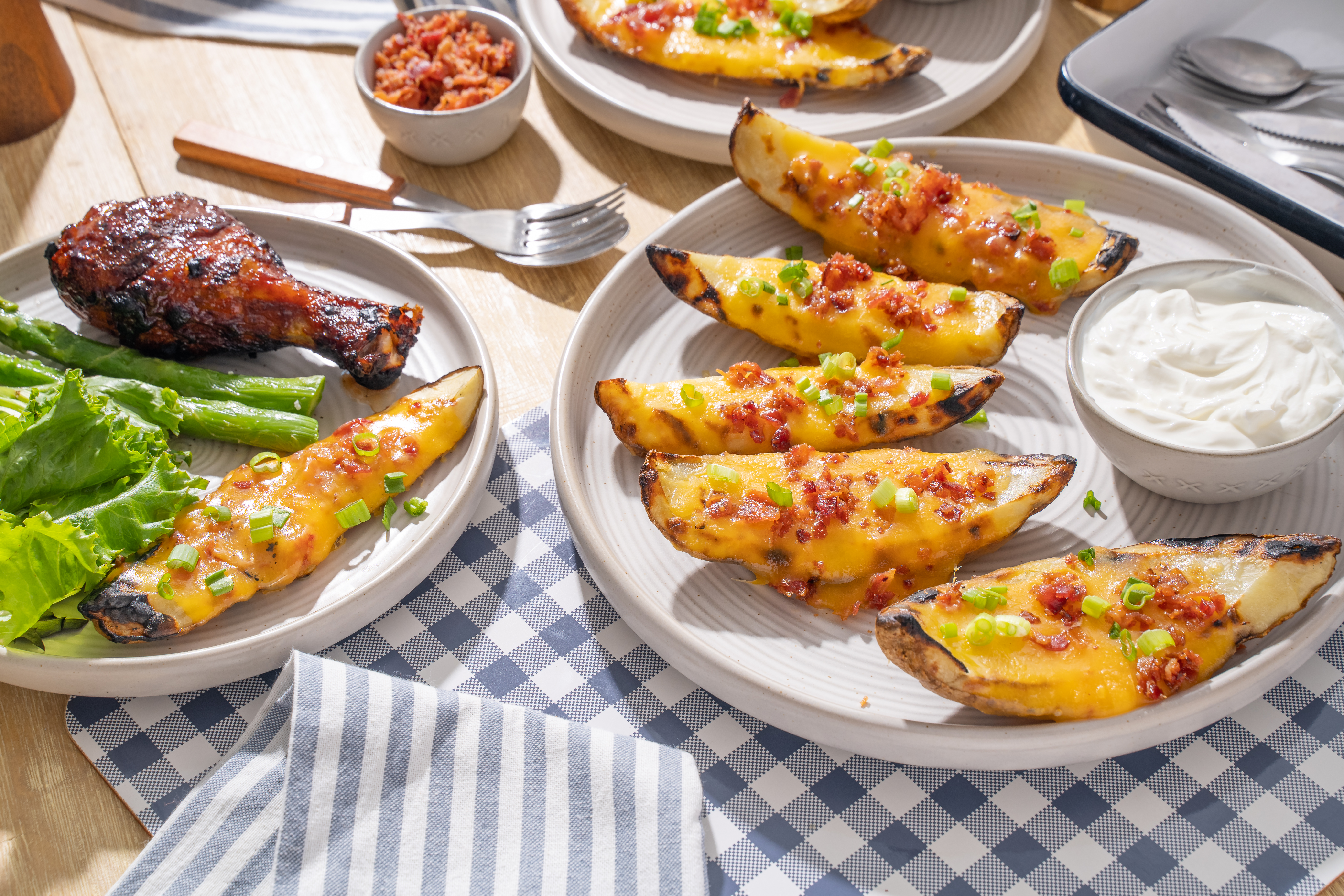 The sign of a true grill master is the ability to whip up just about anything using the grill, such as everyone's favorite side dish! Grilled Potato Skins are exactly what you would think and more; buttery, fluffy, crispy potatoes coated in butter, grilled, and topped with sharp cheese and crumbled bacon. It's savory and succulent and, thanks to the grill, extra-summery! Potato salad might just have to take a back seat next to these Grilled Potato Skins!
