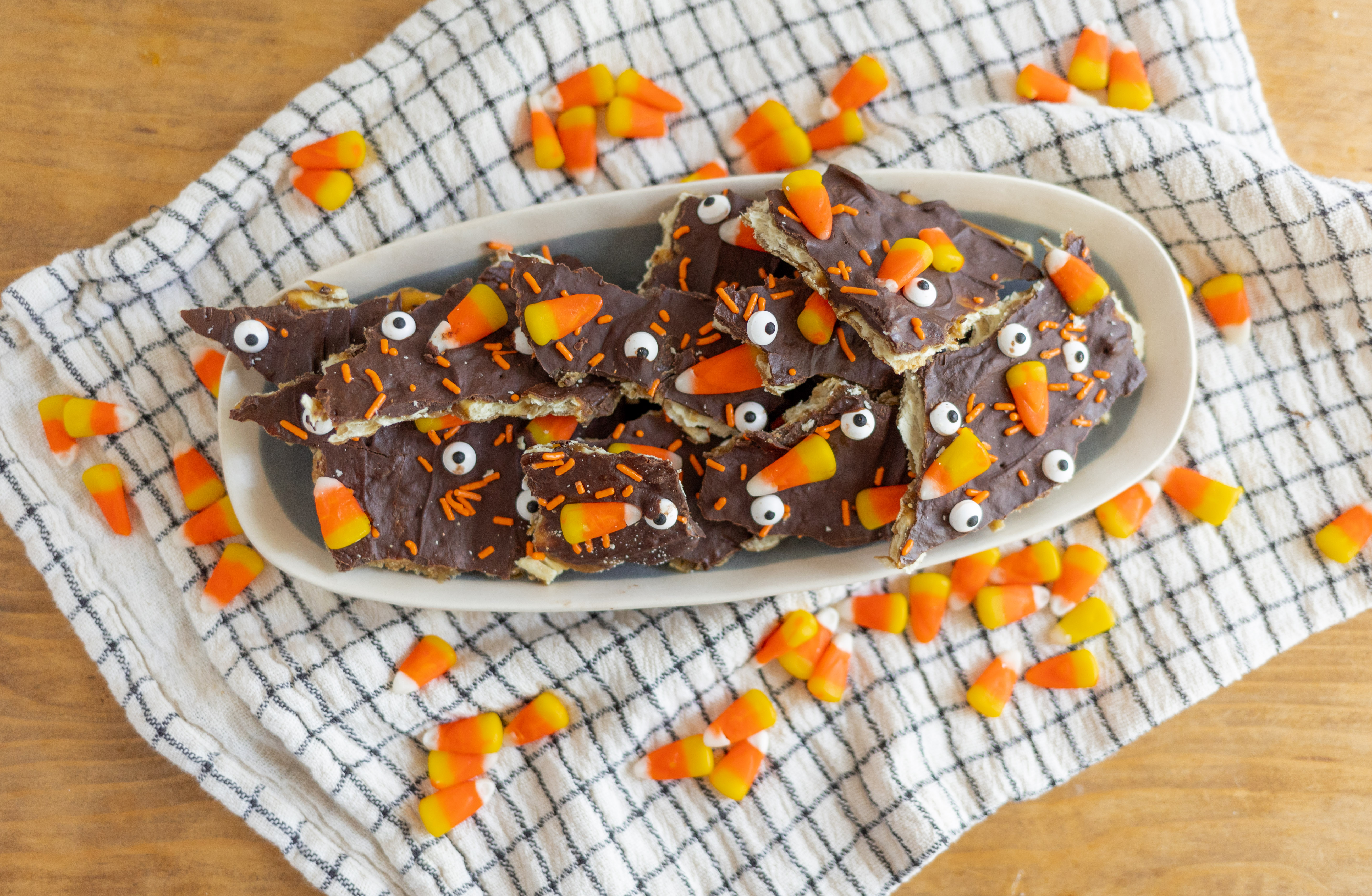 If you don't have enough sweetness for your festive October night, or you have a lot of leftover candy laying around, then Halloween Crack is the trick to more treats! Simple yet divine, this crunchy, chocolatey concoction is the perfect spooky foundation for piling on all your favorite festive candies. Yum! It only feels right to pile sugary things on top of melty chocolate, all on top of a sweetened cracker base in the spirit of Halloween. You're sure to get the most exciting sugar rush with this Halloween Crack!