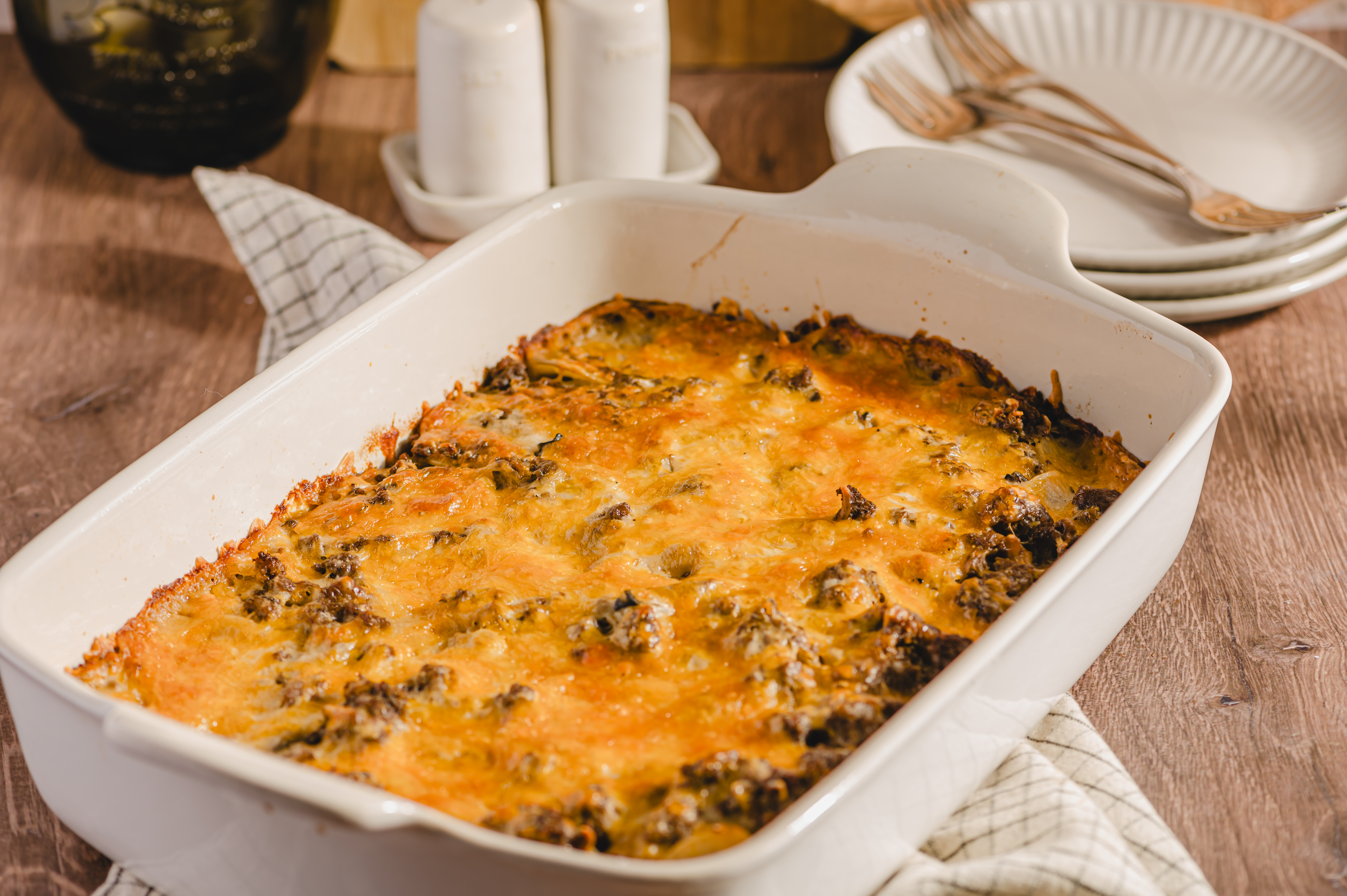 Burgers and fries are a classic combination for a reason: succulent beef and tender potatoes just make sense together. Hamburger Potato Bake brings the two together for a deliciously layered casserole with a savory and creamy mushroom sauce and plenty of melted cheese. It doesn't get much better than that! Hamburger Potato Bake is the real meat-and-potatoes of simple and delicious casseroles!