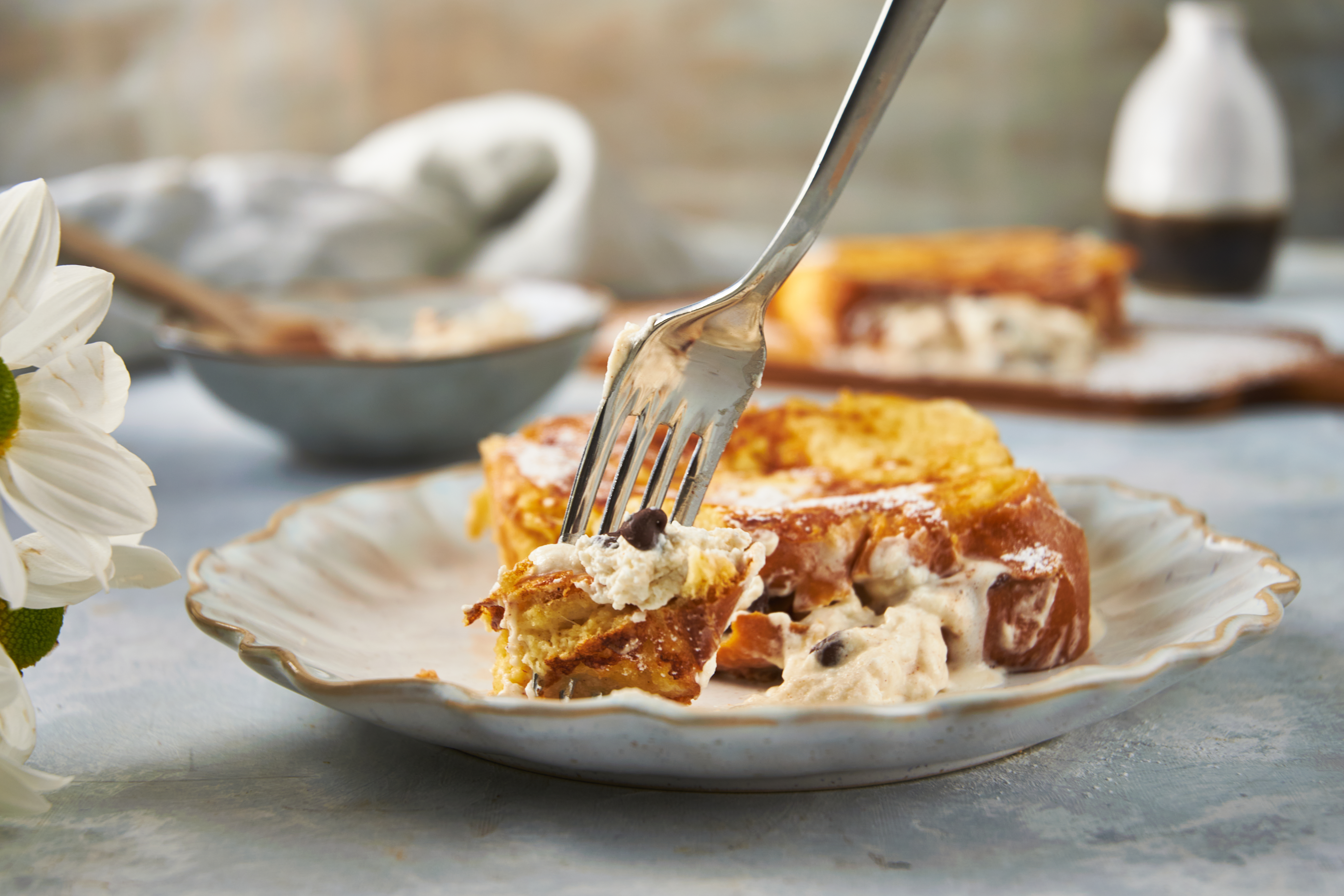 Holy cannoli, this is a great way to start the day! This Holy Cannoli French Toast stuffs the tender, golden, custard-fried slices of brioche bread with a classic cannoli filling; a tangy, sweet, creamy ricotta with just a hint of warm cinnamon and nutmeg. Oh, and chocolate chips, just for fun! Dust them with powdered sugar and call it a morning, because nothing could make Holy Cannoli French Toast any better! Well, besides making another batch!