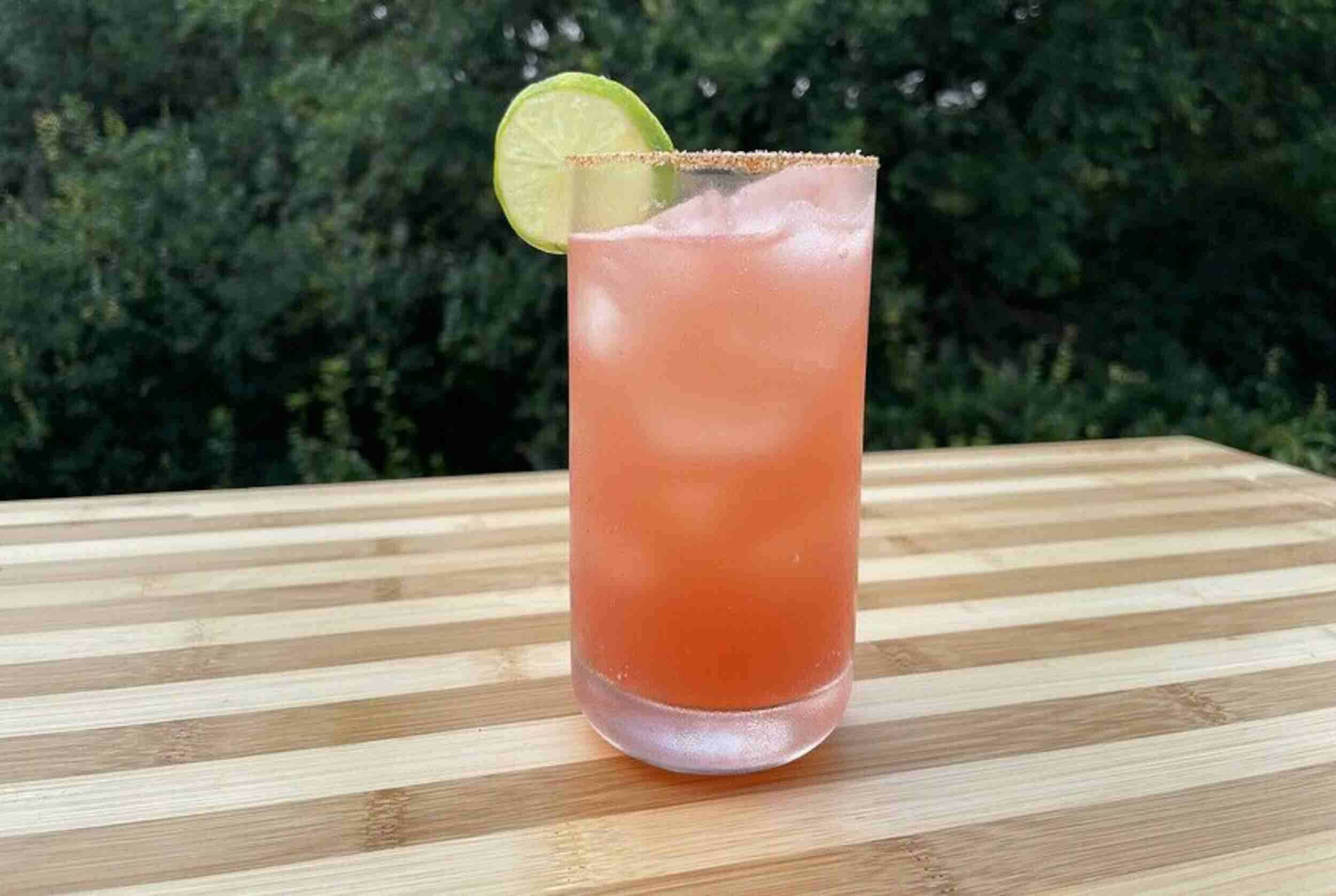 Step 6 -Top with the club soda and garnish with a tajin and lime.