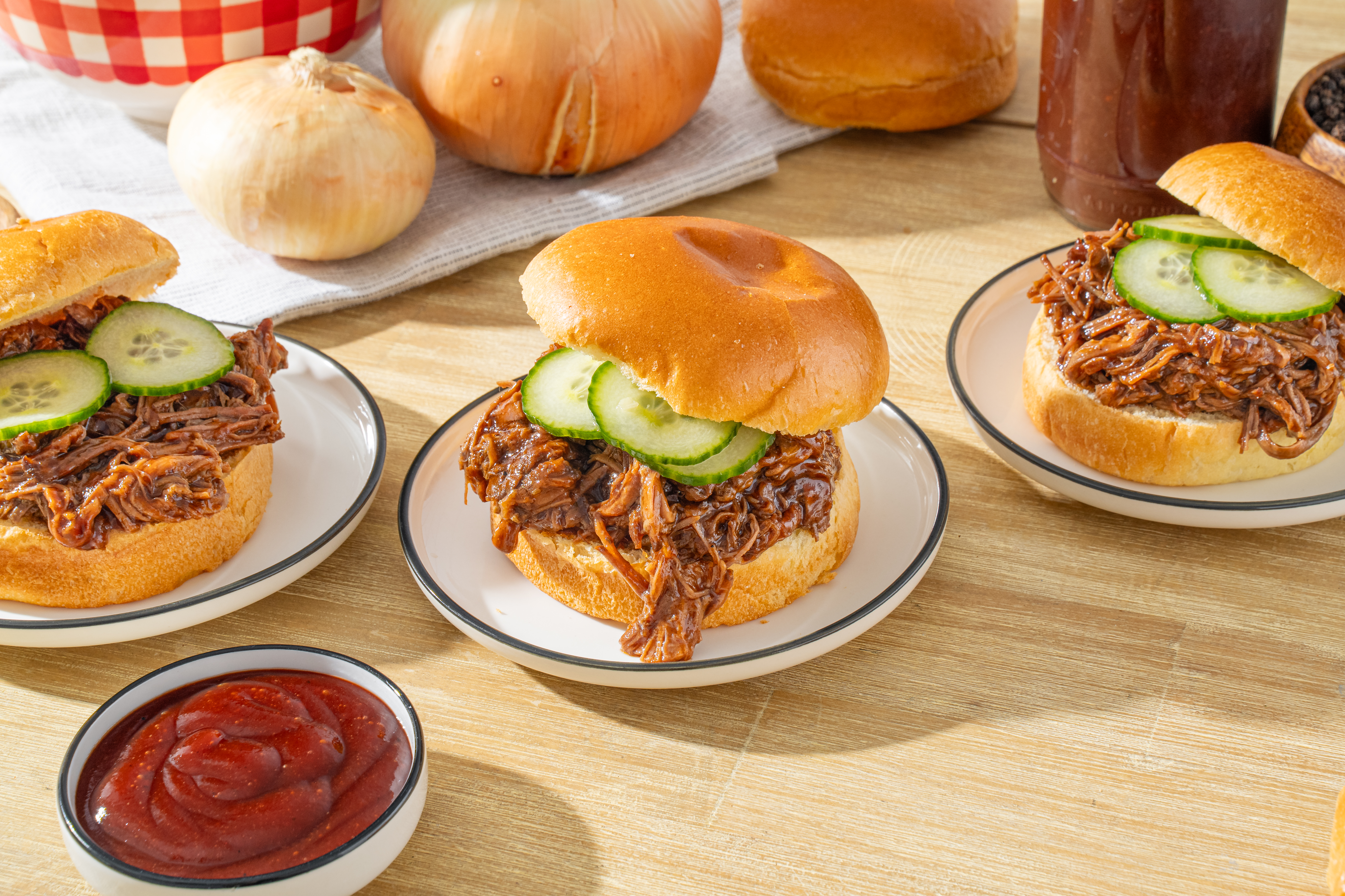 Let's Go Brisket! These are the sandwiches that get everyone fired up! It's hard not to get excited for super tender, extra succulent, and perfectly beefy brisket with notes of sweet and tangy barbecue flavor. When it's piled up on buns with spicy pickle chips? Woooo! Better yet, the slow cooker does all the work for you resulting in something super tasty! Everyone can go for some more of Let's Go Brisket!