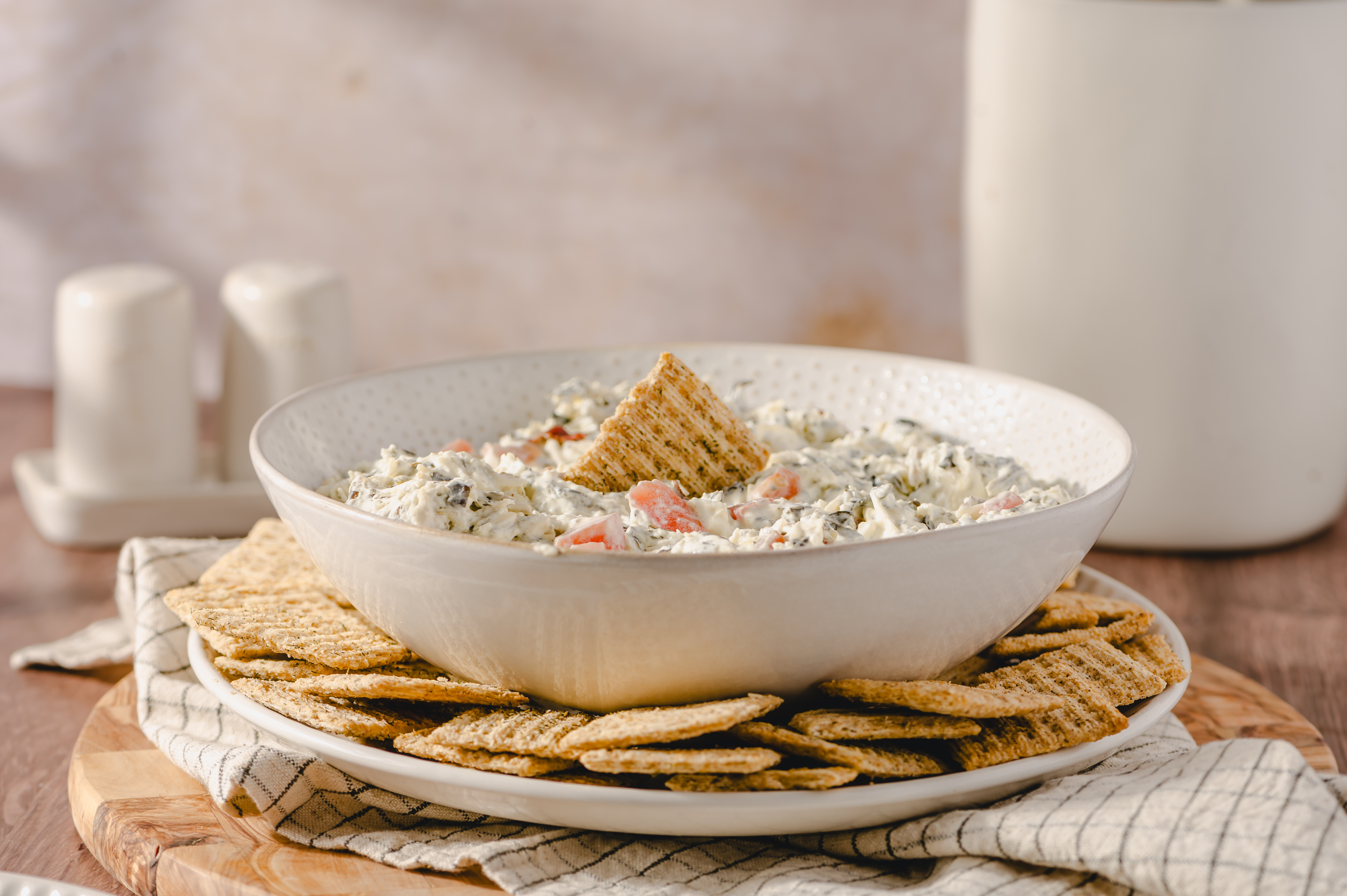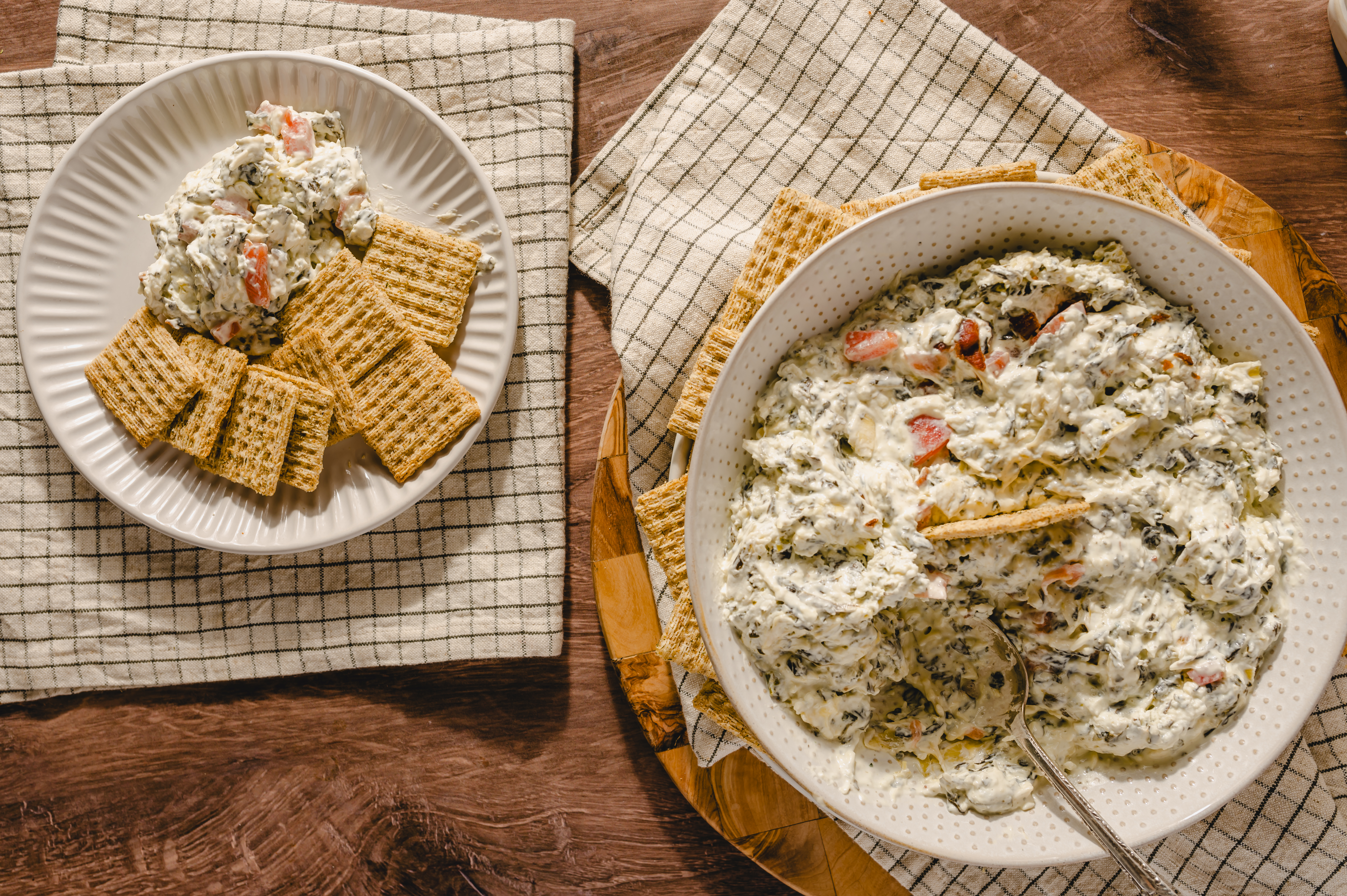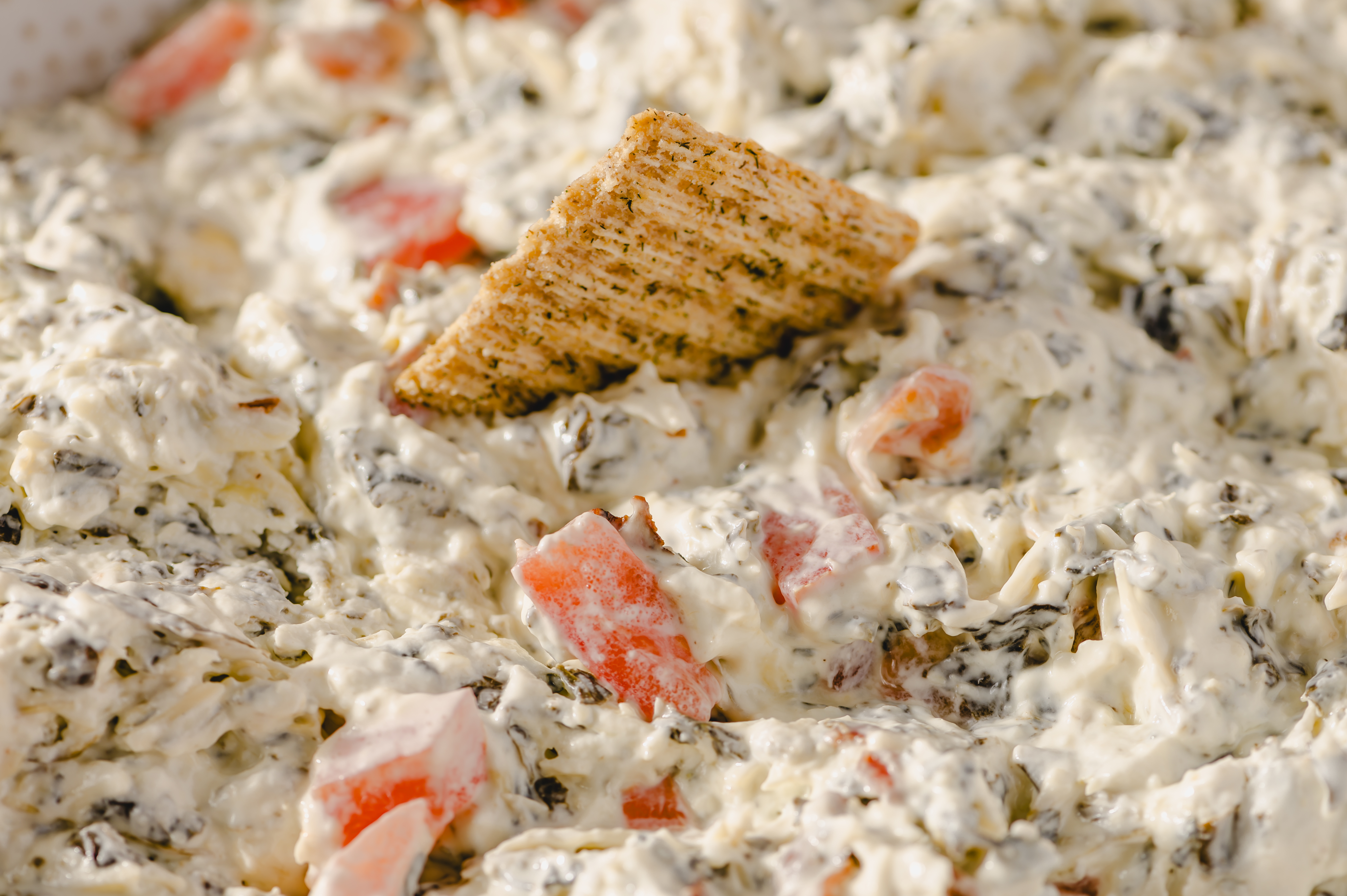 Loaded Spinach Dip took a look at traditional spinach and artichoke dip and said "I can do that... but better!" And indeed, it does! The tangy, creamy, savory dip you love is now truly loaded with bacon flavor! The rich, succulent, porky-deliciousness is mixed into the dip and then is on top in the form of bacon bits! Balanced out with some juicy tomatoes, Loaded Spinach Dip is the way to load up your party with even more fun!