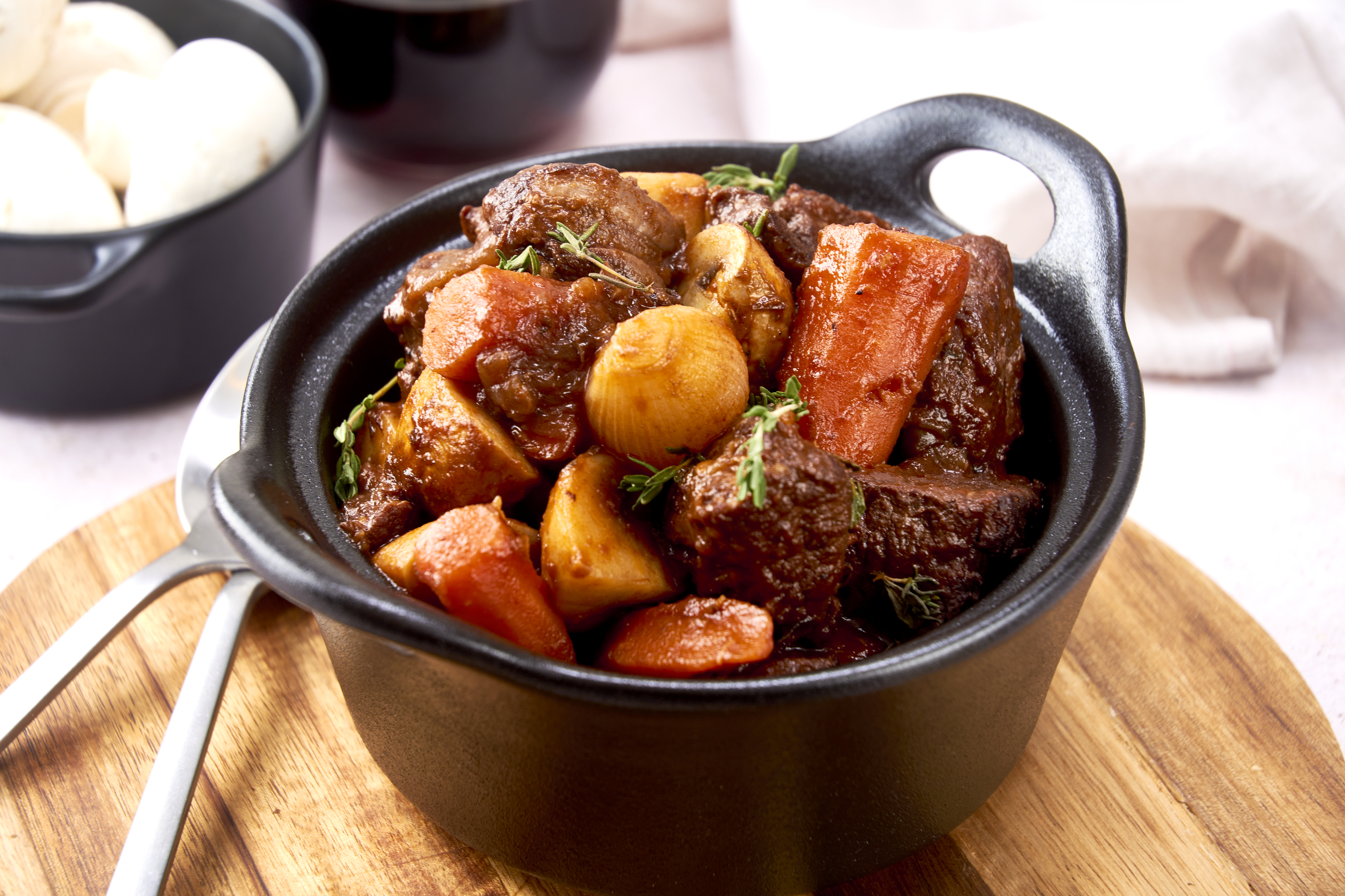 When you look at your calendar and see it's going to be a busy week, well then you must prep ahead so you won't be hungry come dinnertime! However, you will need to pencil in a nice chunk of time to prep this Make-Ahead French Beef Stew, but your future-self will thank you for it once you're chowing down on the tender beef, juicy carrots, earthy mushrooms, and tangy pearl onions. Ahh, planning ahead is always the best, especially when the result is getting to enjoy Make-Ahead French Beef Stew!