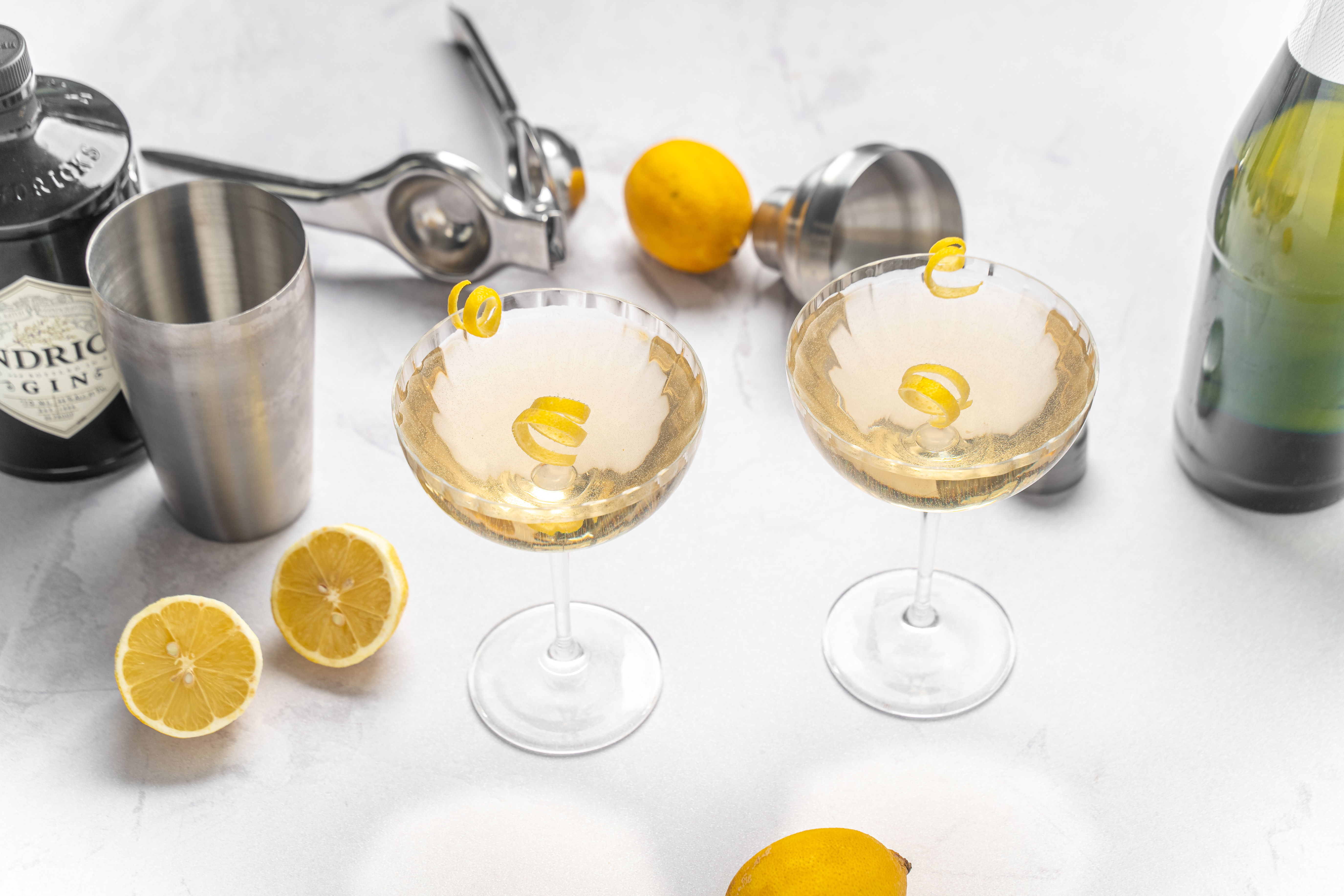 Step 3 -Evenly pour the gin mixture into two coupe glasses.
