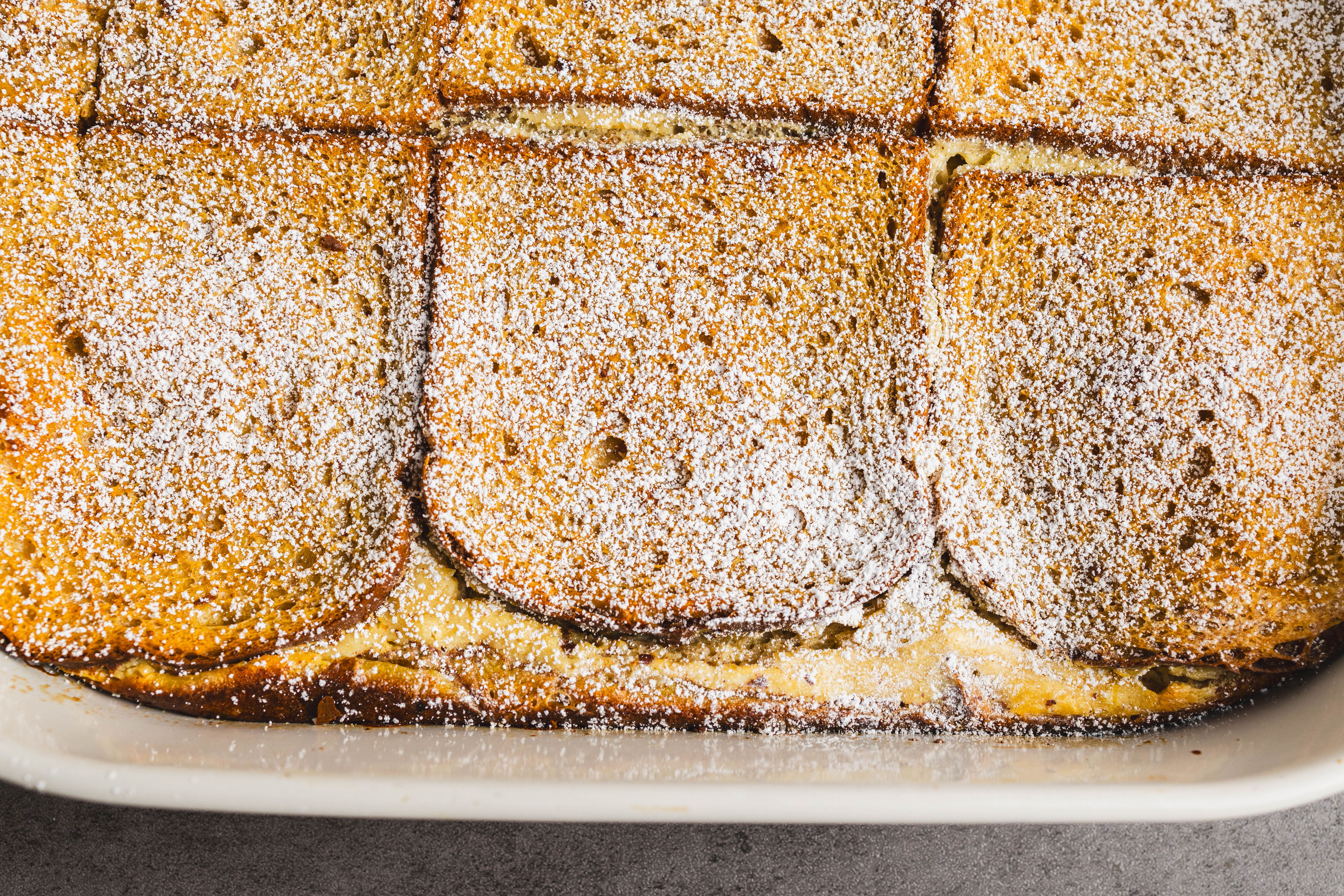 It's a casserole! It's a French toast sandwich! It's a dessert! You're right on all counts! It's No-School Casserole, the perfect way to celebrate a snow day, summer break, or just a goofing-off kind of day! The bread is tender and coated in custard for a hearty sweetness, with a warm cinnamon-cream cheese filling in the center. It's luscious, luxurious, and so comforting, you'll have trouble stopping with just one slice. No-School Casserole means today is just for fun!