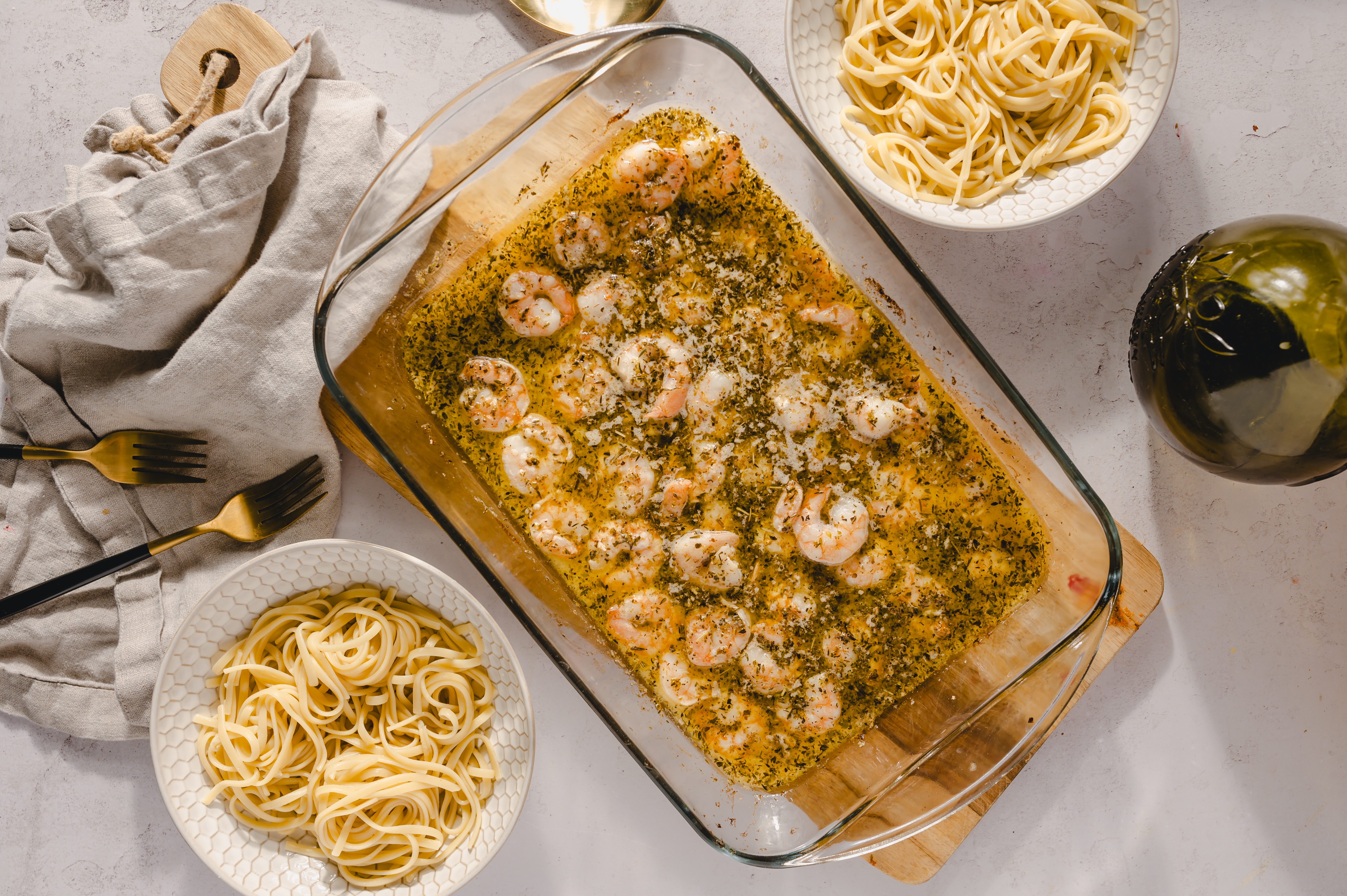 Goodness gracious... shrimp have never had it this good! Calling all seafood lovers! No-Time Italian Shrimp will have you dropping the anchor for this easy, anytime meal. Fresh, plump shrimp are tossed with a buttery, Italian-seasoned sauce, quickly baked, and adorned atop a bed of al dente pasta for an amazingly fast, restaurant-quality meal. Let No-Time Italian Shrimp cast the net at your next gathering for a robust dinner everyone will we raving about. Fast flavor never tasted so good!