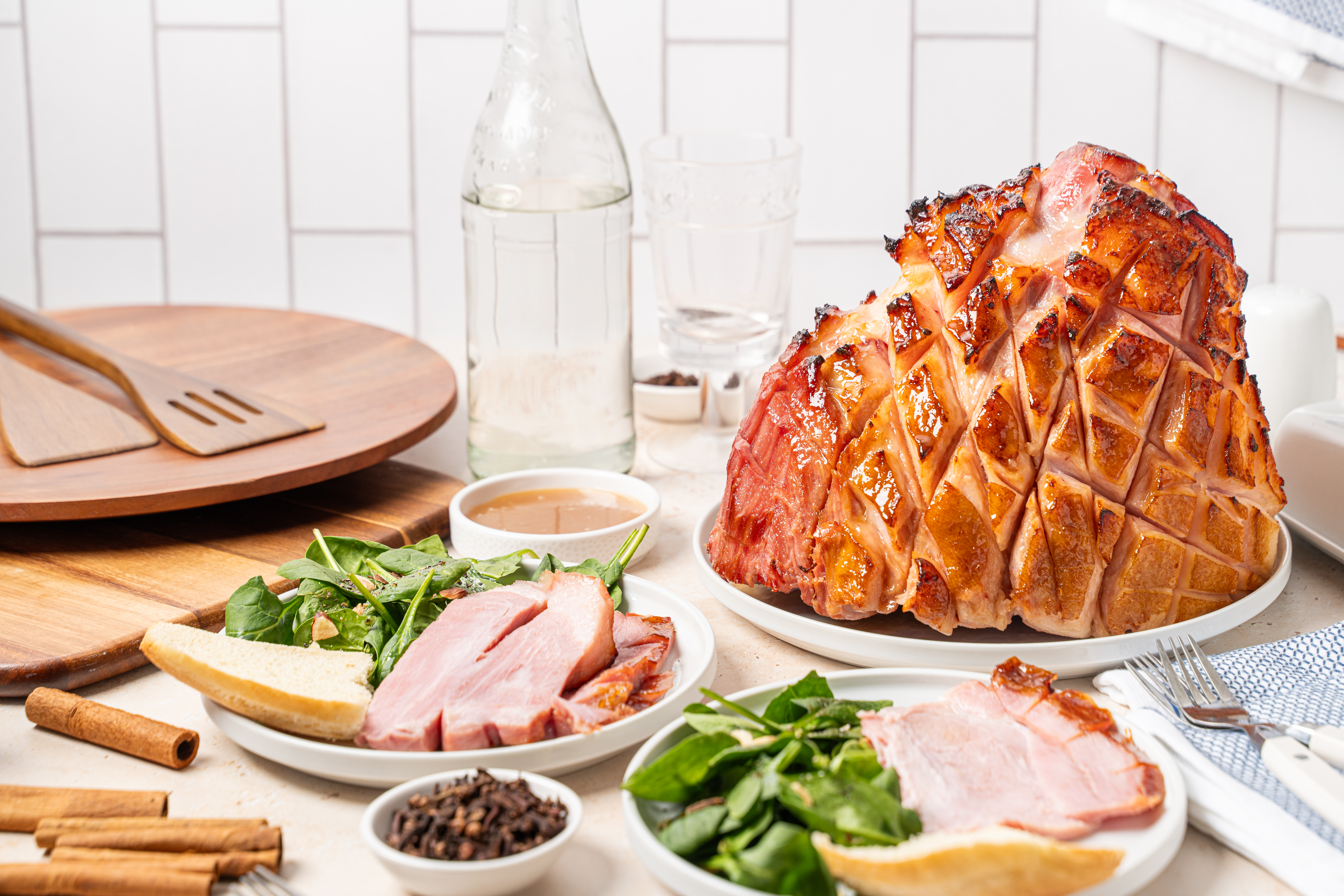 - 1 (8-10-pound) bone-in ham, cooked