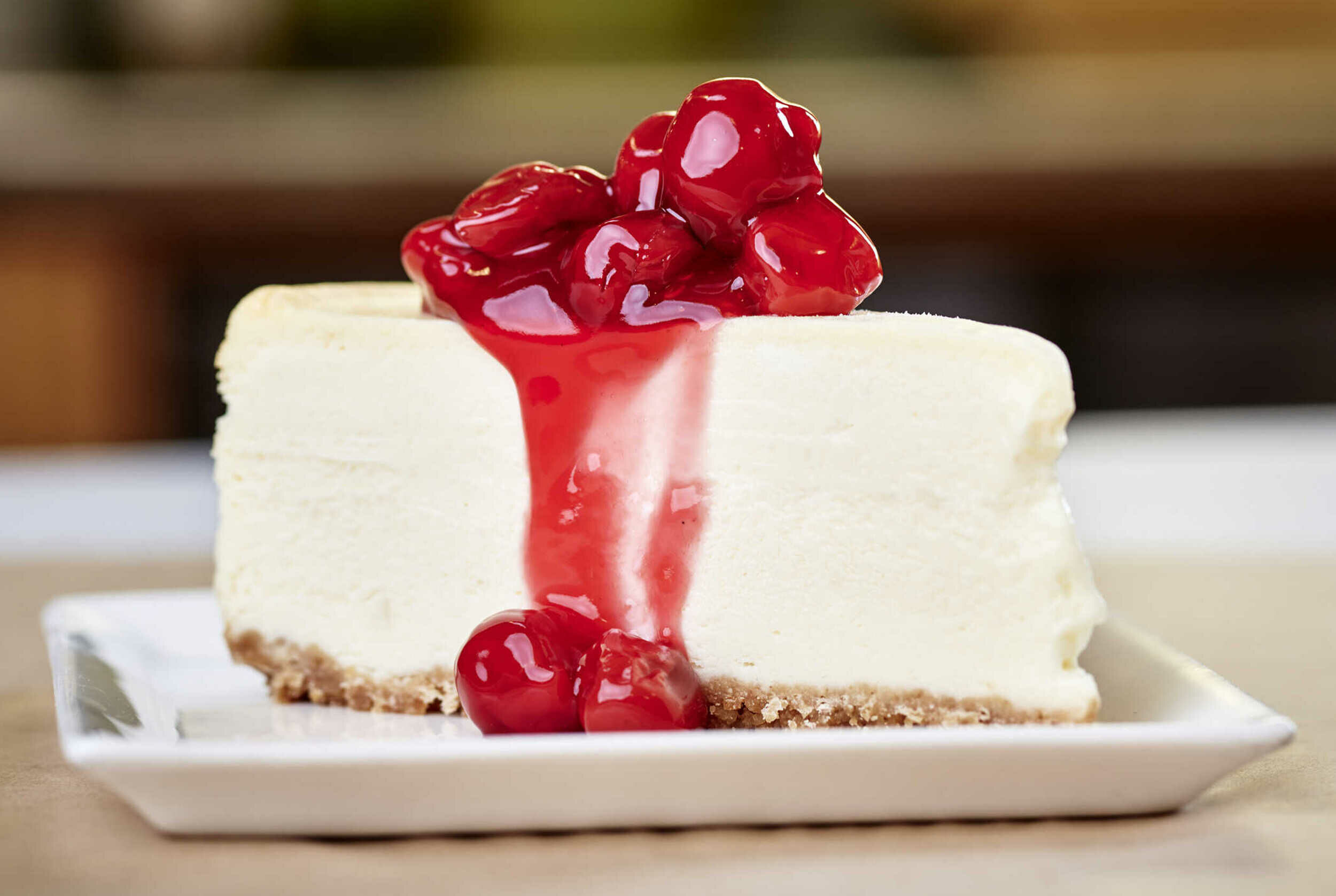 Old-Fashioned Cherry Cheesecake is the cherry on top of a tasty meal! This delicious cheesecake is quite literally topped with cherries from sweet cherry pie filling. This dessert is rich, creamy, and delicious with a bright fruit flavor. Old-Fashioned Cherry Cheesecake is a classic dessert that serves parties of all sizes; you can even save the leftovers for a sprinkle of sweetness throughout the week!