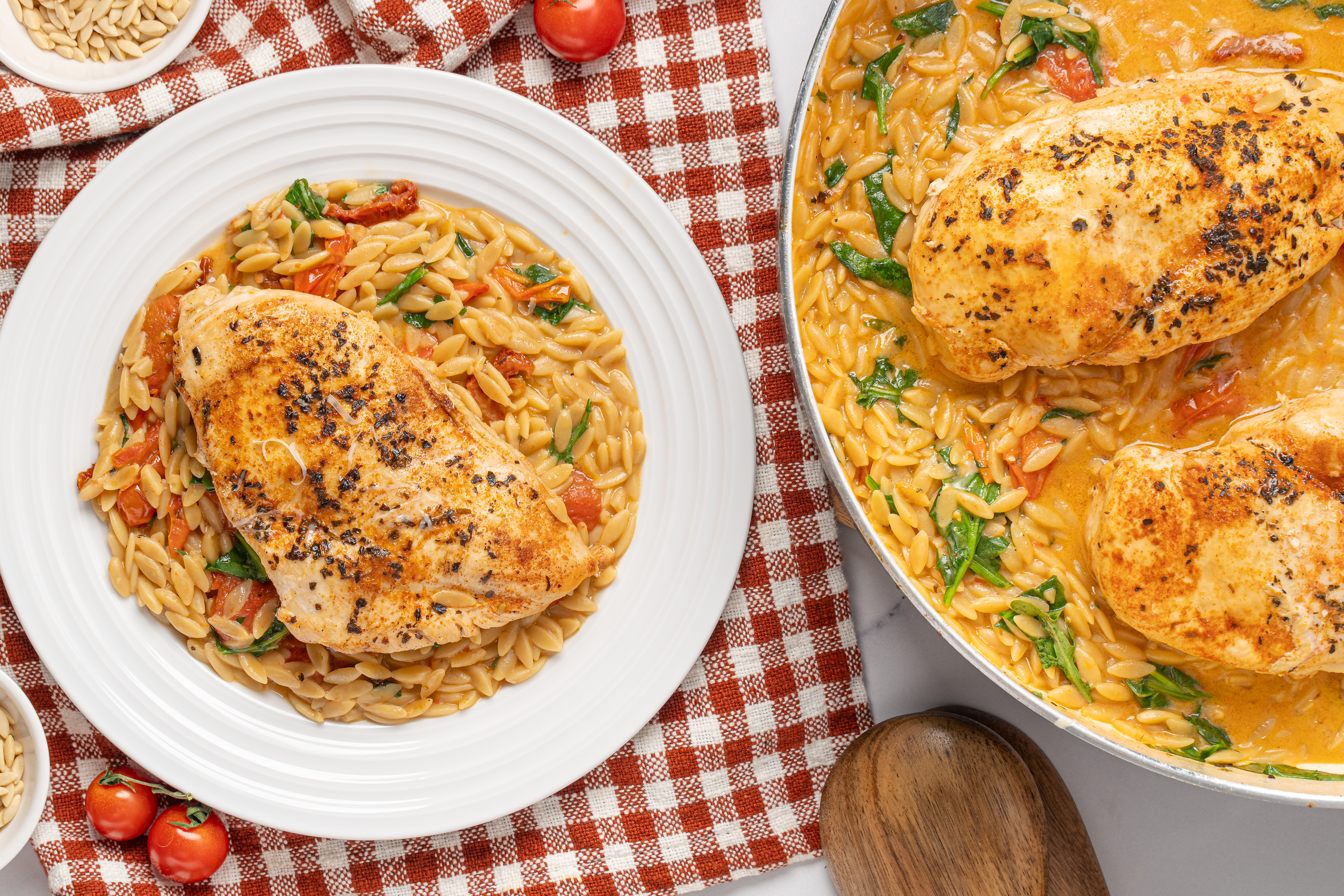 Mmmm! You know, we thought it was just a name until we tried our first bite of One Creamy Tuscan Orzo. You know what? It's not lying! It really is One Creamy Tuscan Orzo! The orzo is tender, the tomatoes are sweet and vibrant, the parmesan is sharp... and the sauce? Creamy, savory, and so, so comforting. With juicy and beautifully seasoned chicken, One Creamy Tuscan Orzo is one amazing dinner!