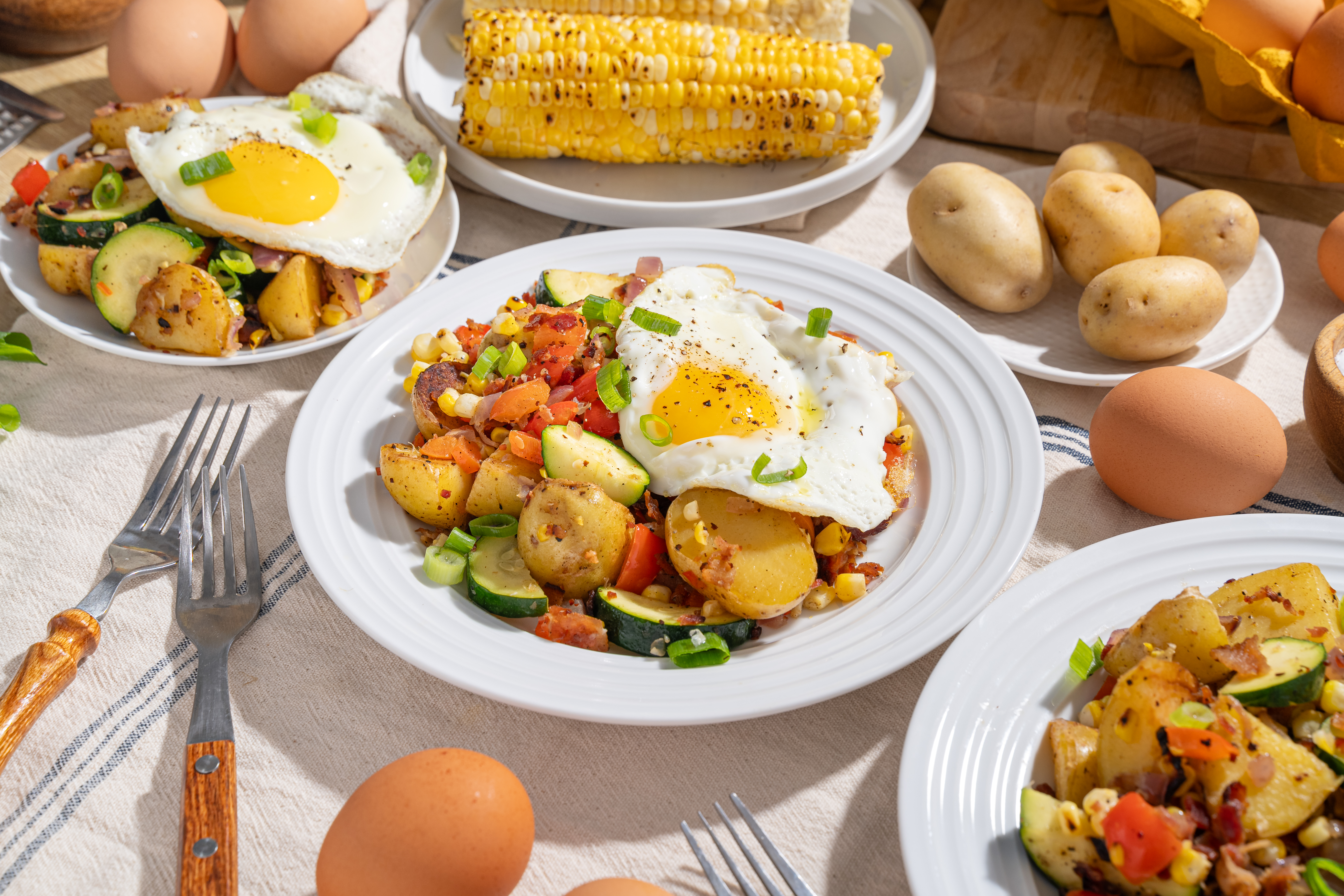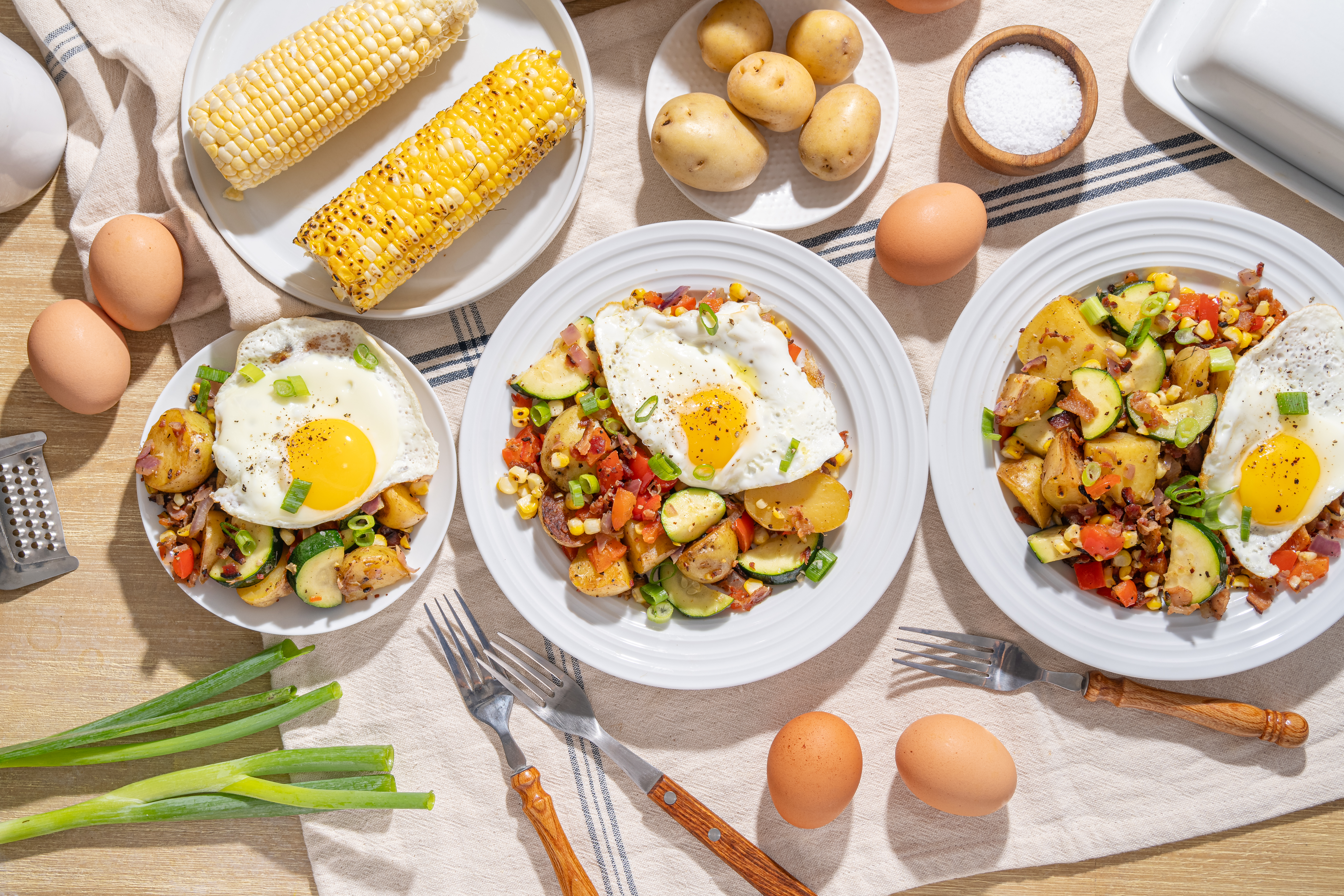 Pop Pop knows that the secret to having a great day is starting off with a great breakfast! Pop Pop's Breakfast Hash is designed to get you feeling full, nourished, and happy right from the first hours of the day... and keep those feelings going right until lunch and beyond! A fried egg on top provides the big protein you need, but the fluffy potato and tender vegetable hash, with succulent bacon crumbles and sweet corn, carries the energy and the flavor to make you smile. Pop Pop's Breakfast Hash is the way to make your day sunny!